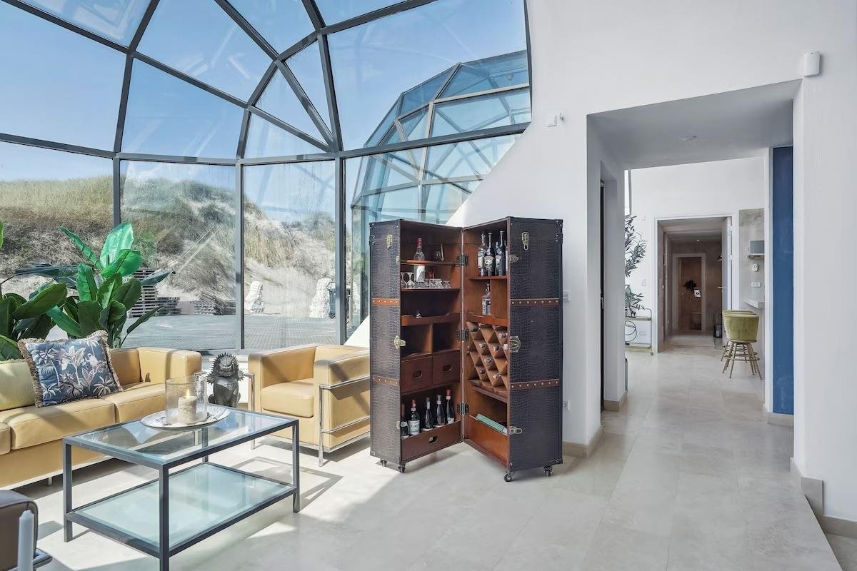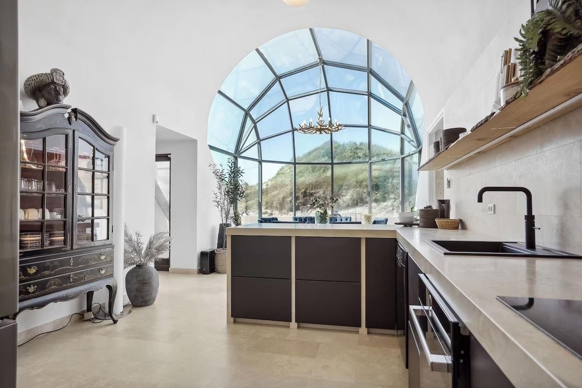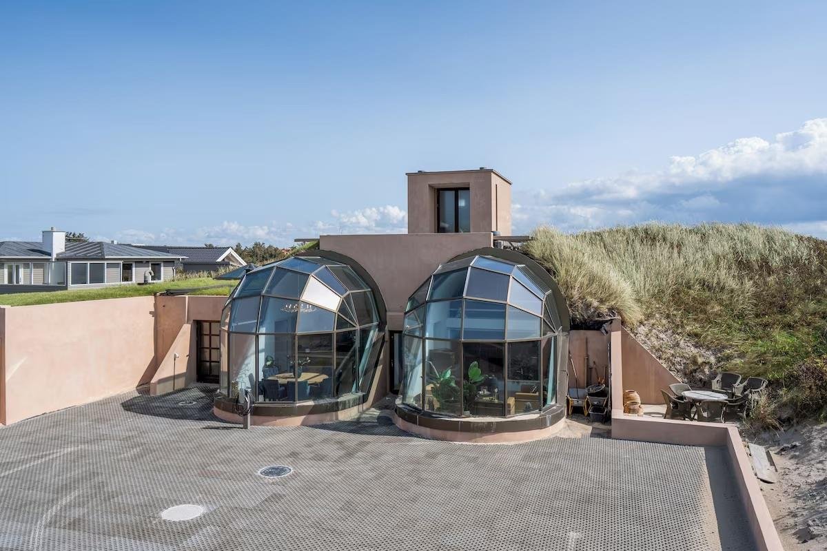 Fra huset køkken-alrum og stue ser du udenfor de store glaskupler Blokhus’ imponerende smukke klitlandskab! En helt unik oplevelse.