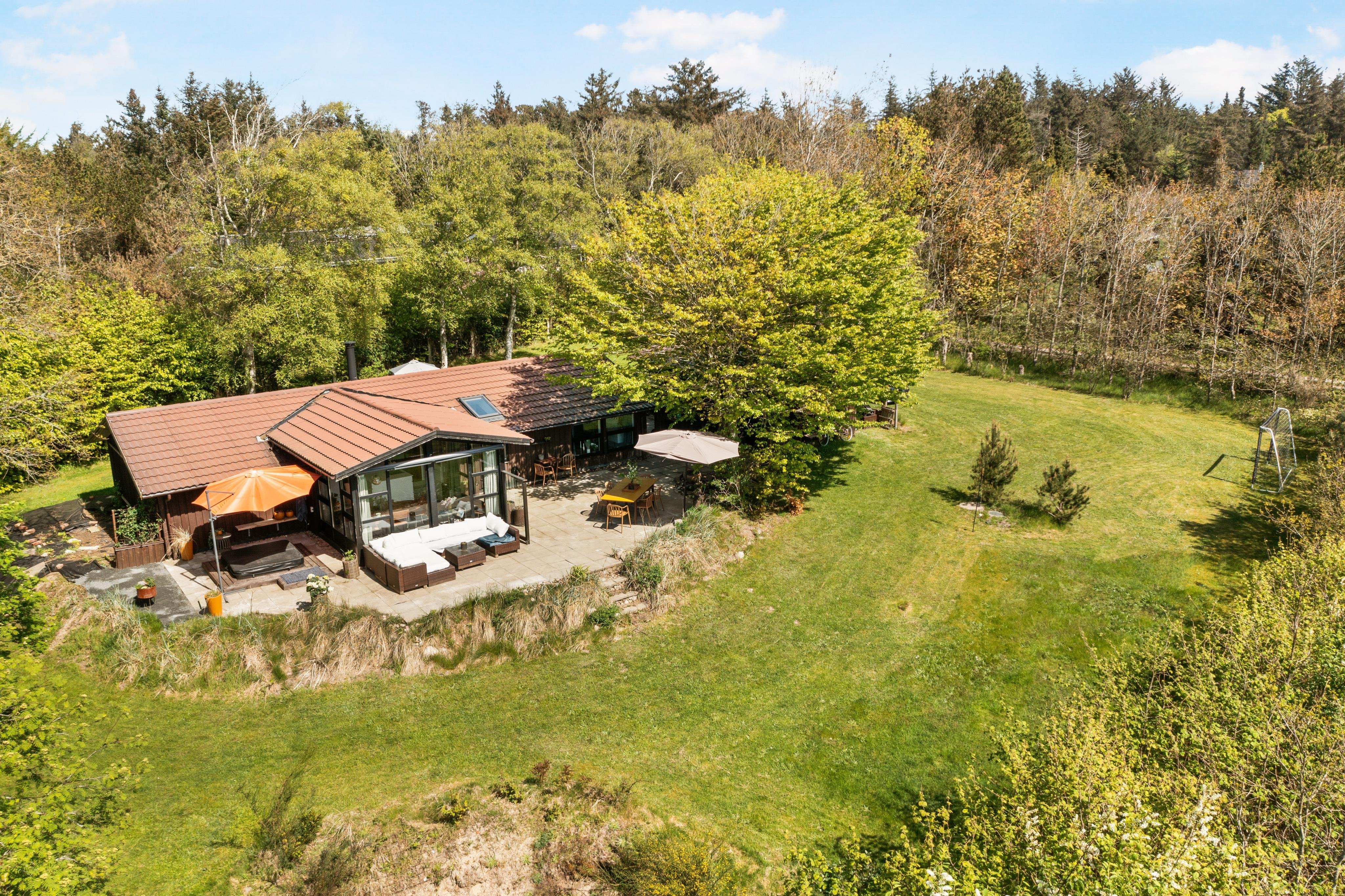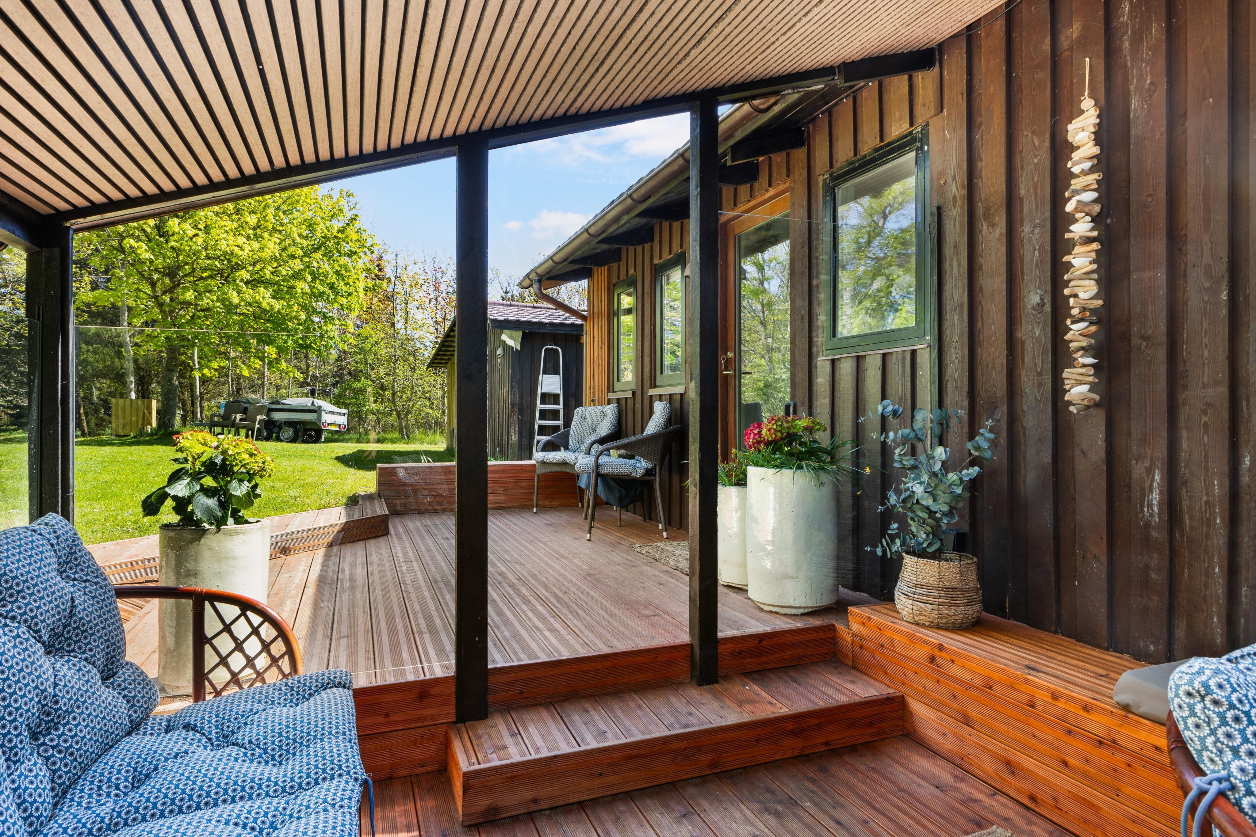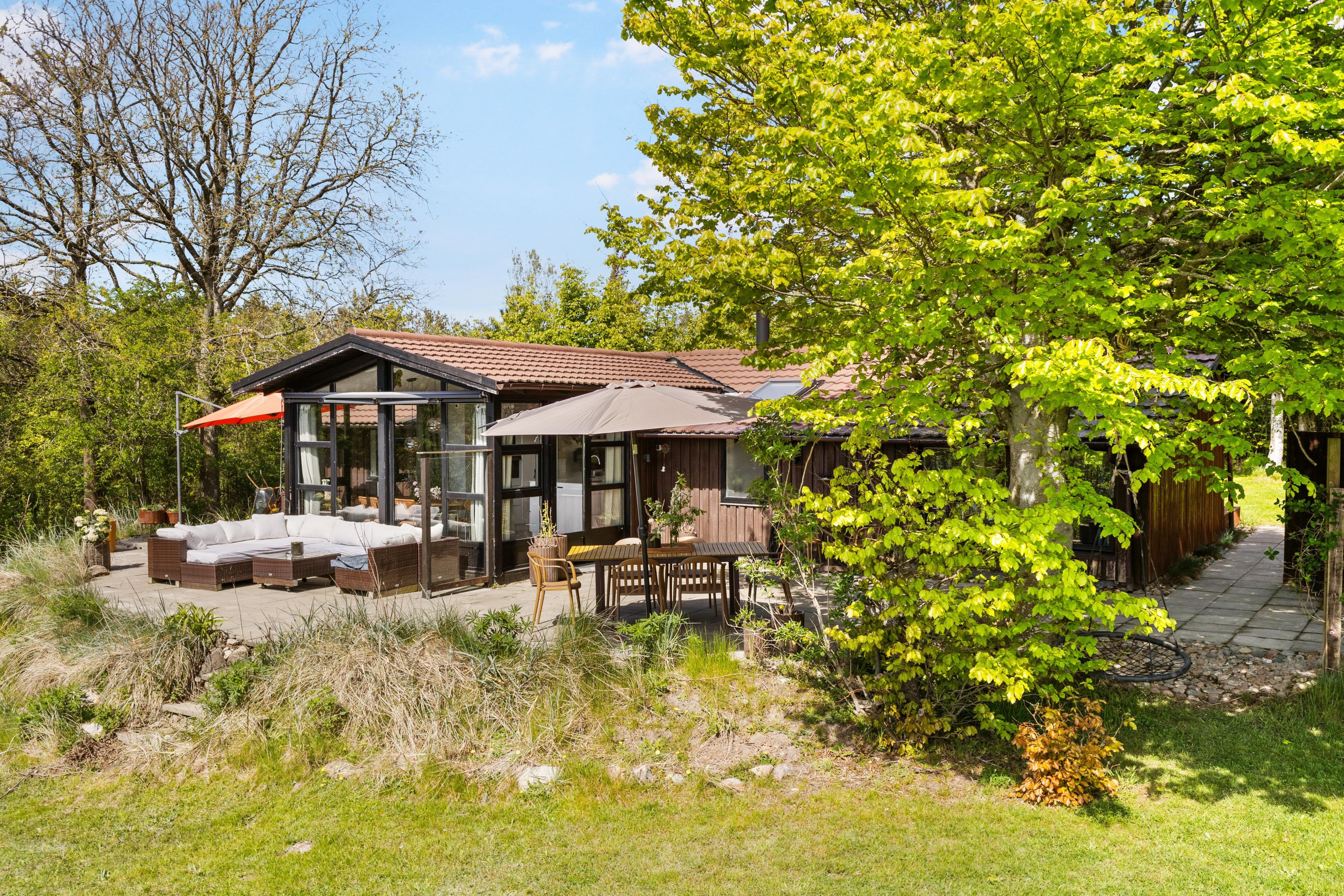 Sommerhuset ligger privat og med den skønne natur som afskærmning. Stadig har du blot 1500 meter til indkøb og restaurant, og 1200 meter til stranden. Her er masser af mulighed for charmerende gåture og til at bruge naturen som kulisse for en skøn, dans sommerhusferie.