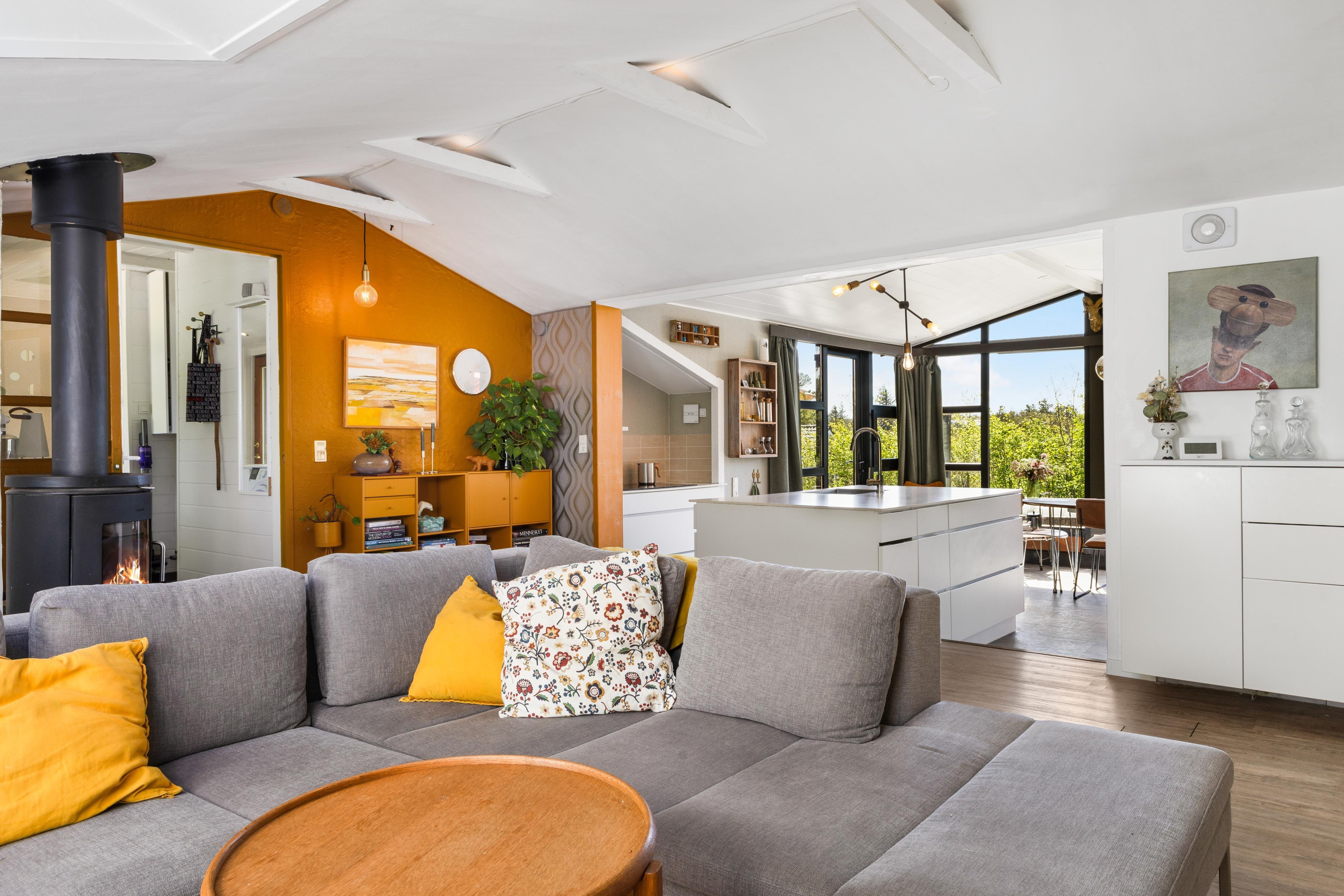 I dette skønne sommerhus finder du forskudte plan, sjæl og charme! Husejer har i dén grad sat sit eget præg på sommerhuset, og man føler sig velkommen fra det øjeblik, man træder ind af døren. Her får du bryggers i åben forbindelse til stort køkken/alrum og stue med brændeovn. Fra køkkenet kan du gennem det store, lyse vinduesparti kigge ud på den skønne natur og den nedsænkede spa på en del af husets store terrasseområde. Du får 6 sovepladser fordelt på 3 soverum - to dobbeltsenge samt en køjeseng.