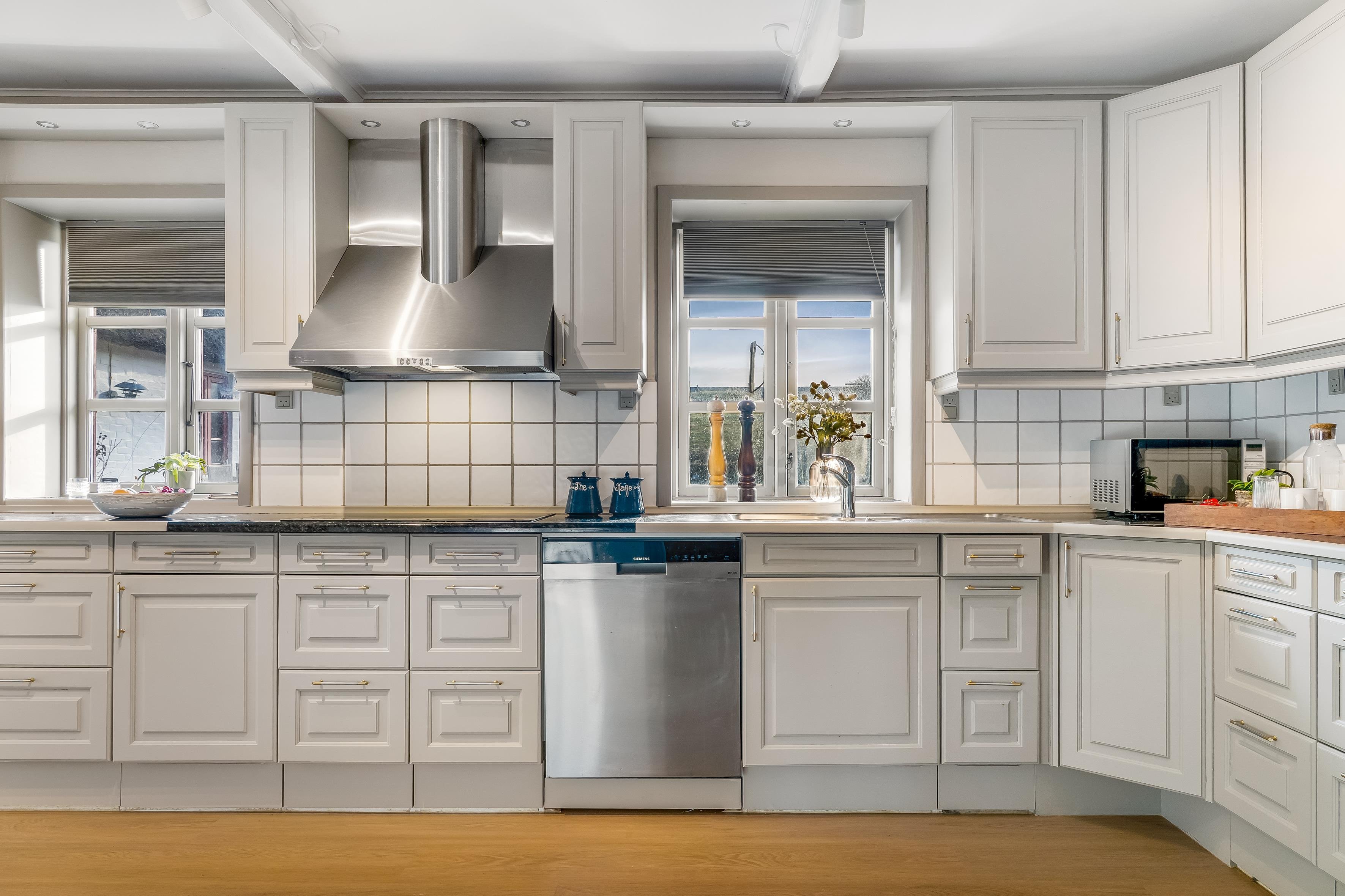 Sommerhusene er liebhavervillaer, og selve Møllehuset og grunden er et af Blokhus’ ældste huse. Foruden en nænsom renovering i 1999 af hovedhuset, er her ligeledes et to-etagers hus med et samlet boligareal på 112 kvadratmeter, hvilket er moderne og elegant indrettet efter en omfattende renovering i 2020/2021. Du finder desuden et isoleret anneks fra 2008. I alt får du ca. 392 kvadratmeters feriehushygge fordelt på fire bygninger og to etager!