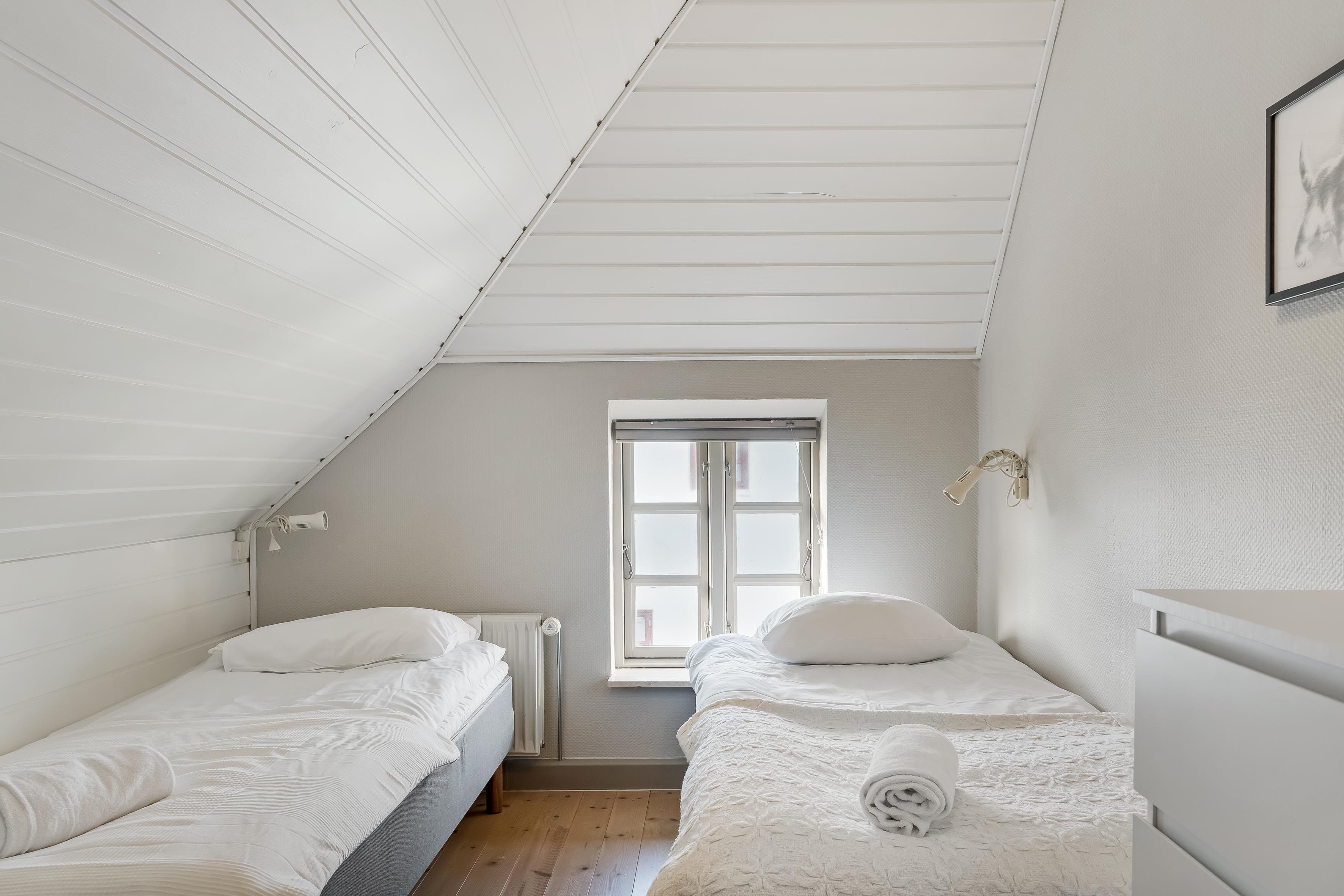 • Første sal: 2 enkeltsenge i 1 værelse