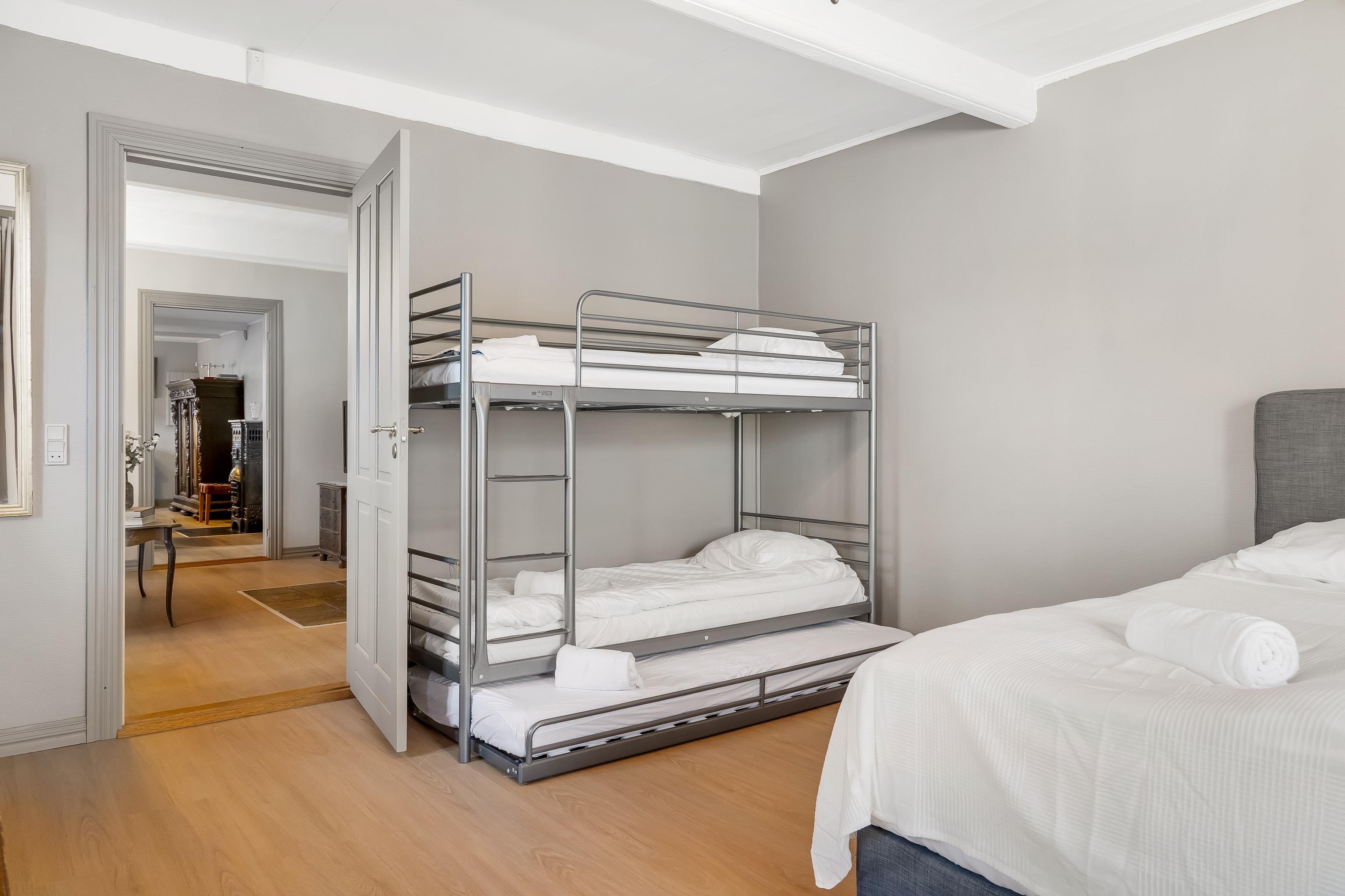 • Stueetage: 4 enkeltsenge i 2 værelser.