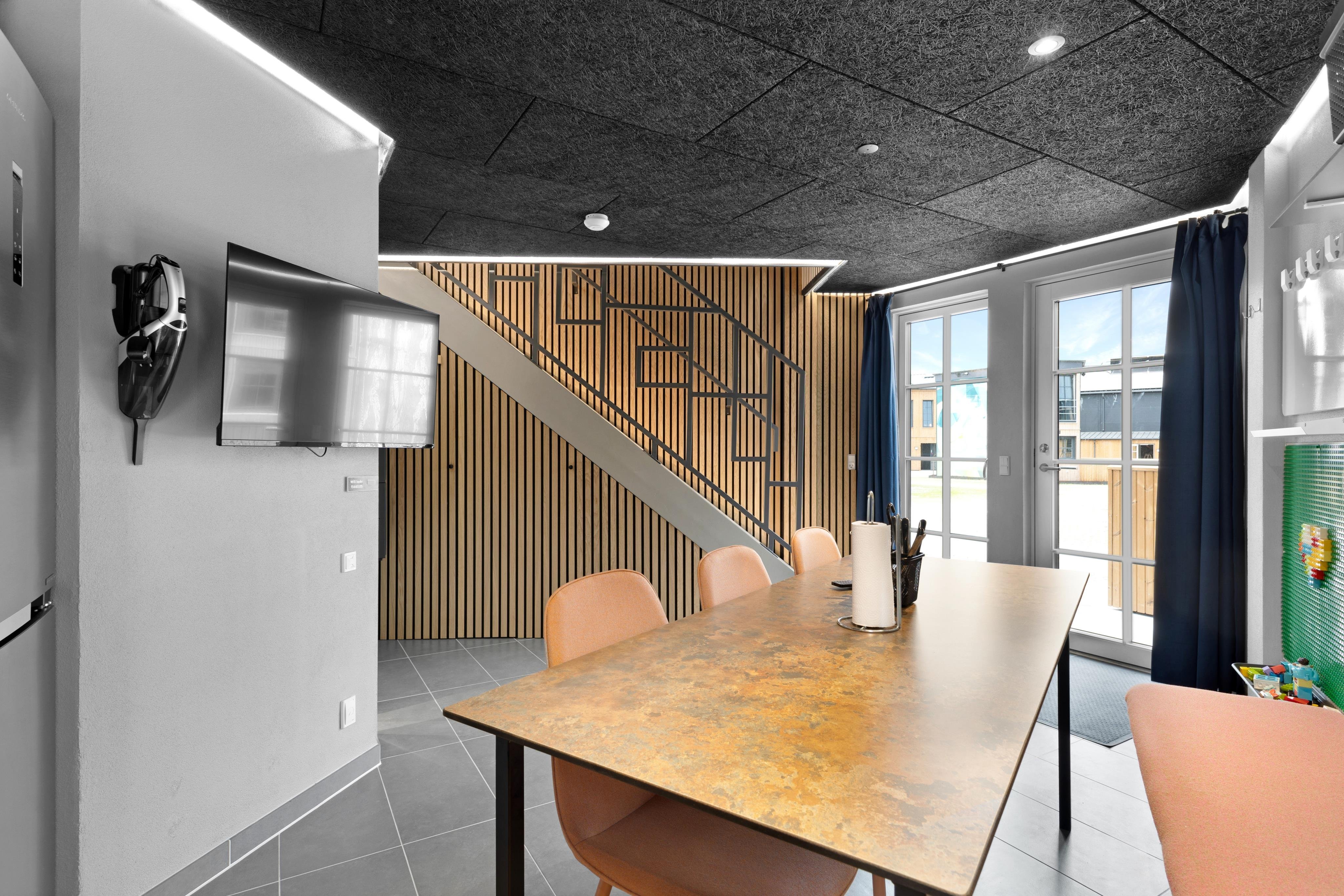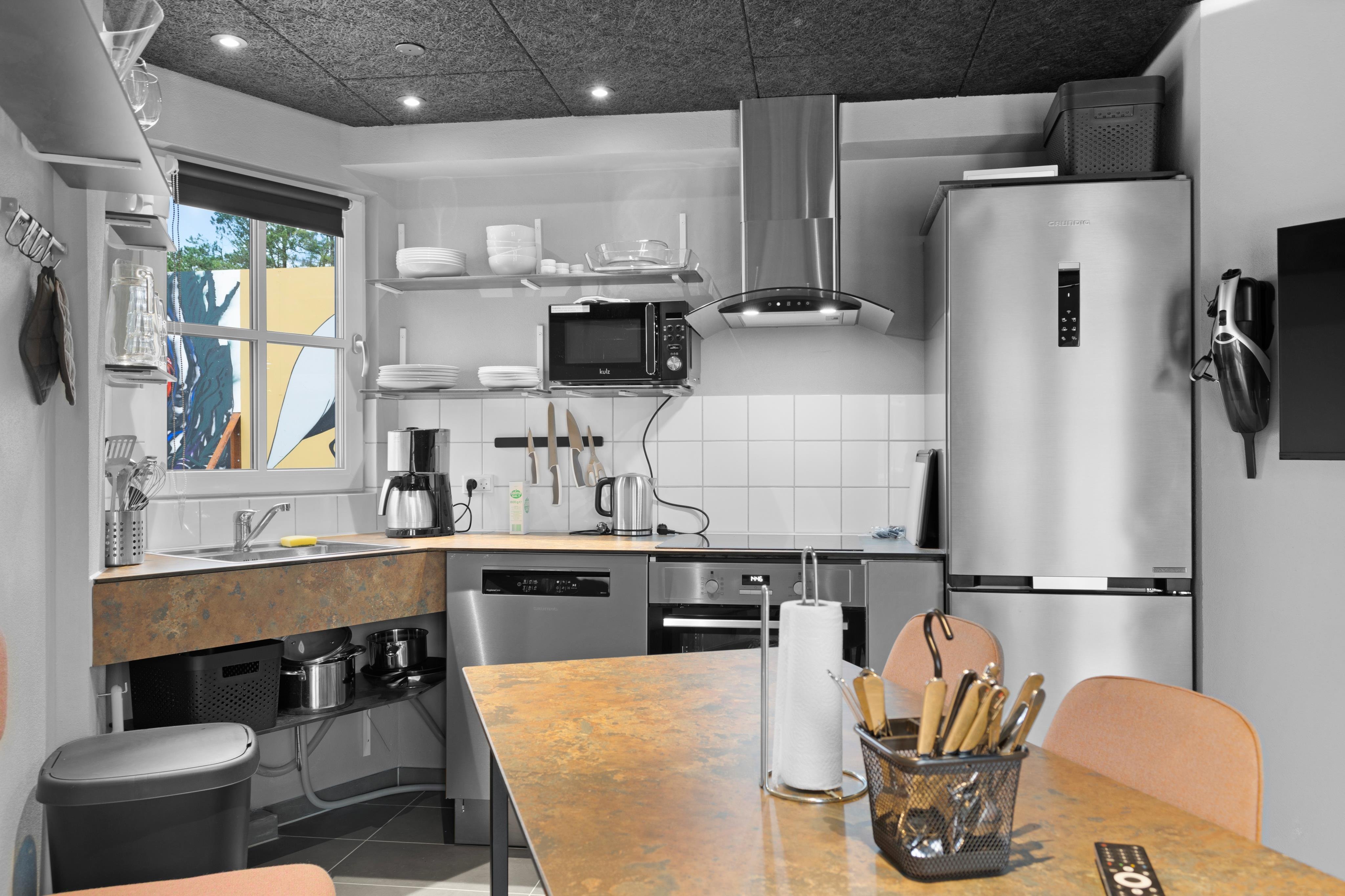 Ferielejlighederne i Fun Art har plads til op til 6 personer med fire køjesenge og en dobbeltseng, som alle er placeret på første sal. Hvis I er færre, kan køjesengene nemt foldes ind for at give mere plads til leg og hygge. Lejlighederne er smart indrettet og har alt, hvad I skal bruge for en sjov og afslappende ferie i Blokhus. I stueetagen er der et køkken/alrum, badeværelse og en terrasse, hvor børnene kan lege, mens forældrene slapper af. Der er også opvaskemaskine, vaskemaskine, tørretumbler og grill samt ladestandere til elbiler. Alle lejlighederne er røgfri.