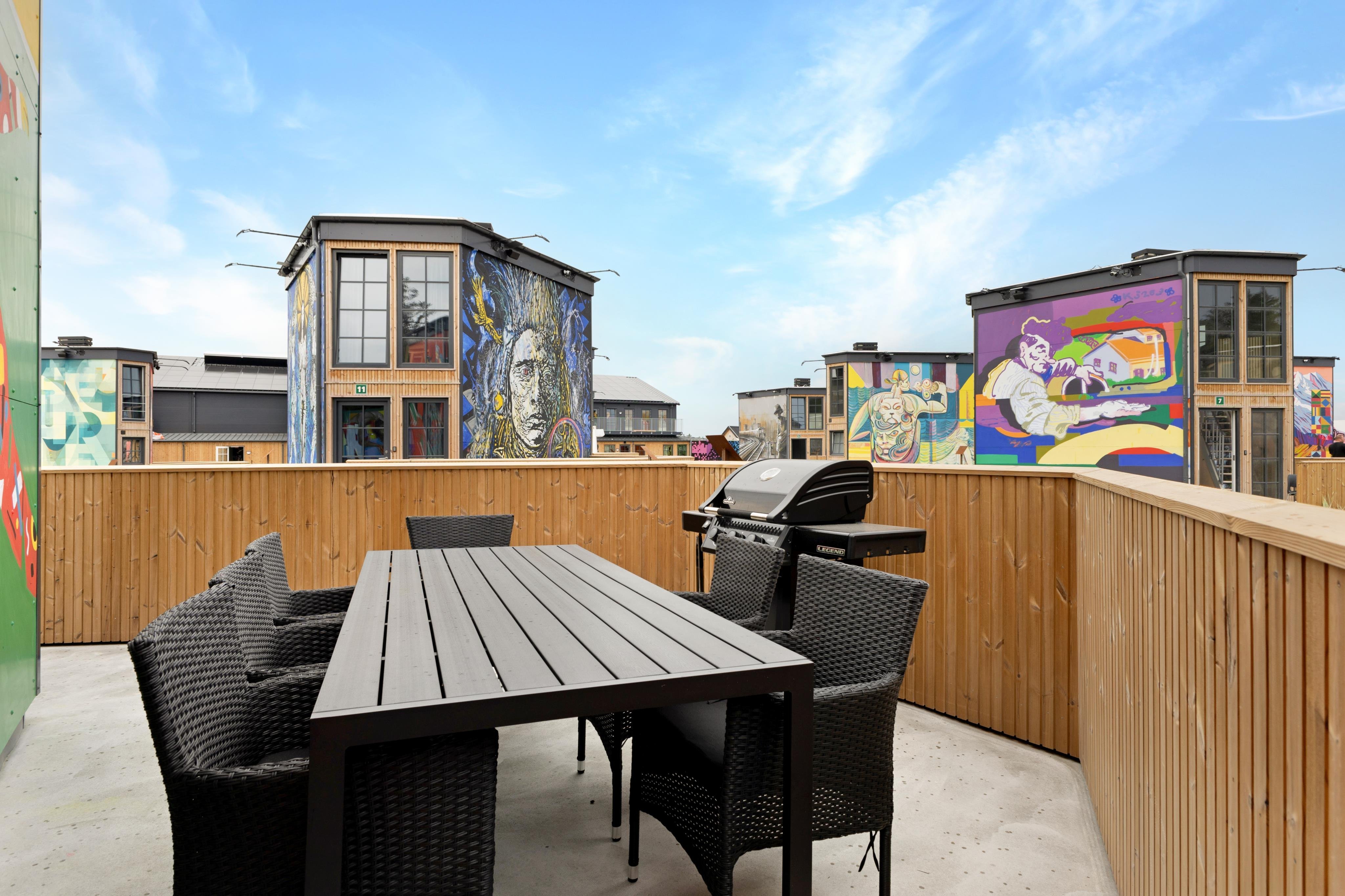 Fun Art i Blokhus er mere end blot en aktivitetspark med innovative sommerhuse – det er en oplevelse for hele familien! Her finder du ikke kun moderne sommerhuse á la Tiny Houses, men også en række aktiviteter som trampolinpark, legeland, street art og et keramikværksted samt koncerter og meget mere. Fun Art ligger i naturskønne Blokhus og tilbyder underholdning og sjov for både børn og voksne. Sommerhusene prydes af street art-malerier, der giver dem et unikt udseende, mens indretningen følger Tiny Houses-konceptet. Når du ankommer, er linnedpakker klar, og du har valget mellem roomservice, at spise i Fun Arts restaurant eller grille på din egen terrasse. Plads til 1-6 personer.