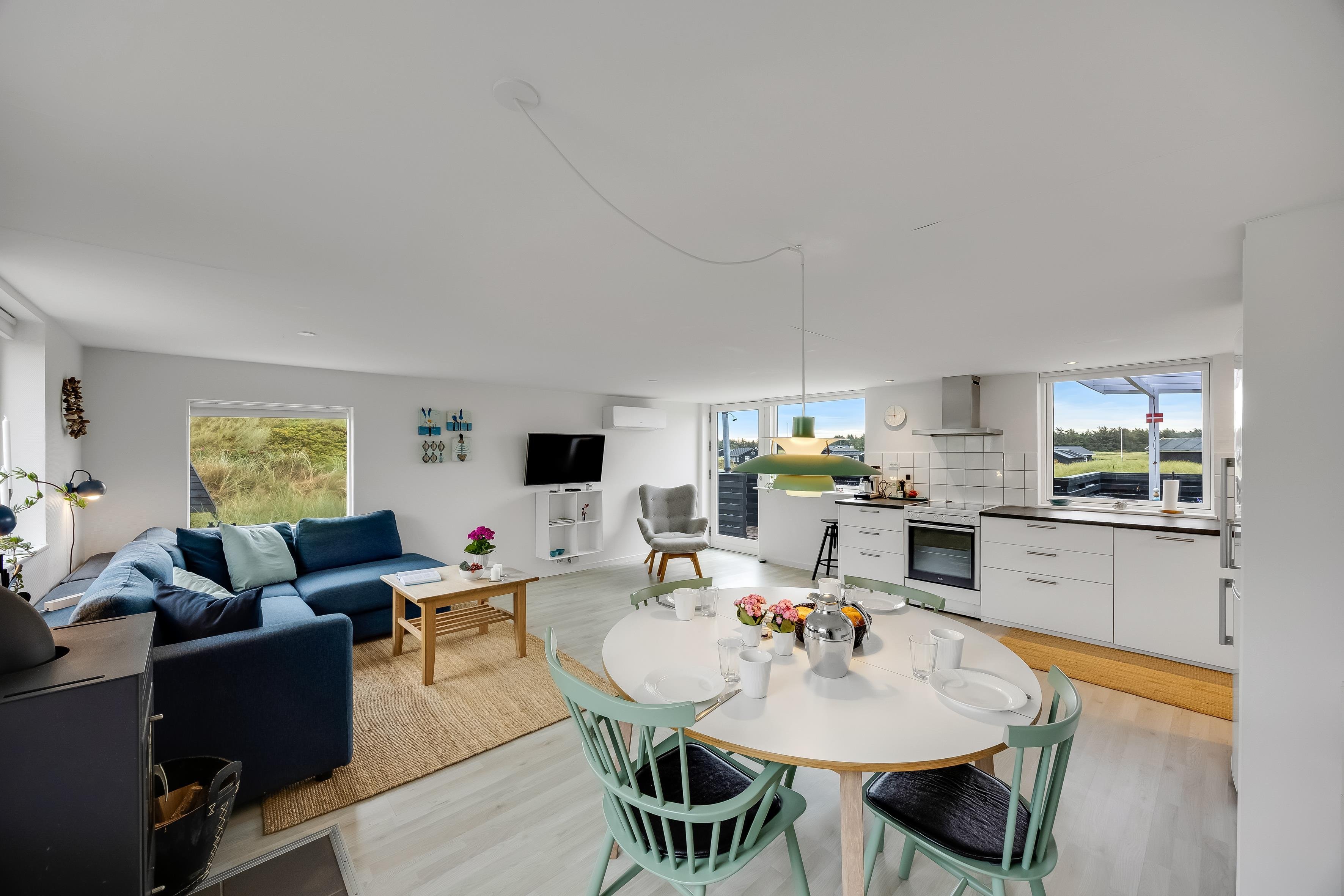 Fra stuen har du en skøn udsigt til områdets smukke natur og andre sommerhuse, og med den korte afstand til stranden og kun ca. 2 km til centrum af Løkken, får du både ro og liv lige i nærheden.