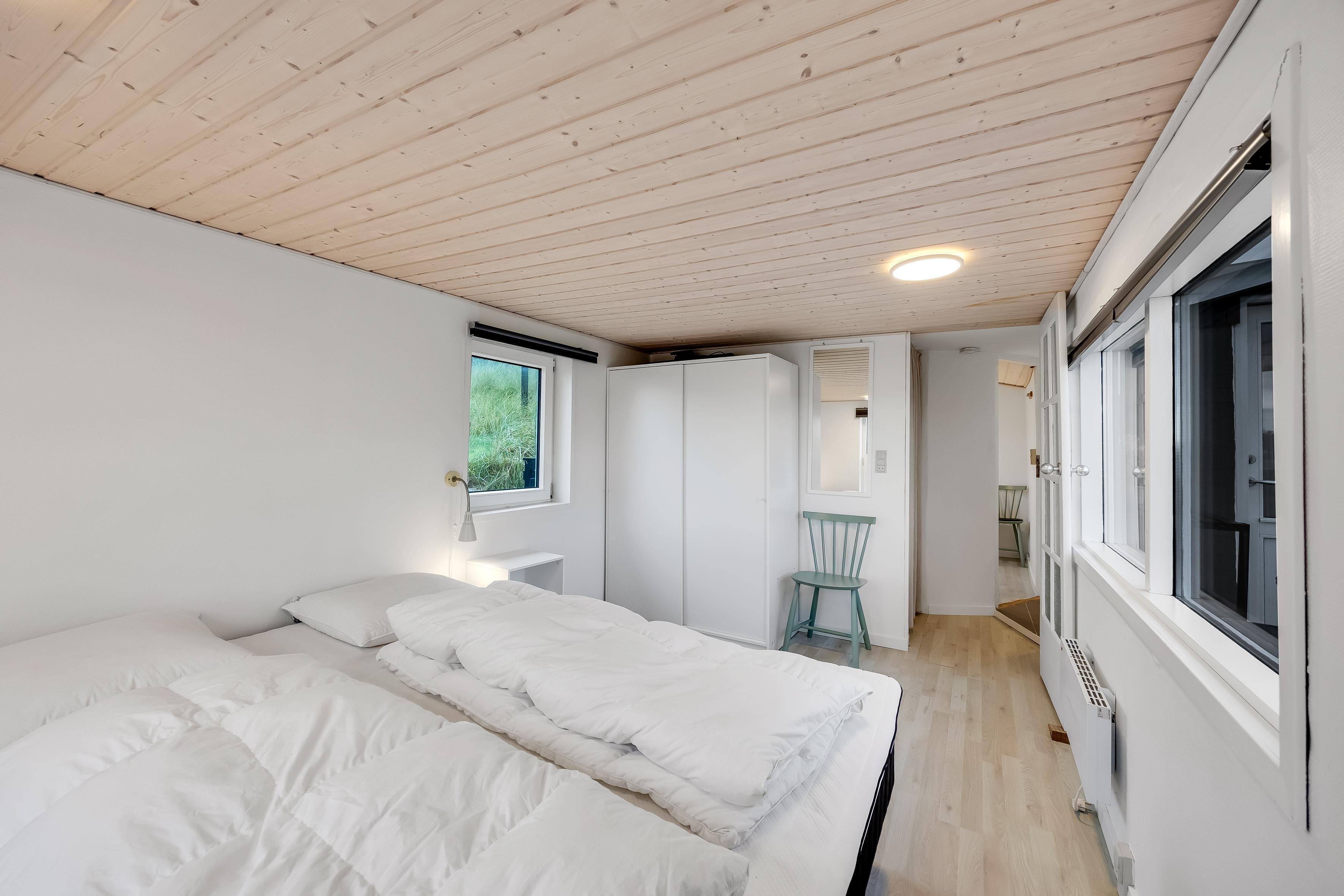 I sommerhuset finder du en rummelig stue med brændeovn og et lyst og dejligt køkken – ideelt til hyggelige aftener og gode måltider med vennerne eller familien. Sommerhuset rummer to soveværelser, begge med dobbeltsenge og en lys og rolig indretning, som giver de bedste rammer at hvile sig efter en lang dag på stranden eller andre af de uendelige muligheder, der er for oplevelser i Løkken og omegn.