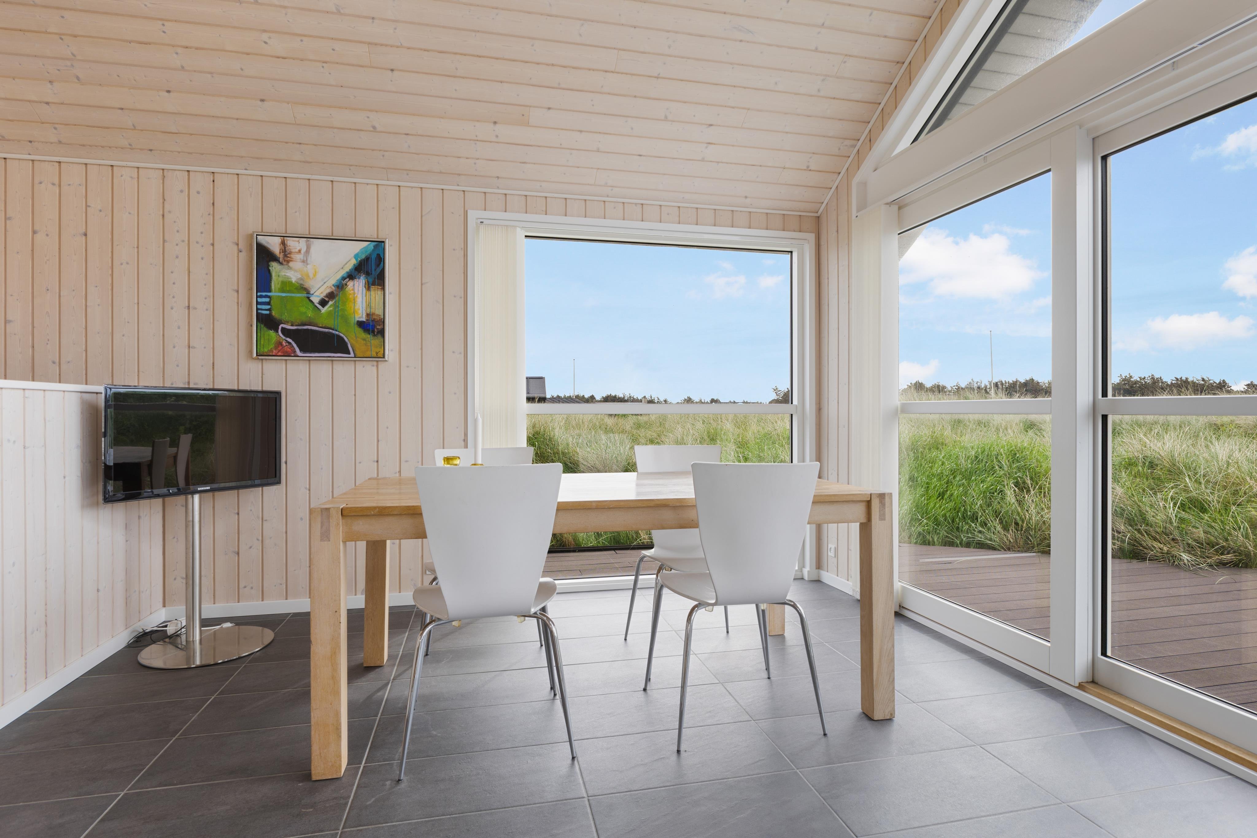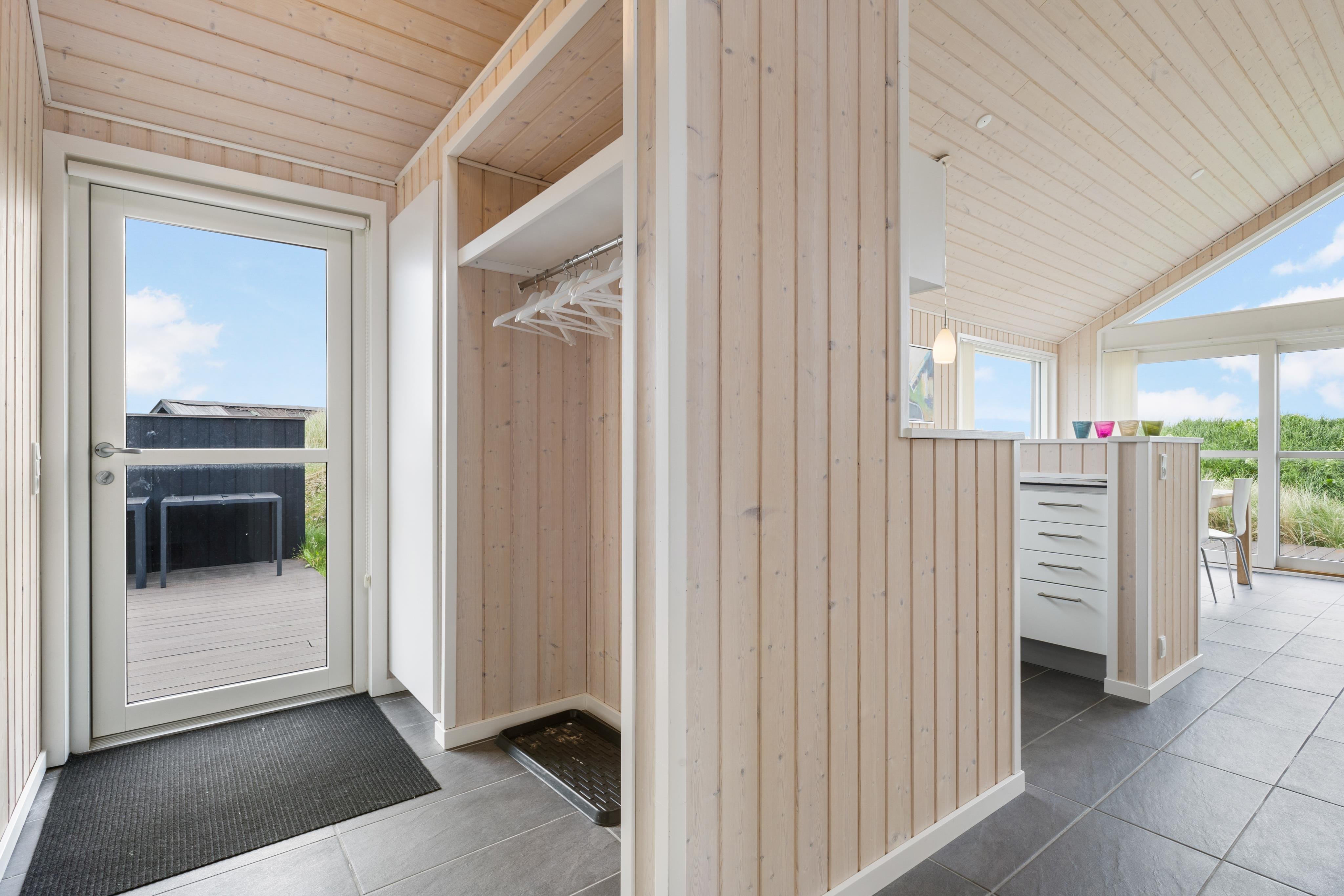 Udendørsområdet byder på store terrasseområder, hvor du kan nyde din morgenkaffe, grille om aftenen eller bare slappe af med en god bog. Det er også et perfekt sted for børnene at lege og nyde den friske havluft. Hvis du vil opleve byens summen af glade gæster, skal du blot bevæge dig ca. 2 km, og det er endda tilladt at køre på bil ned på stranden, der er en af Danmarks mest eftertragtede badestrande.
