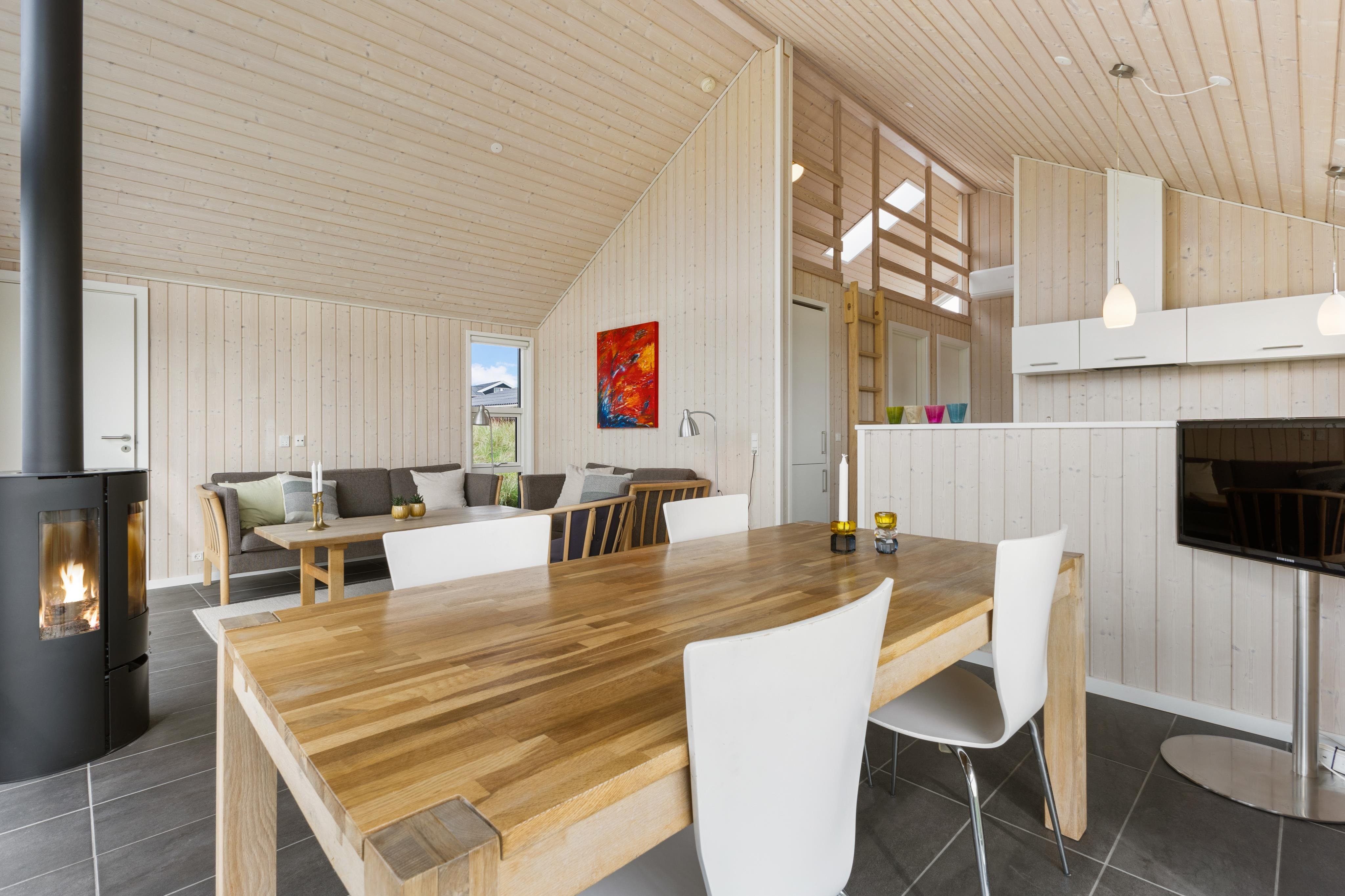Huset ligger kystnært, så du kan nemt tage en kort gåtur til stranden og nyde det dejlige hav. Den åbne og lyse indretning gør huset indbydende, og de store vinduer sikrer masser af naturligt lys, hvilket skaber en behagelig atmosfære.