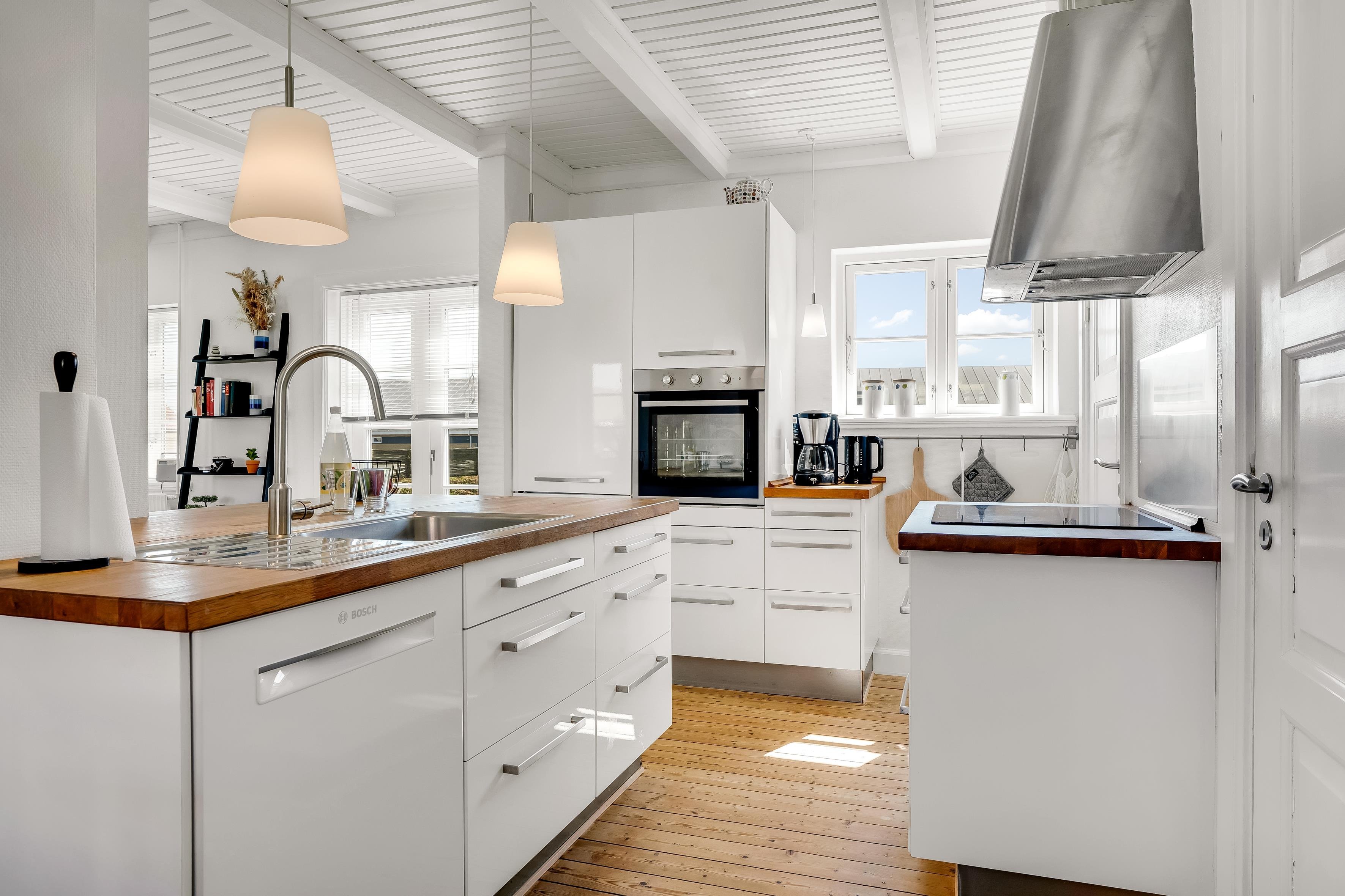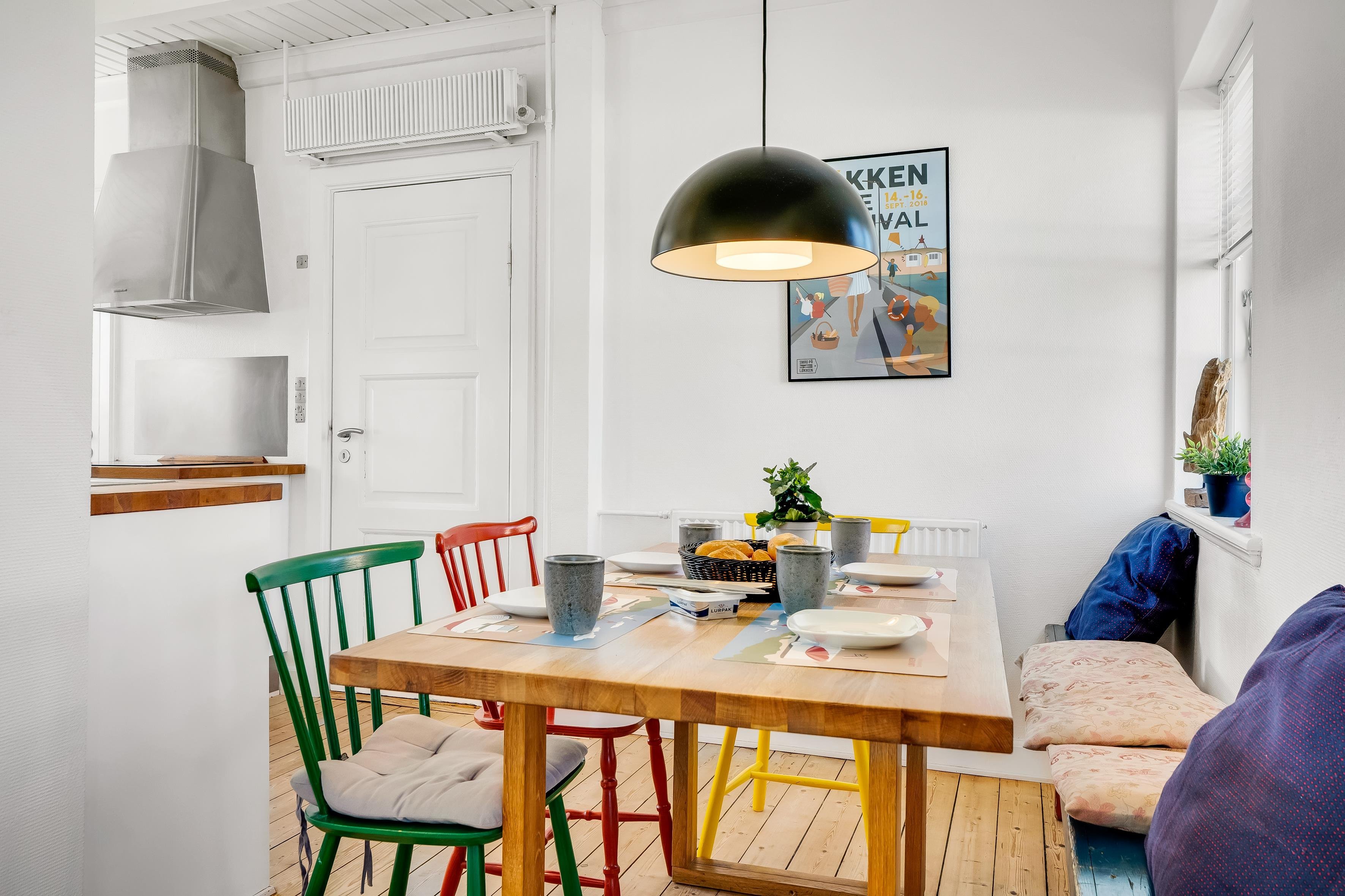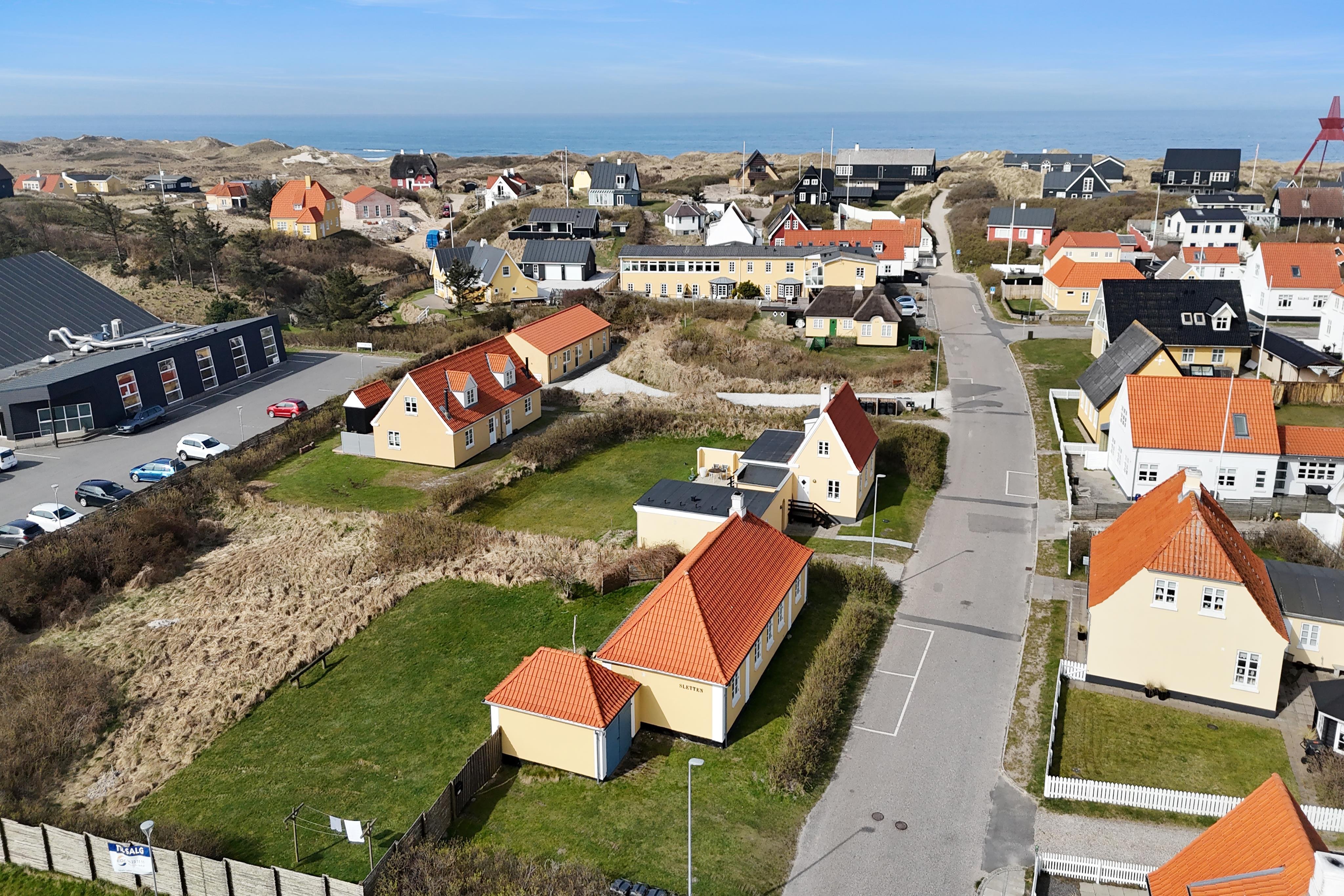 Fra Damgårdsvej 5 har I kun et par minutters gang til en lille sti, der fører jer gennem klitterne og ned til Løkken Strand, der er en af Danmarks mest populære badestrande. Her er et rigt vandsportsmiljø, og hvis du foretrækker at dase i klitterne eller fiske fra molelejet, har du rige muligheder for det. Selve mole-miljøet er istandsat i 2025 i en cool beton-stil, og her finder du både autentiske fiskekuttere og en masse leben. Når sulten melder sig, byder Løkken på et bredt udvalg af caféer og restauranter, ligesom byen har mange specialbutikker og et stort supermarked lige i nærheden. Hvis I er til action, er der både gokart, bowling og golf i området, og for naturelskere venter smukke udflugtsmål som Nybæk Plantage, Rubjerg Knude eller bare lange gå- eller cykelture i det smukke landskab.