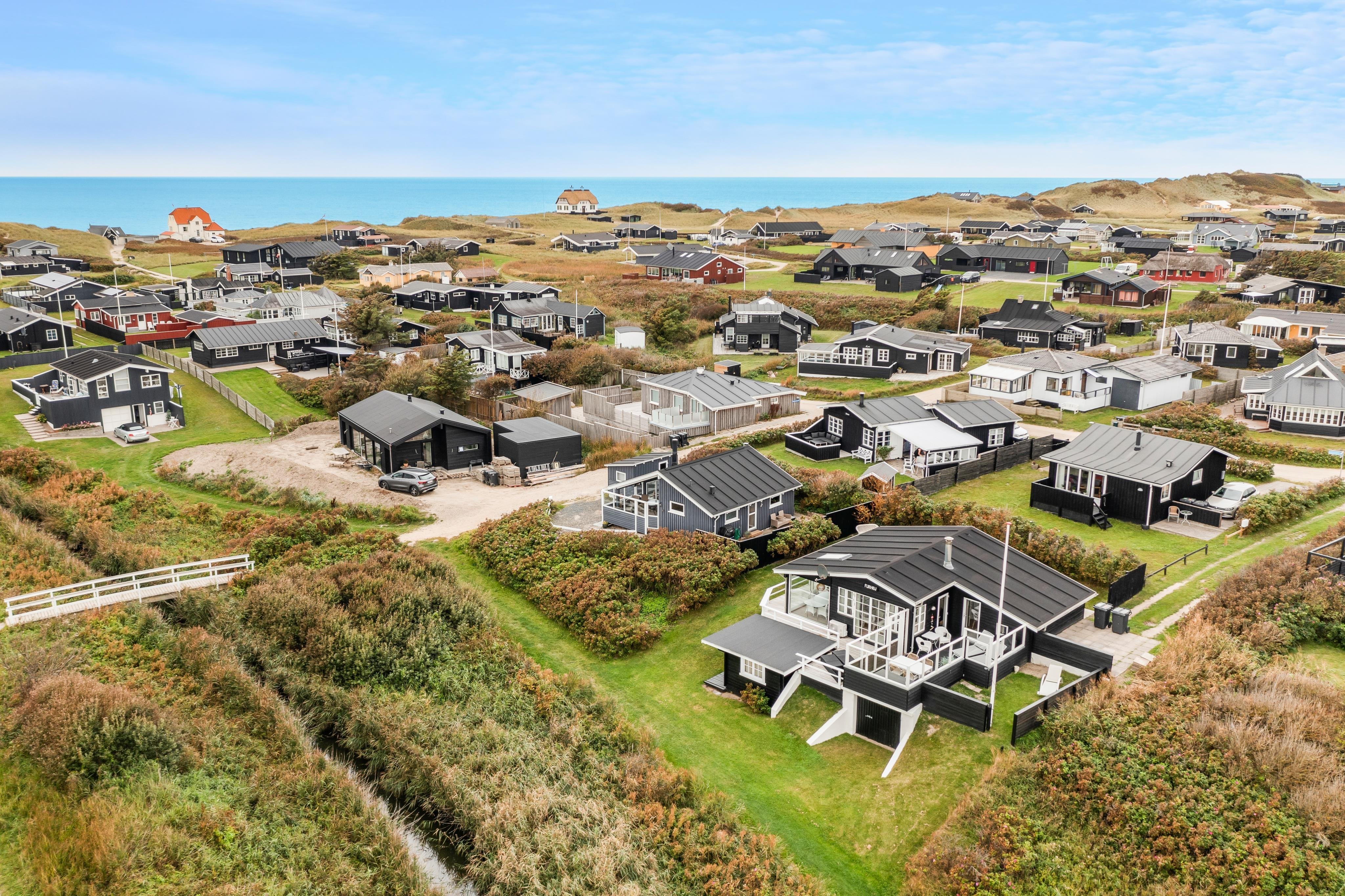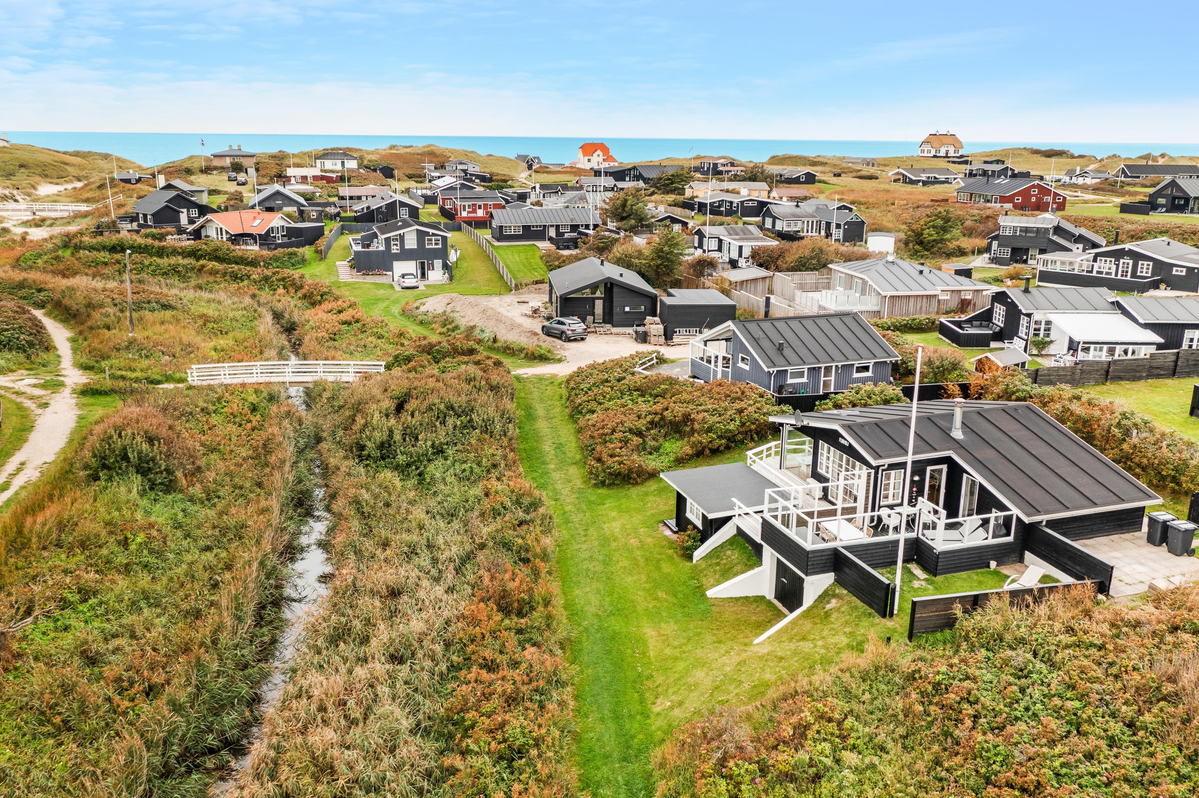 Ja - her, hvor Furreby Bæk risler lige nedenfor sommerhusets store terrasse, ligger denne skønne feriebolig til leje. Udsigten og lydtæppet er skønt her for enden af dejlige Drosselvej. Med bækken i baghaven og udsigt ned til den charmerende bro, der fører dig direkte ind i Løkken centrum, får du charme og ro såvel inde som ude. Krydser du broen og fortsætter ligeud, kommer du til centrum af Løkken, og drejer du til højre efter broen, kommer du direkte ned til en af Danmarks bedste badestrande - Løkken strand, hvor det fine, hvide sand leder direkte ud i det brusende hav.