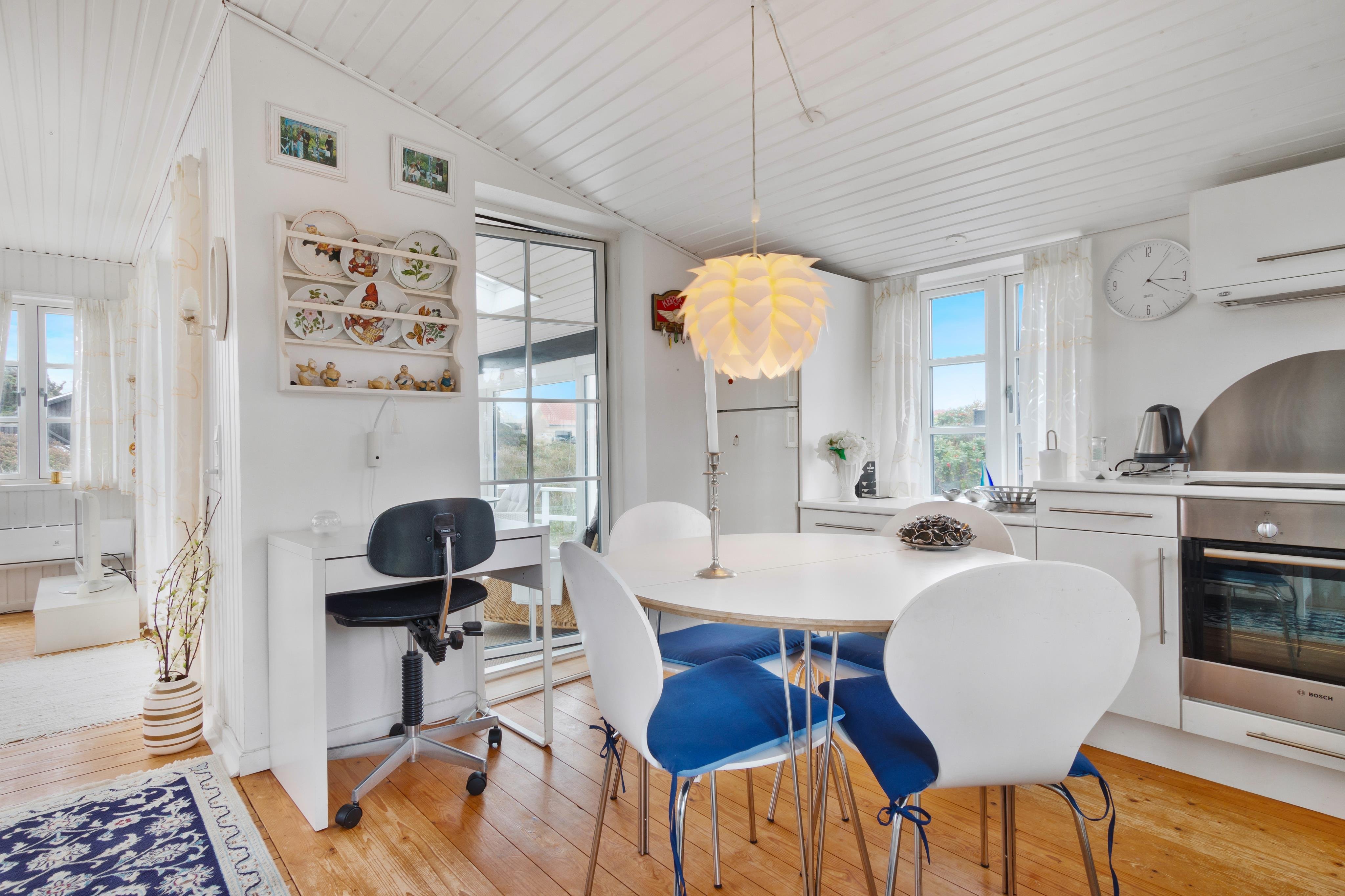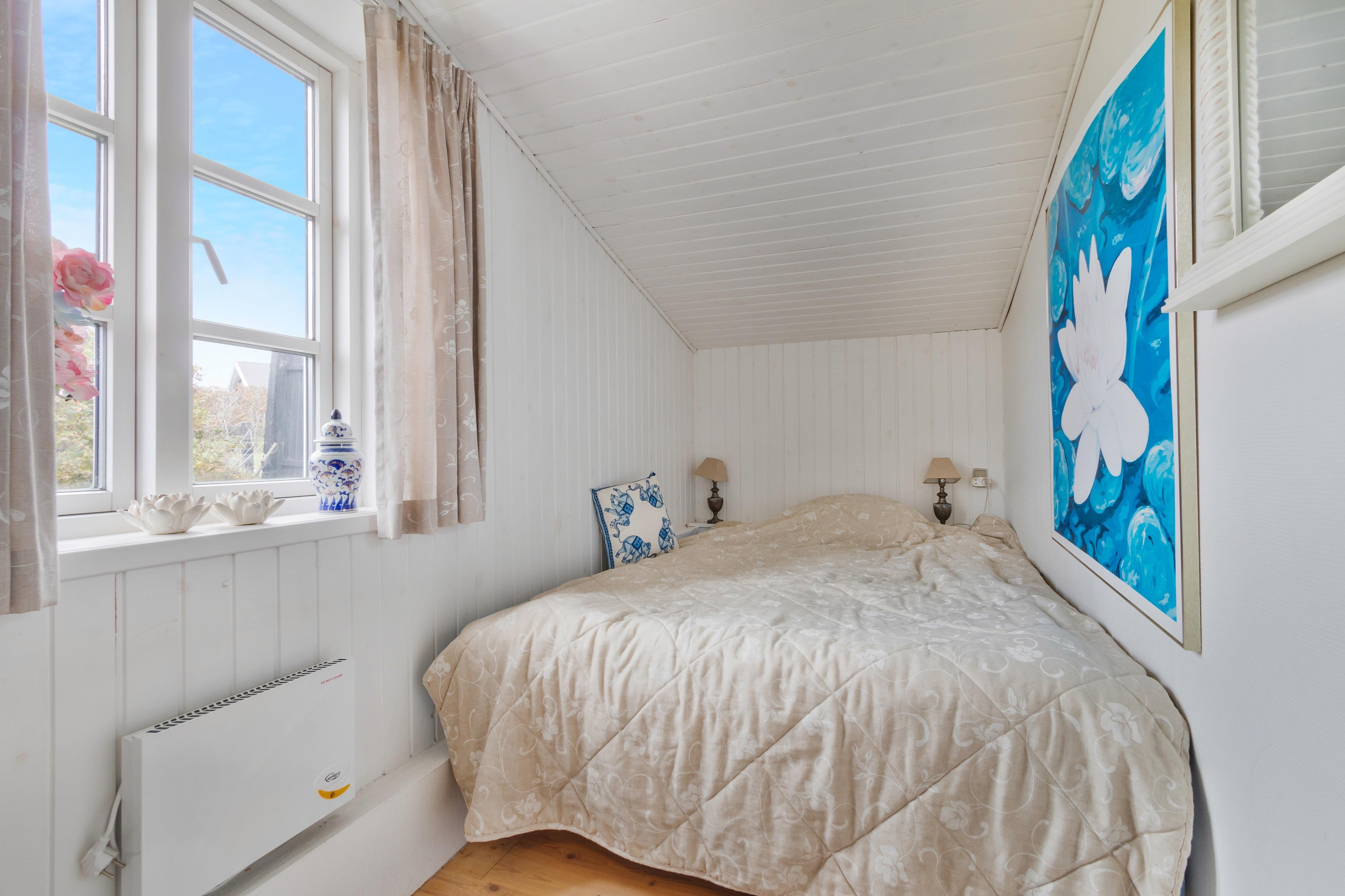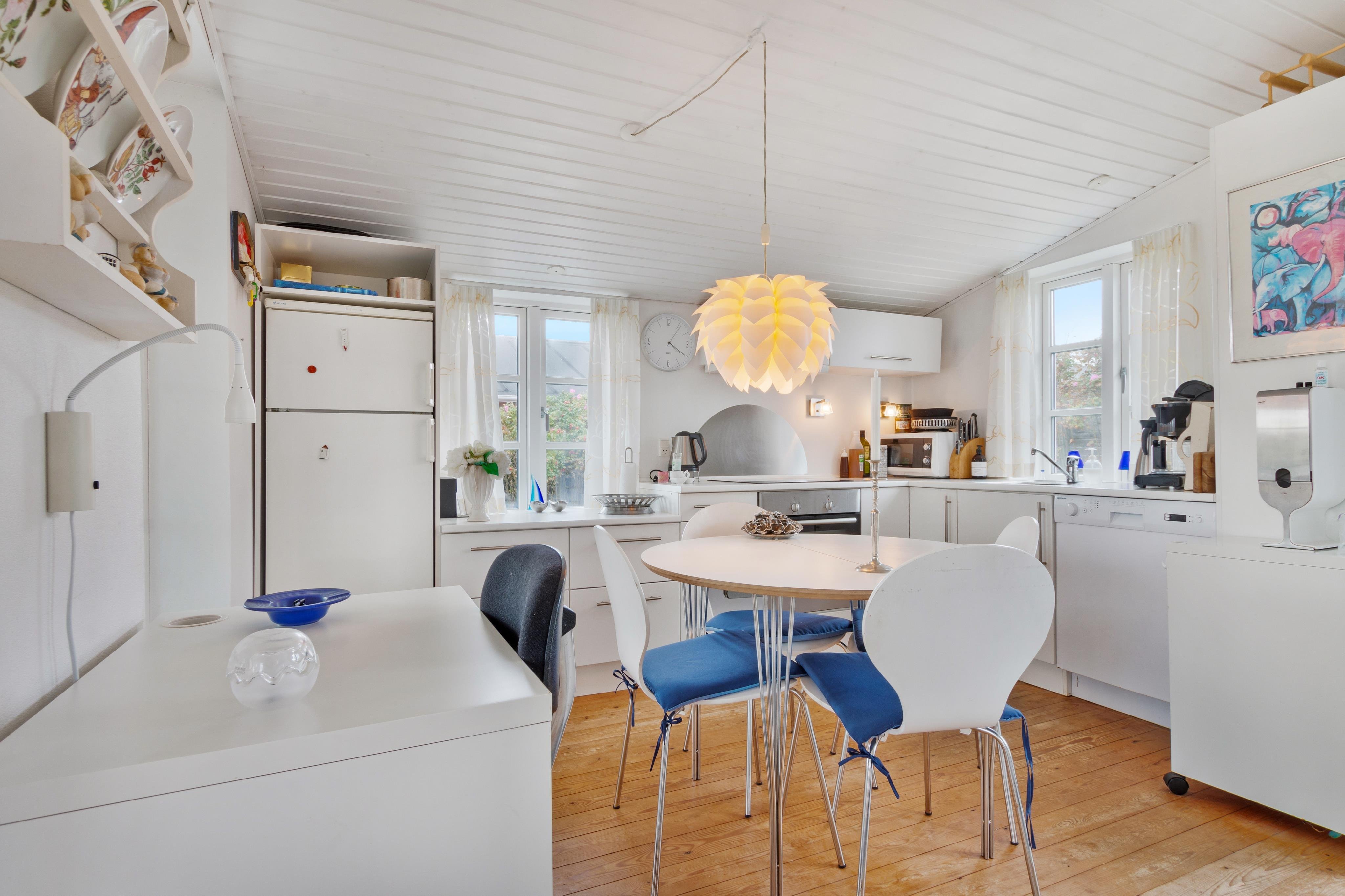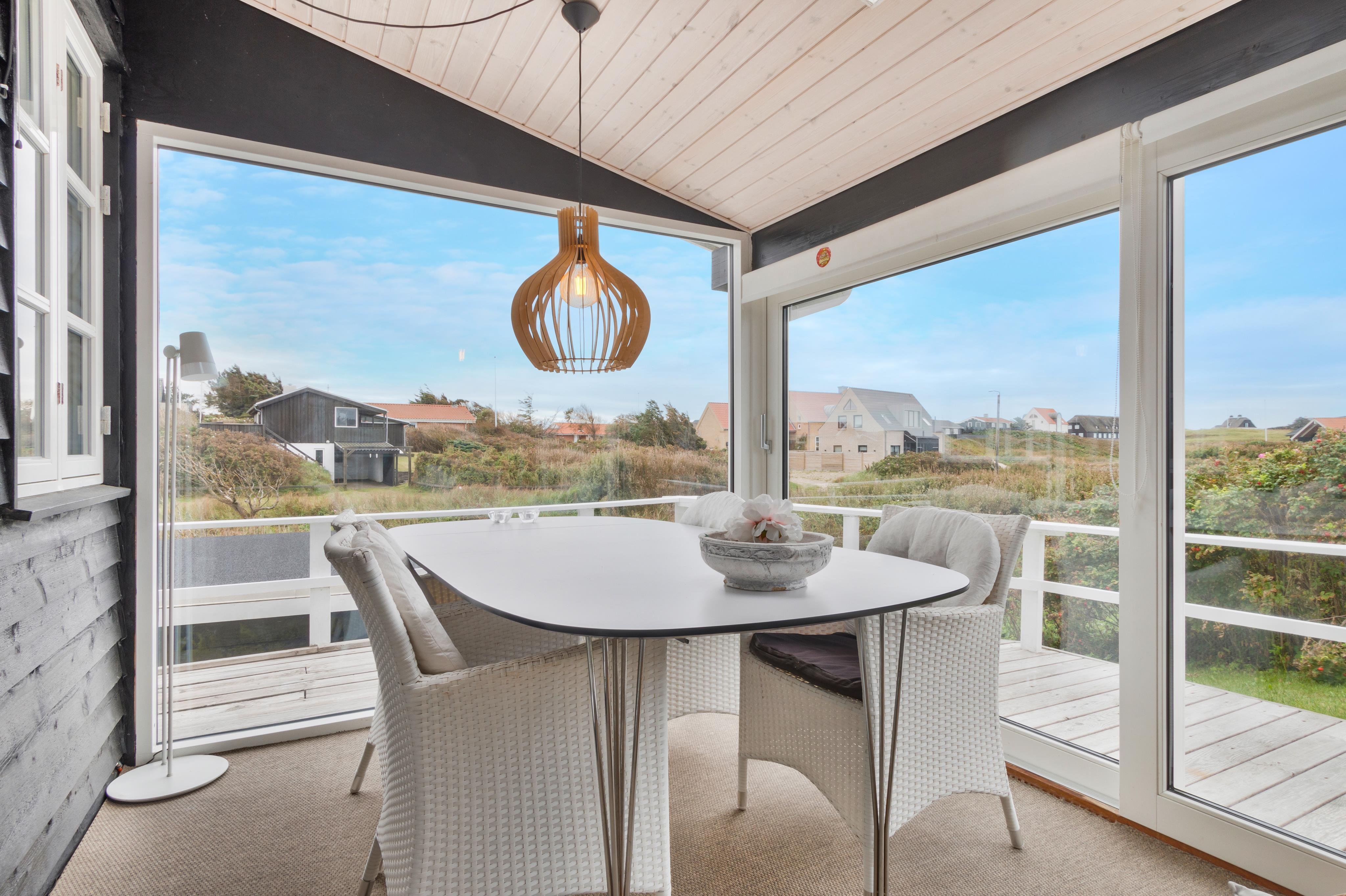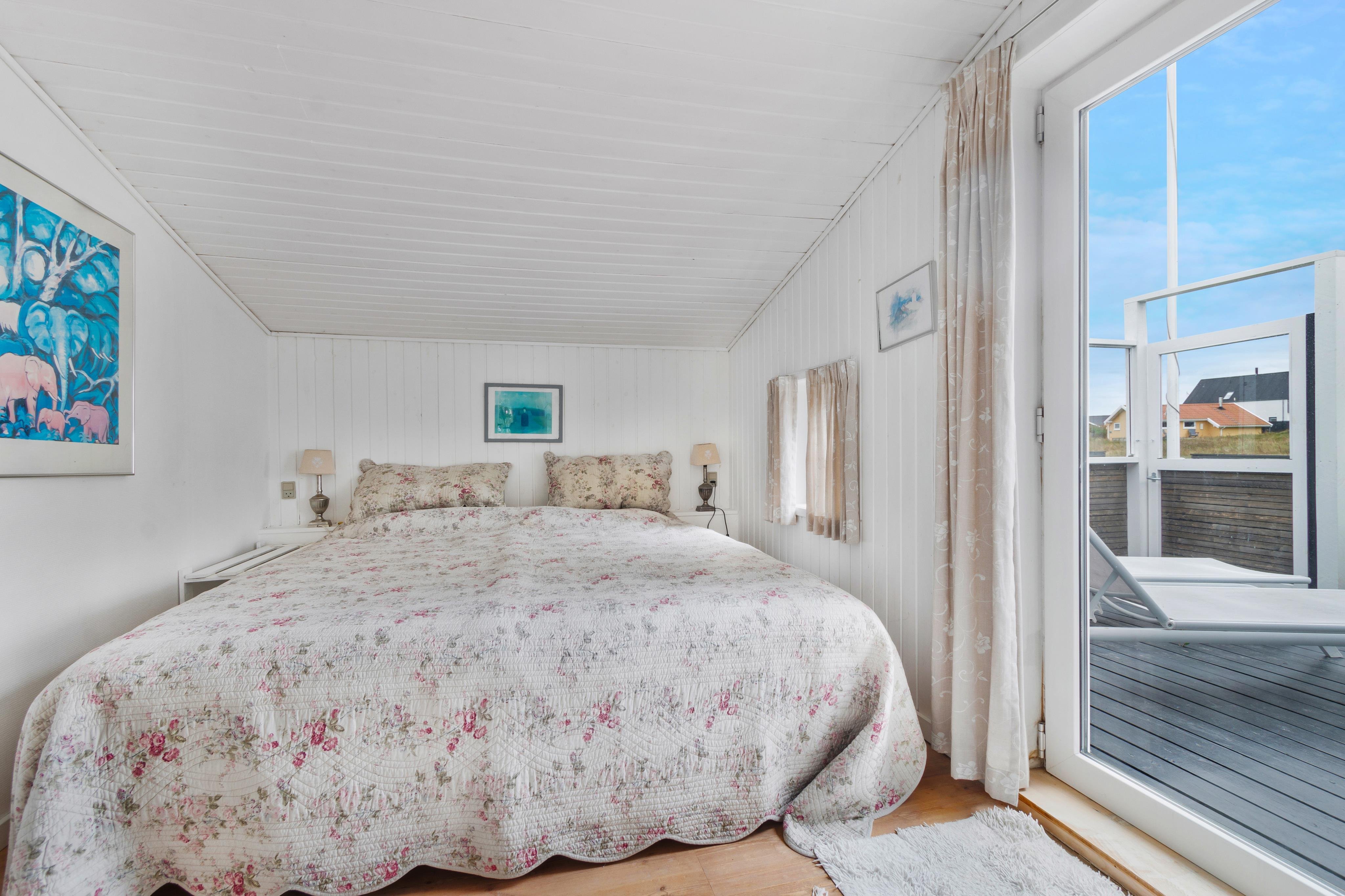 Sommerhuset er yderst charmerende og skal opleves. Det ligger for enden af Drosselvej med udsigt ud over Furreby Bæk og ind til Løkken, samt ud over nogle af de skønne ferieboliger i Furreby. Der er terrasse rundt om halvdelen af huset, og masser af mulighed for solbadning og afslapning. Inde i huset er der en dejlig rumfordeling med åbent køkken/stue/alrum og en dejlig udestue, hvor du kan sidde i læ og nyde udsigten. Der er 2 soverum og plads til 4 personer. Huset er holdt i en skøn, lys sommerhusstil, og i vores optik findes her alt, hvad en klassisk sommerhusferie kræver og mere. Der er plads til to parkerede biler ved siden af huset.