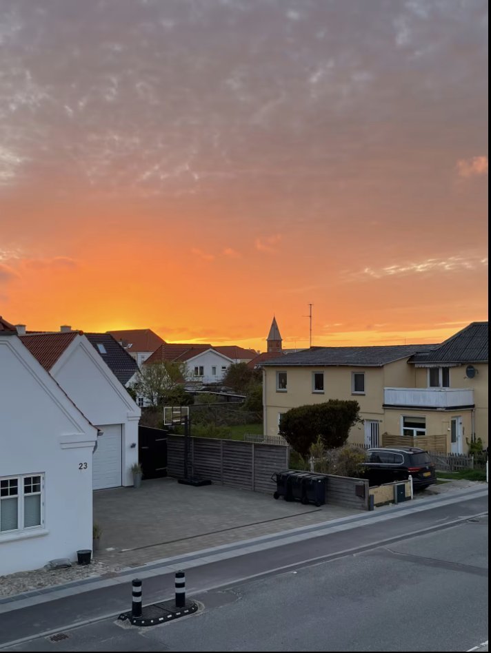 Adgangen til lejligheden sker fra fortovet, og herfra er der kun få minutters gang til stranden, centrum, indkøb og transportmuligheder, hvilket gør beliggenheden både praktisk og attraktiv.