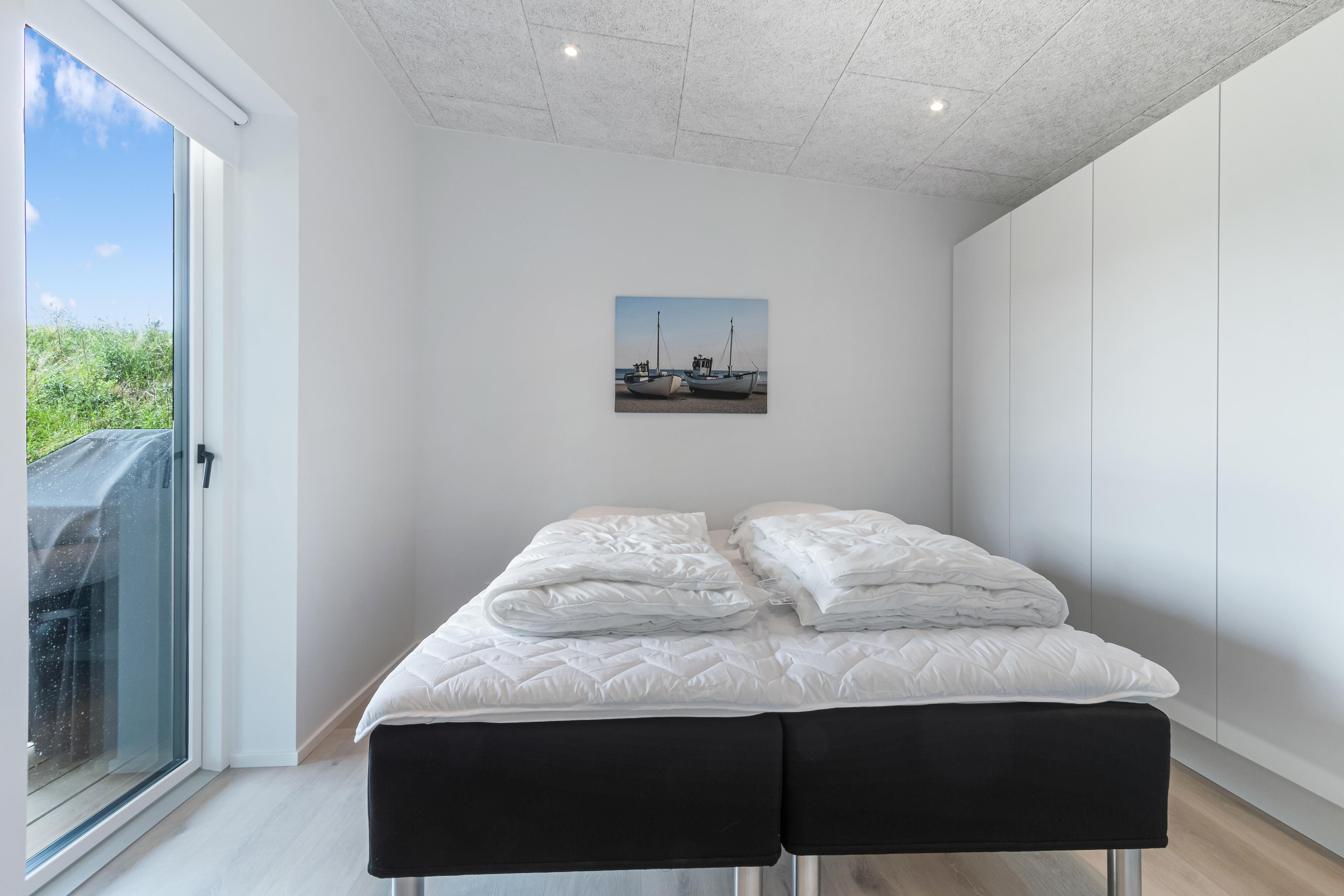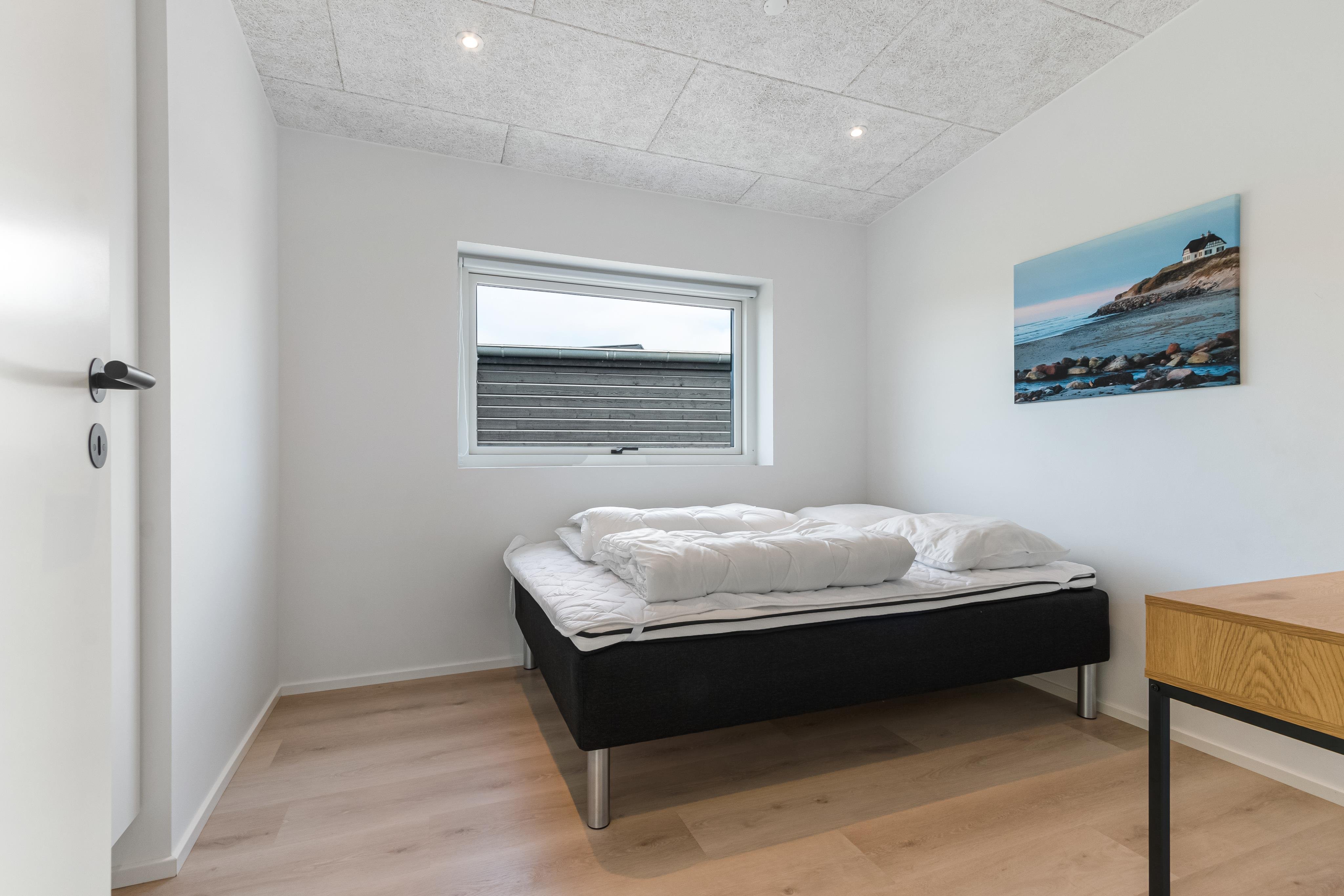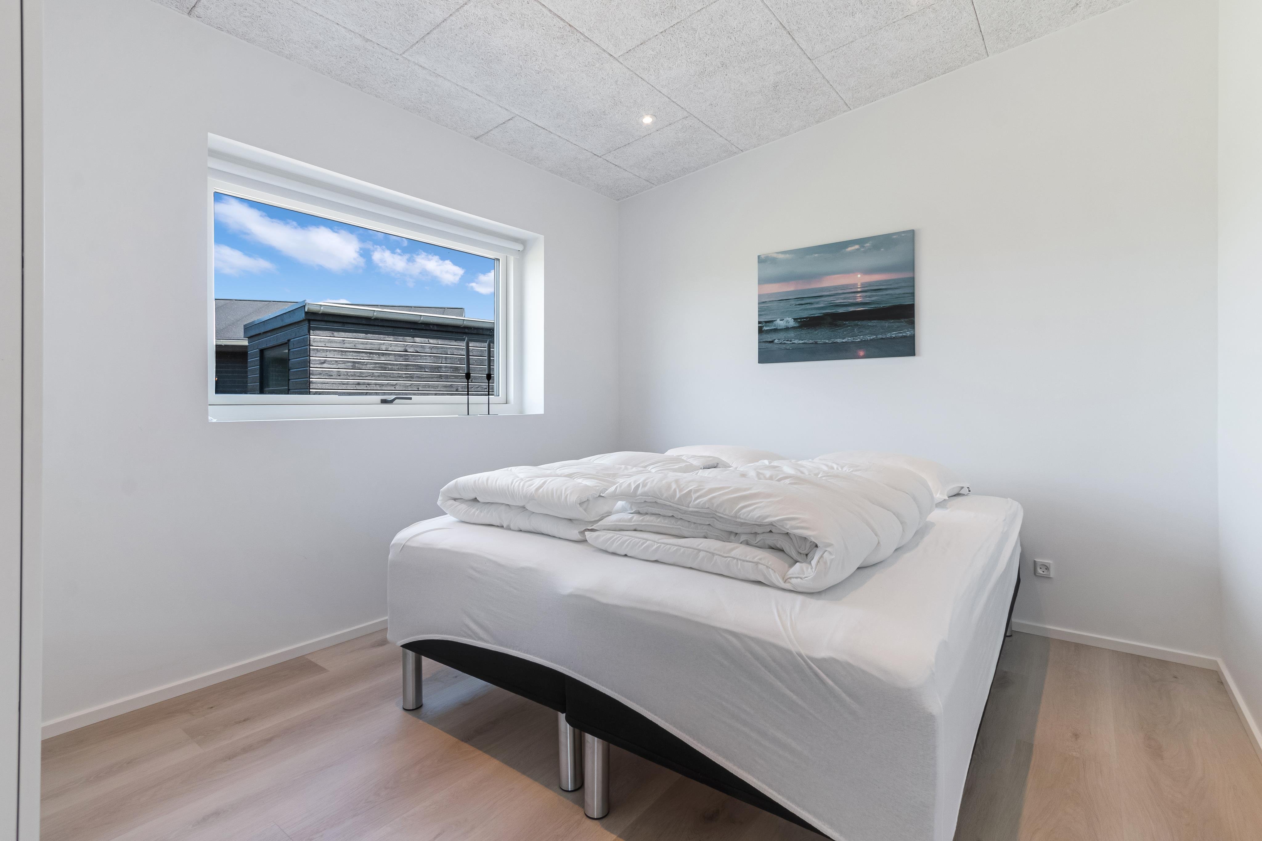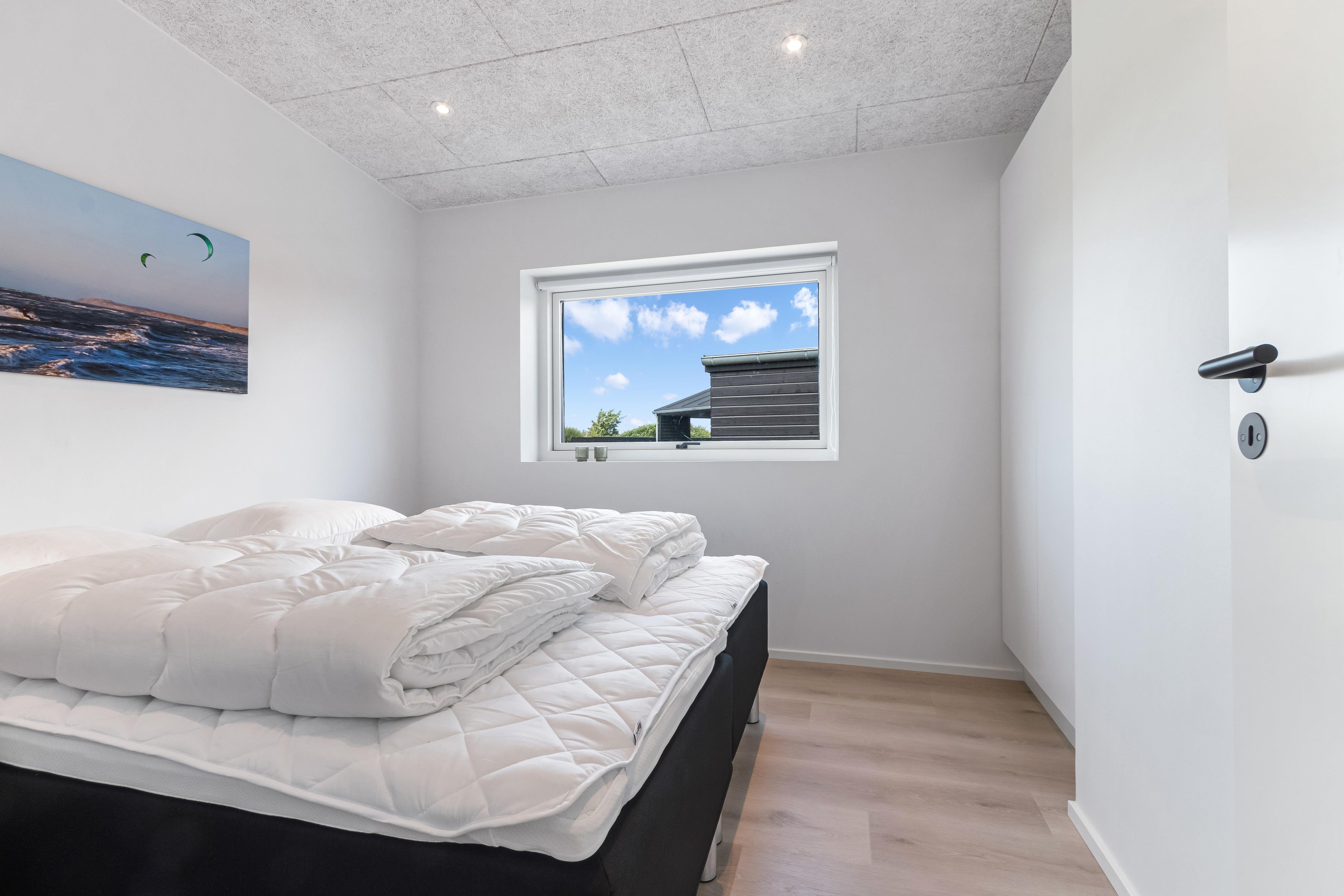 Sommerhuset har fire soverum med dobbeltsenge i hvert rum. Der er to badeværelser og et lyst og åbent køkken/alrum i forbindelse med stuen. Her er plads til 8 personer.