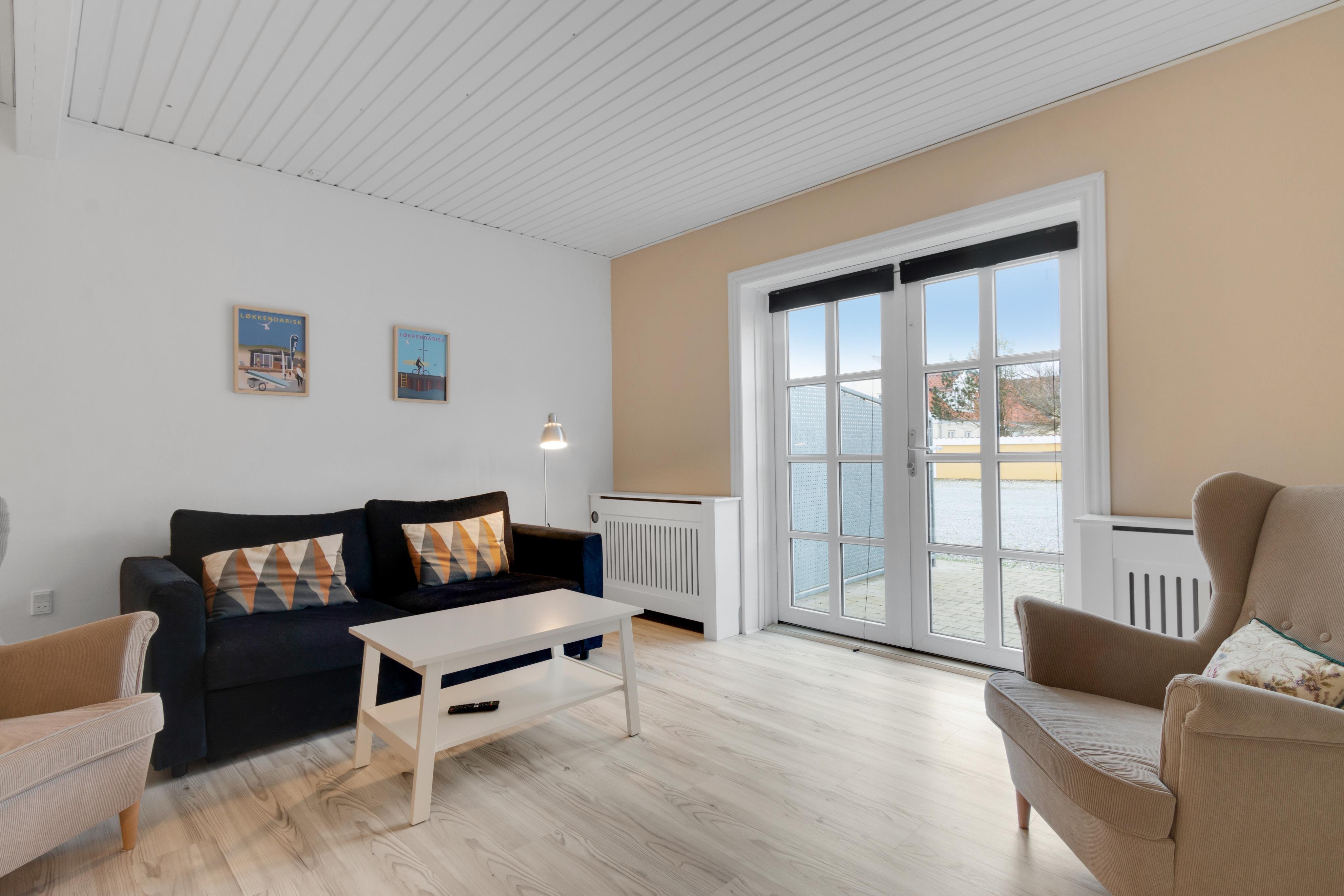 Er vejret ikke lige til at lufte sommertøjet på stranden, så er der masser af muligheder for hygge alligevel. Denne feriebolig indbyder nemlig også til indendørs hygge - enten sammen i det lyse, åbne samtalerum i stueetagen, eller roligt hver for sig i lejlighedens skønne soverum. Netop uden for døren har du som nævnt kort afstand til mange aktiviteter. Her er idrætscenter med svømmehal og paddletennis samt sportshaller. Masser af cykel-egnede ruter, action house med gokart, bowling, spillemaskiner samt plads til de yngste. Så der er altid masser af give sig til, og Løkken badehotel har skam også egen pool, der har åbent 06:00-00:00, så her gemmer sig også mange timers sjov og spas for vandhundene!