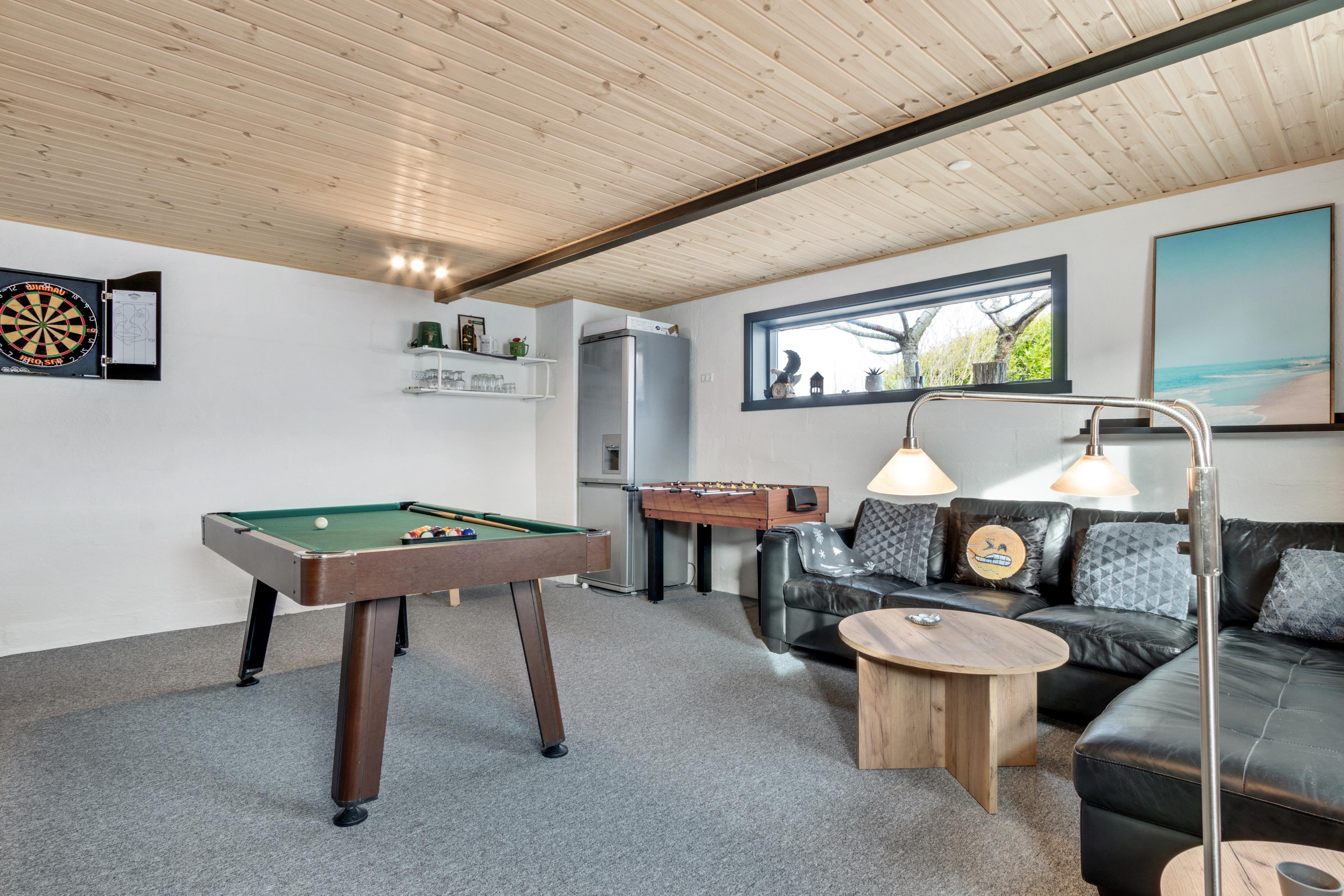 Her på hovedgaden i Ingstrup finder du denne skønne og rummelige feriebolig til leje, der indbyder til masser af hygge med familie og venner! Her er nemlig plads til hele 10 personer, der kan boltre sig med poolbord, bordfodbold, spa, grill på terrassen, Playstation, dart og meget mere. Ferieboligen er praktisk indrettet med aktivitetshus udenfor, så man kan vælge at skærme spas og leg fra indendørs ro og afslapning. Både huset såvel som byen er super hyggelige at opholde sig i - oplev bl.a. lokale kendetegn såsom “mini-badehus-bogreolerne”, hvor du kan låne og bytte bøger, og byens mejeri, hvor du kan købe de dejligste oste.