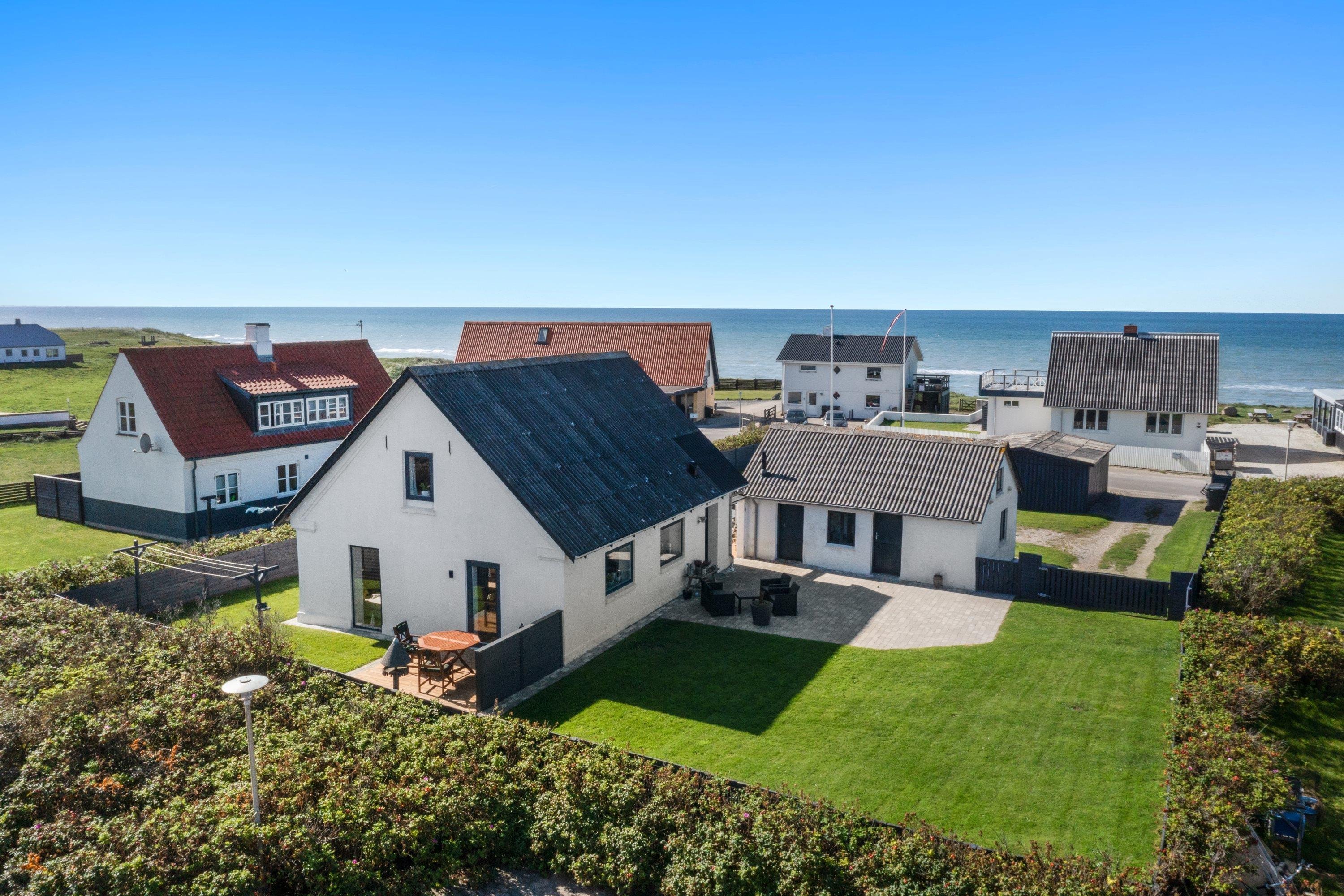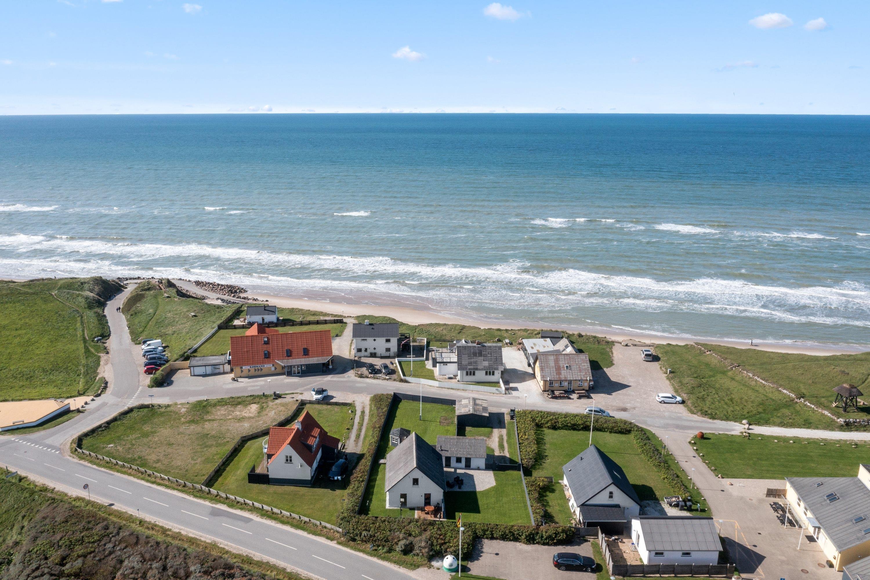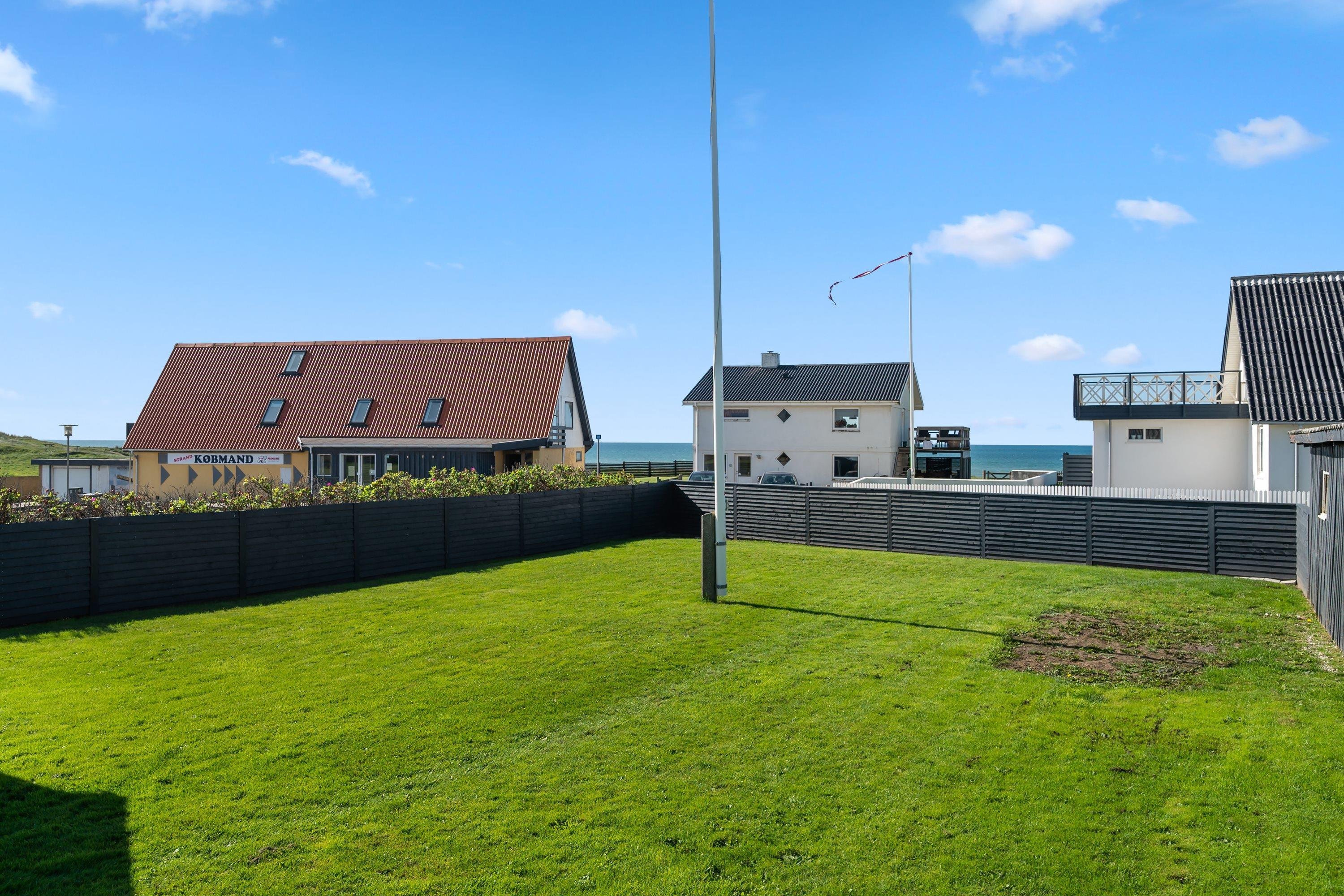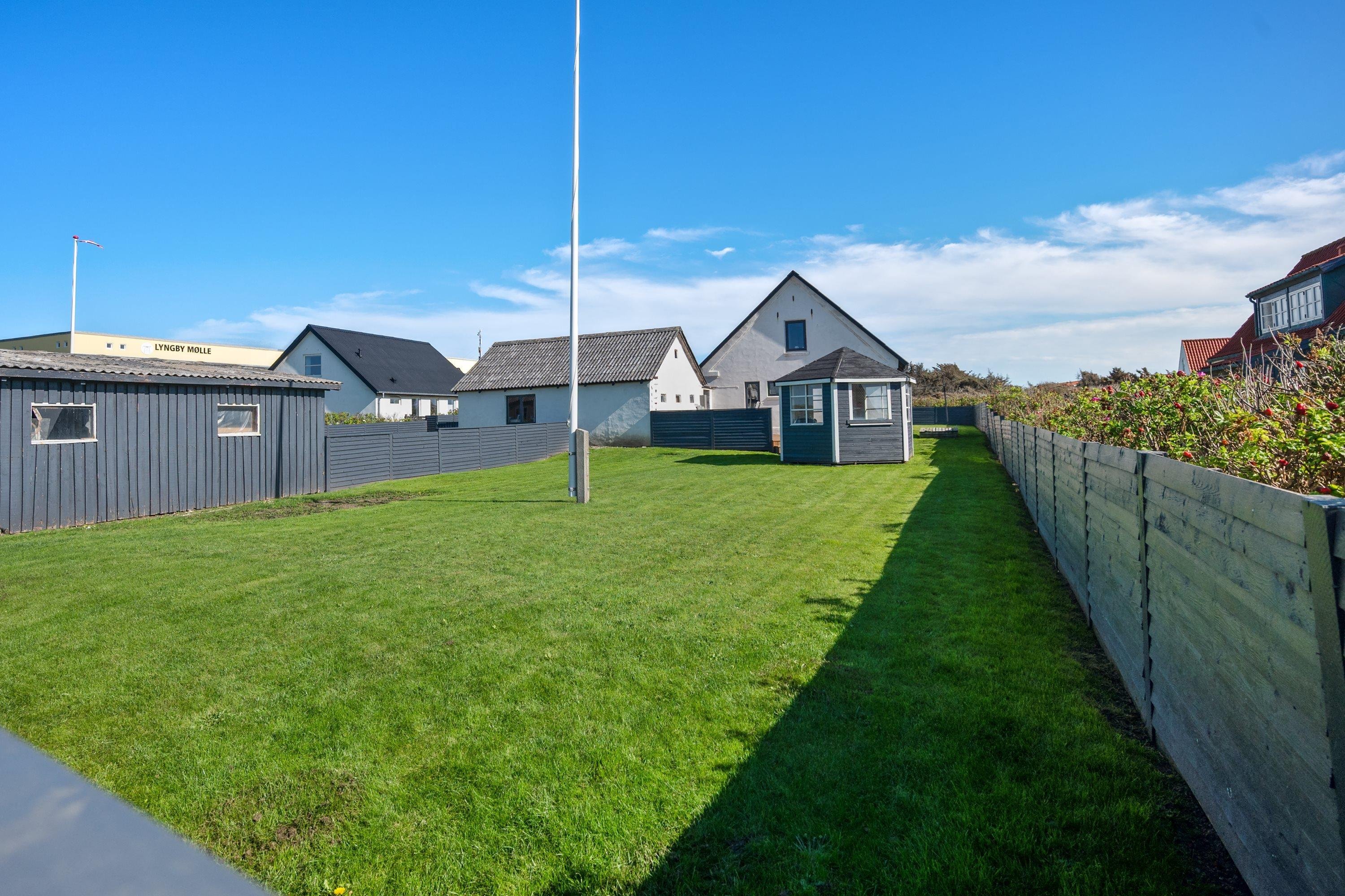 Selve grunden er på 906 kvadratmeter og har købmanden og grillbaren som genboer, og naturen som ramme med en klar udsigt til Vesterhavet. Her er skønne terrasser, og huset er omgivet af en dejlig plæne, der kan lukkes af, hvis man har sin firbenede ven med på ferie. Der er altså rig mulighed for at finde læ for vestenvinden, når den viser sine muskler. I Nørre Lyngby er der masser af rå natur og mange muligheder for gå- eller vandreture. Det populære Rubjerg Knude Fyr ligger i nærheden, og der er ti minutters kørsel til hhv. Løkken og Lønstrup, hvor der er rige muligheder for oplevelser af mangfoldig karakter.