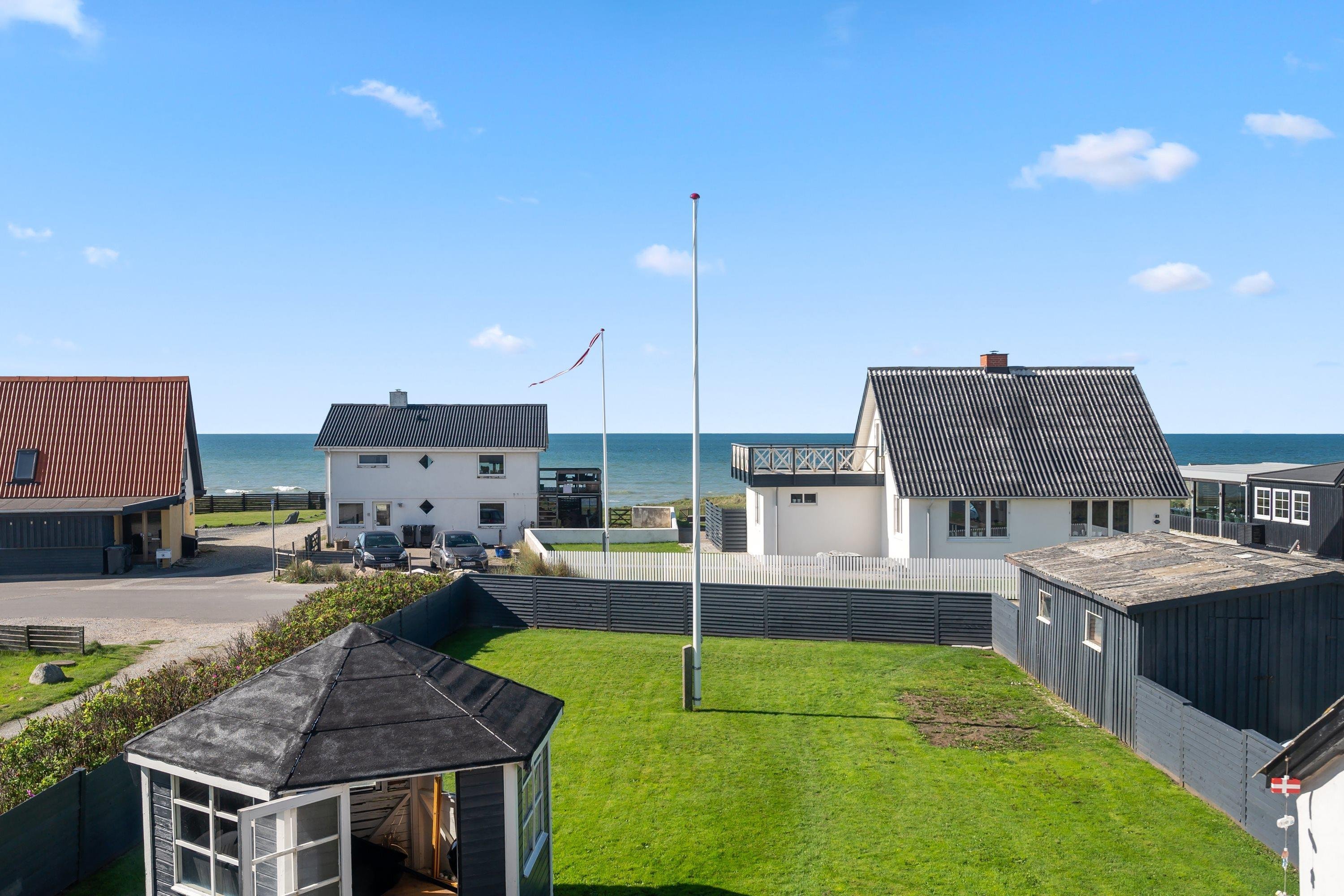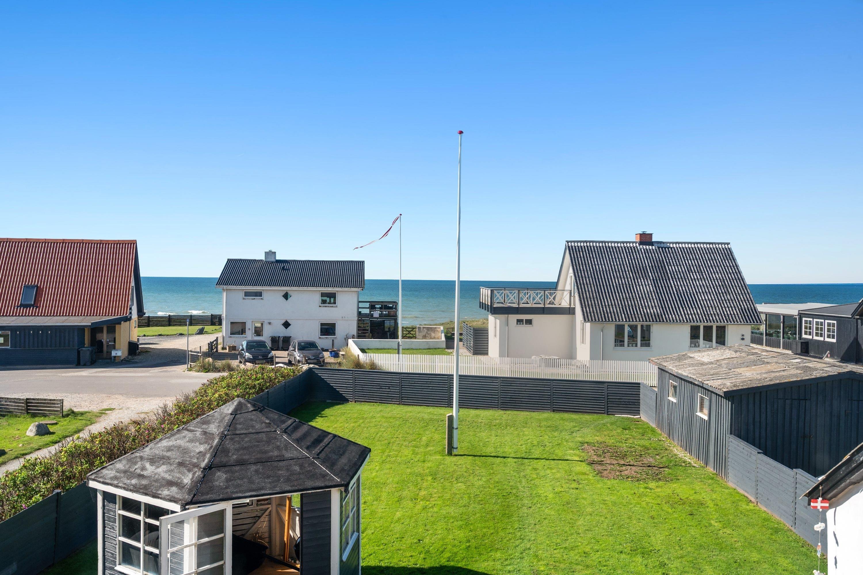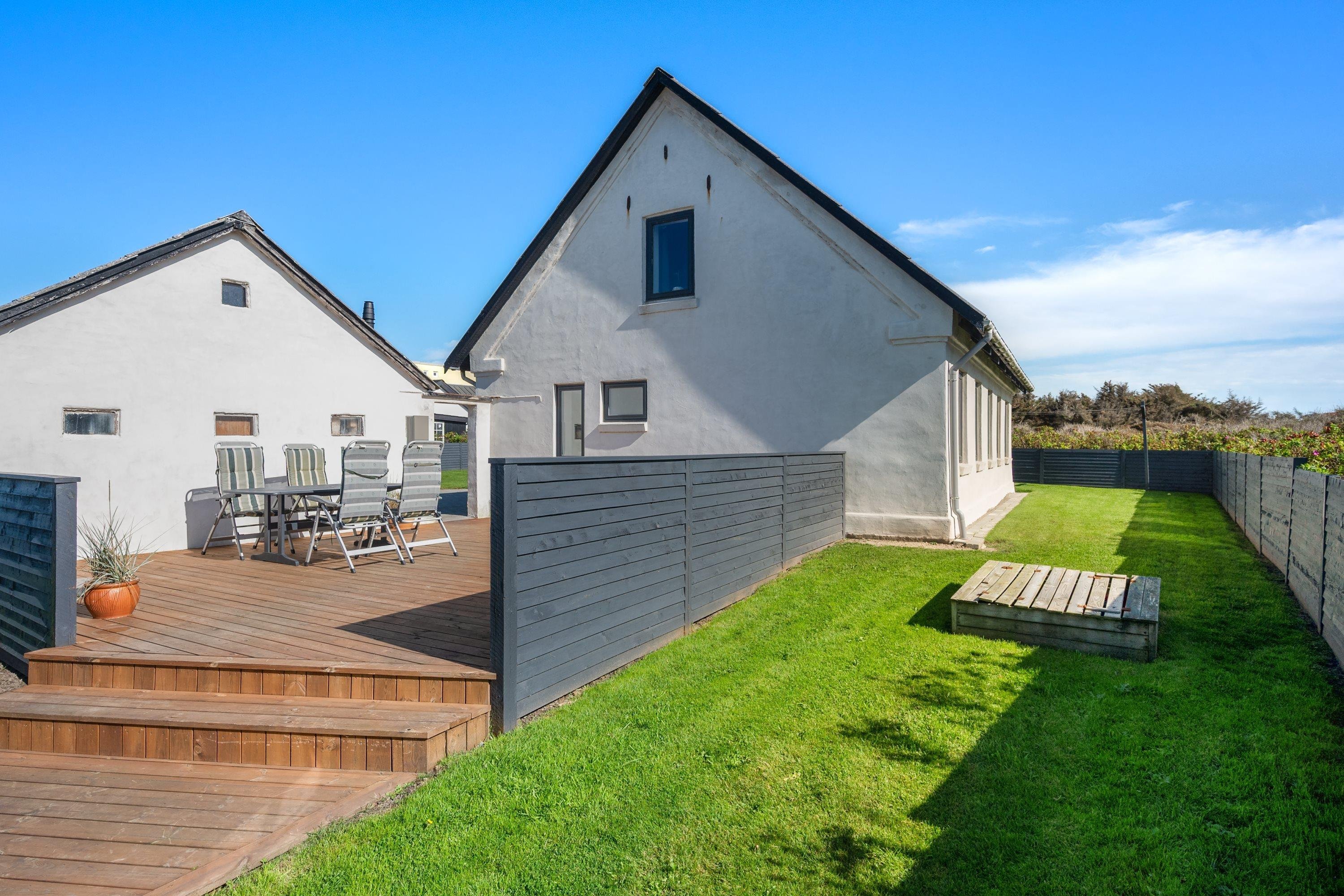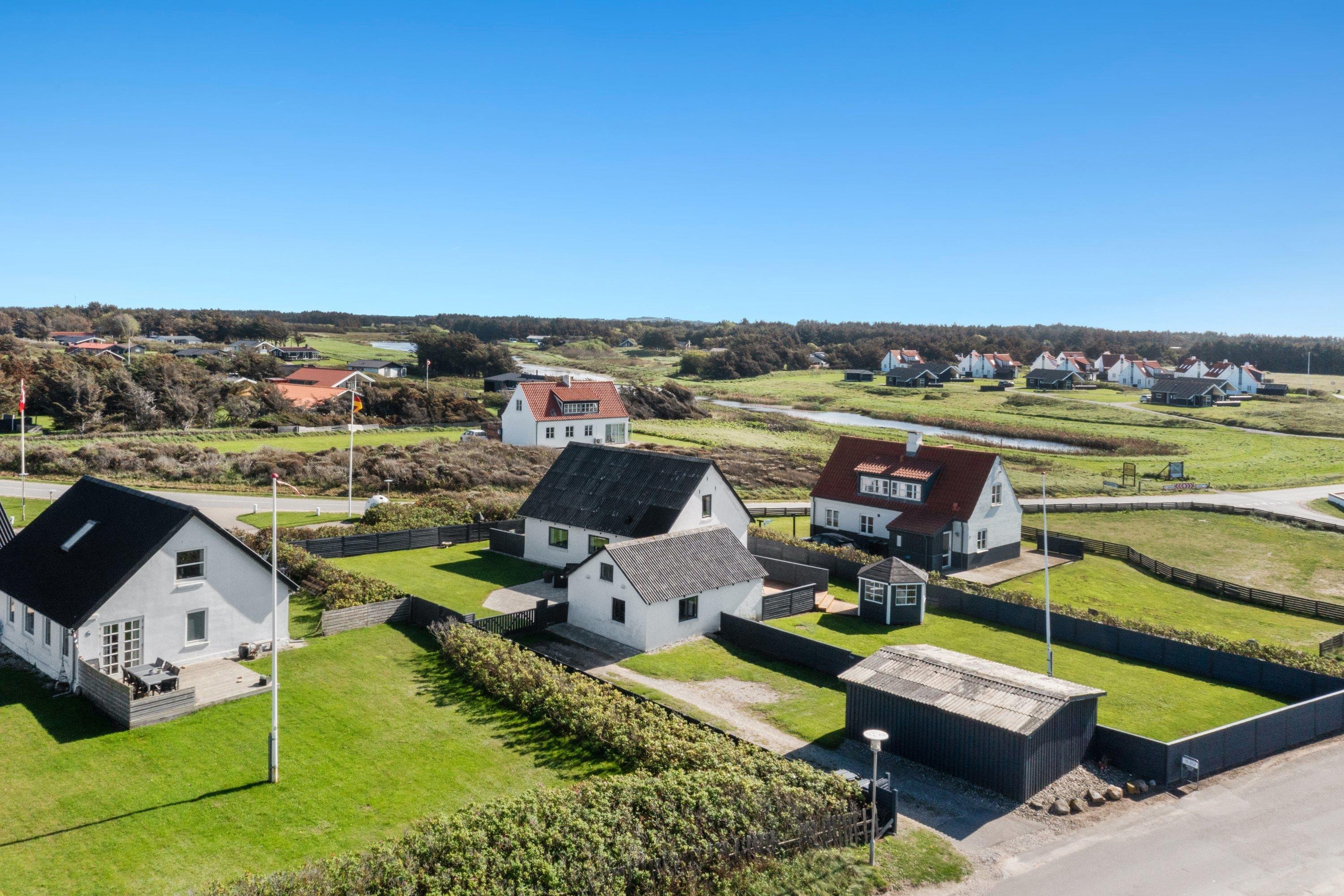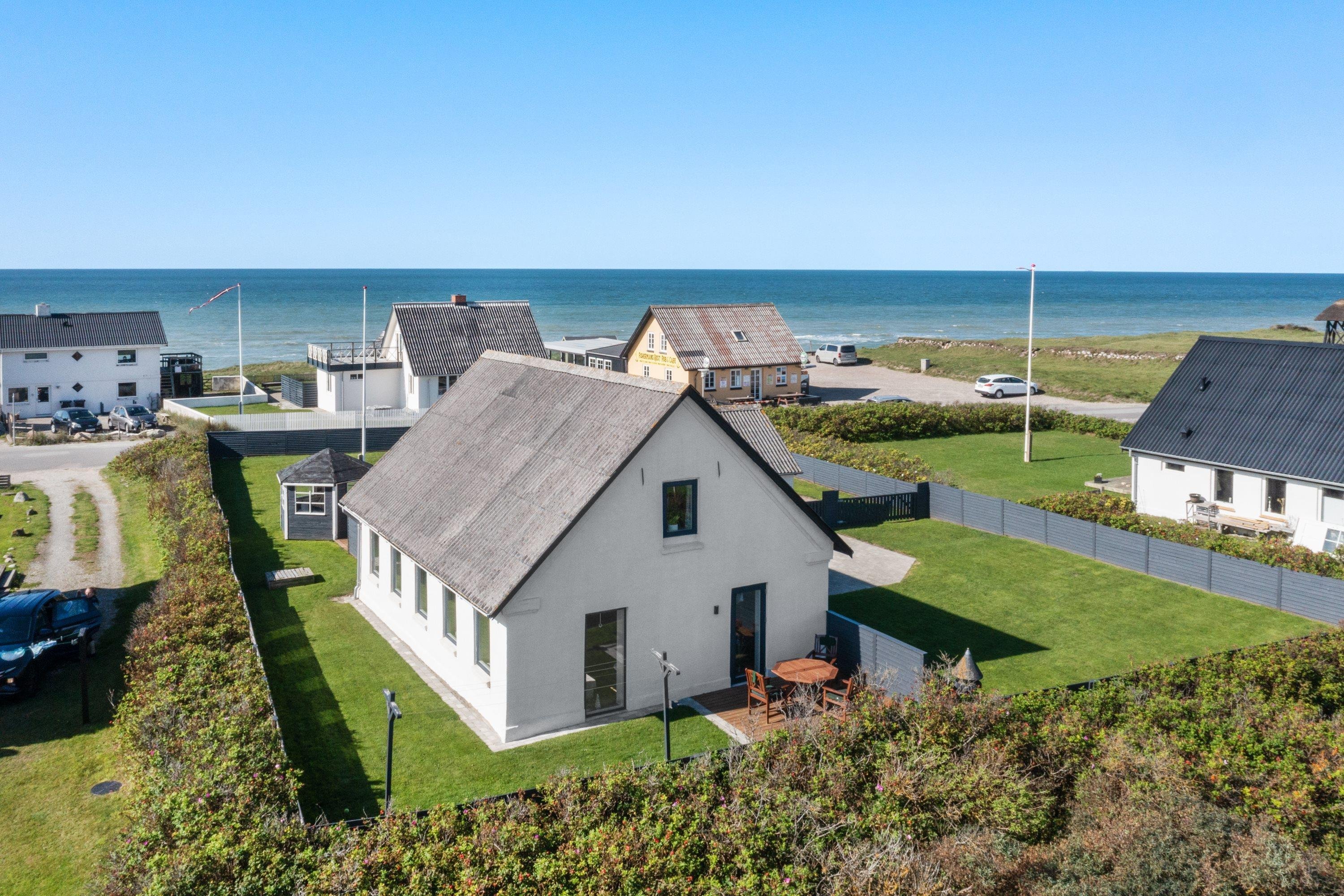 Selve grunden er på 906 kvadratmeter og har købmanden og grillbaren som genboer, og naturen som ramme med en klar udsigt til Vesterhavet. Her er skønne terrasser, og huset er omgivet af en dejlig plæne, der kan lukkes af, hvis man har sin firbenede ven med på ferie. Der er altså rig mulighed for at finde læ for vestenvinden, når den viser sine muskler. I Nørre Lyngby er der masser af rå natur og mange muligheder for gå- eller vandreture. Det populære Rubjerg Knude Fyr ligger i nærheden, og der er ti minutters kørsel til hhv. Løkken og Lønstrup, hvor der er rige muligheder for oplevelser af mangfoldig karakter.