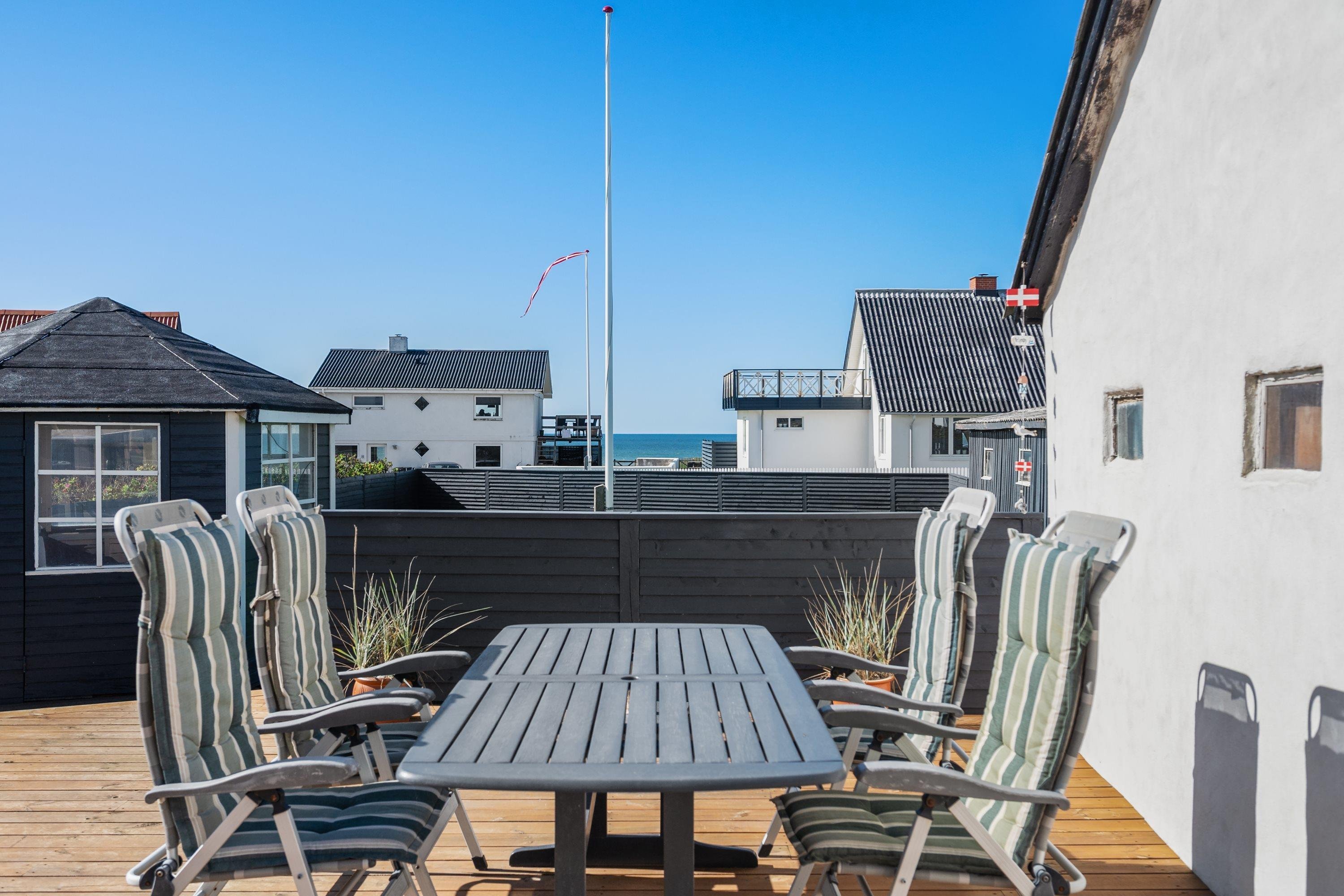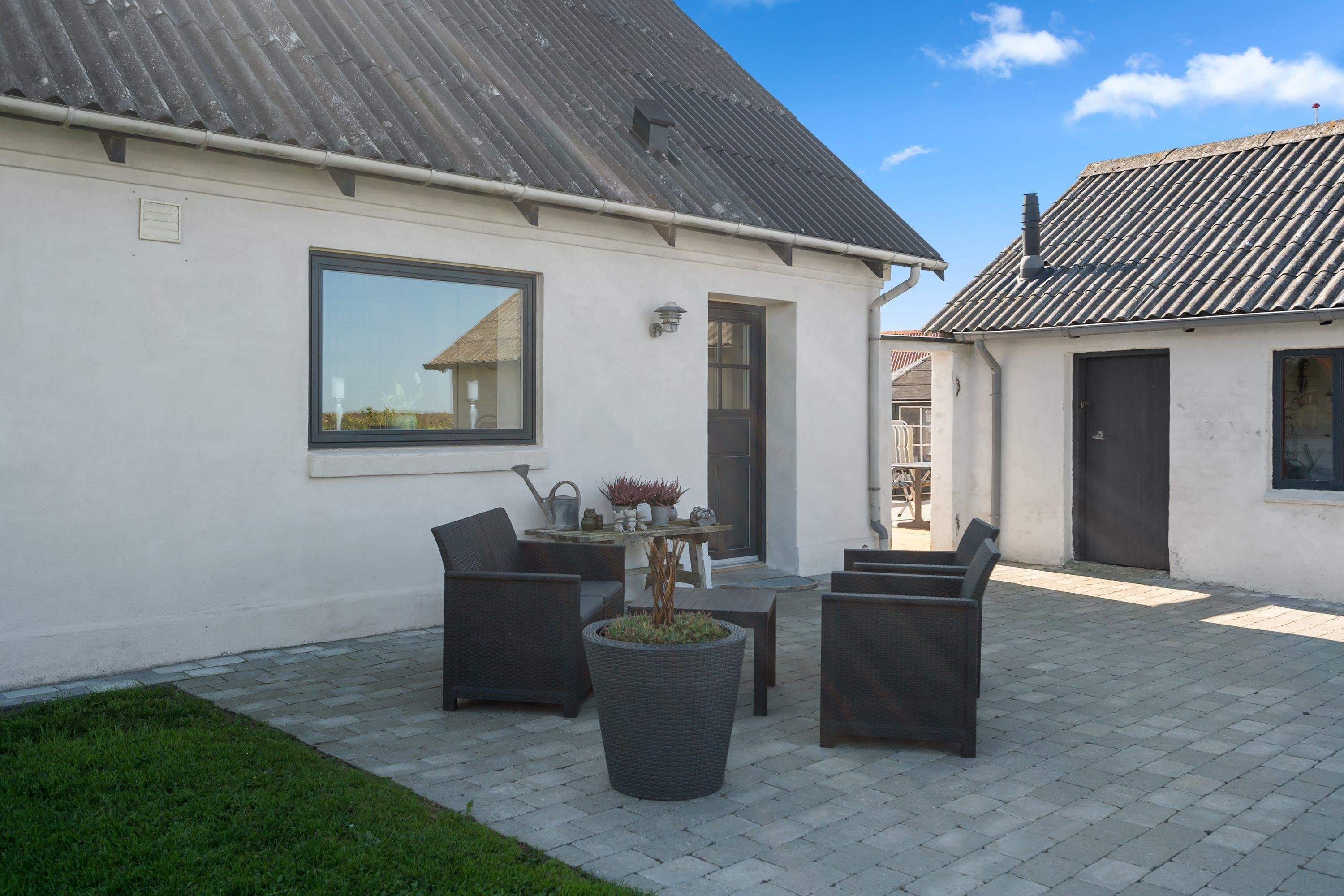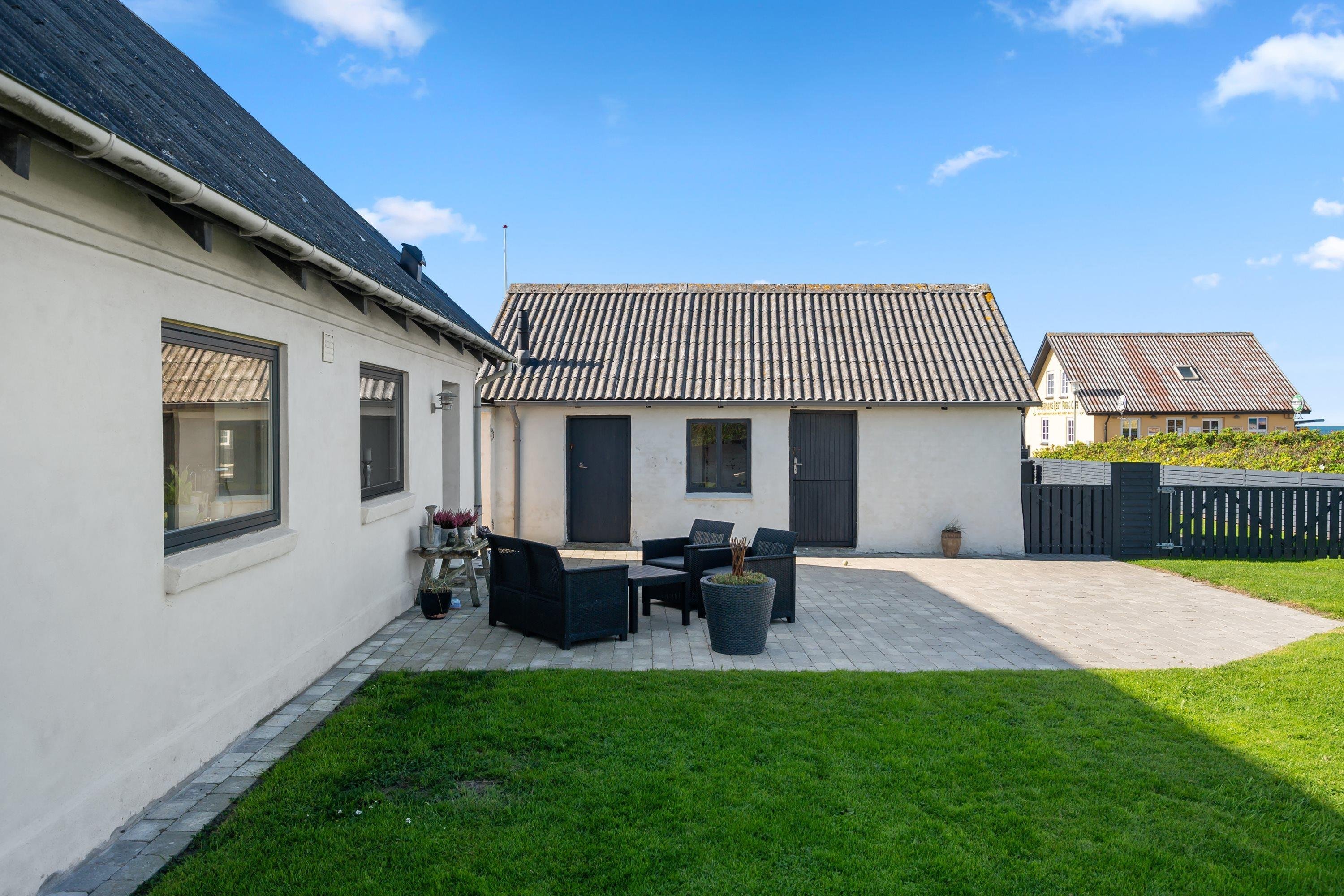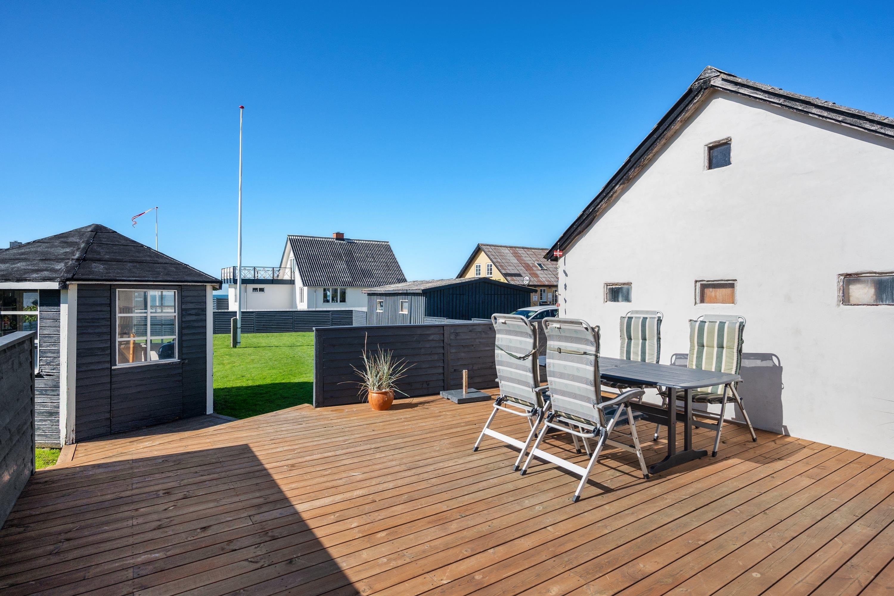Selve grunden er på 906 kvadratmeter og har købmanden og grillbaren som genboer, og naturen som ramme med en klar udsigt til Vesterhavet. Her er skønne terrasser, og huset er omgivet af en dejlig plæne, der kan lukkes af, hvis man har sin firbenede ven med på ferie. Der er altså rig mulighed for at finde læ for vestenvinden, når den viser sine muskler. I Nørre Lyngby er der masser af rå natur og mange muligheder for gå- eller vandreture. Det populære Rubjerg Knude Fyr ligger i nærheden, og der er ti minutters kørsel til hhv. Løkken og Lønstrup, hvor der er rige muligheder for oplevelser af mangfoldig karakter.