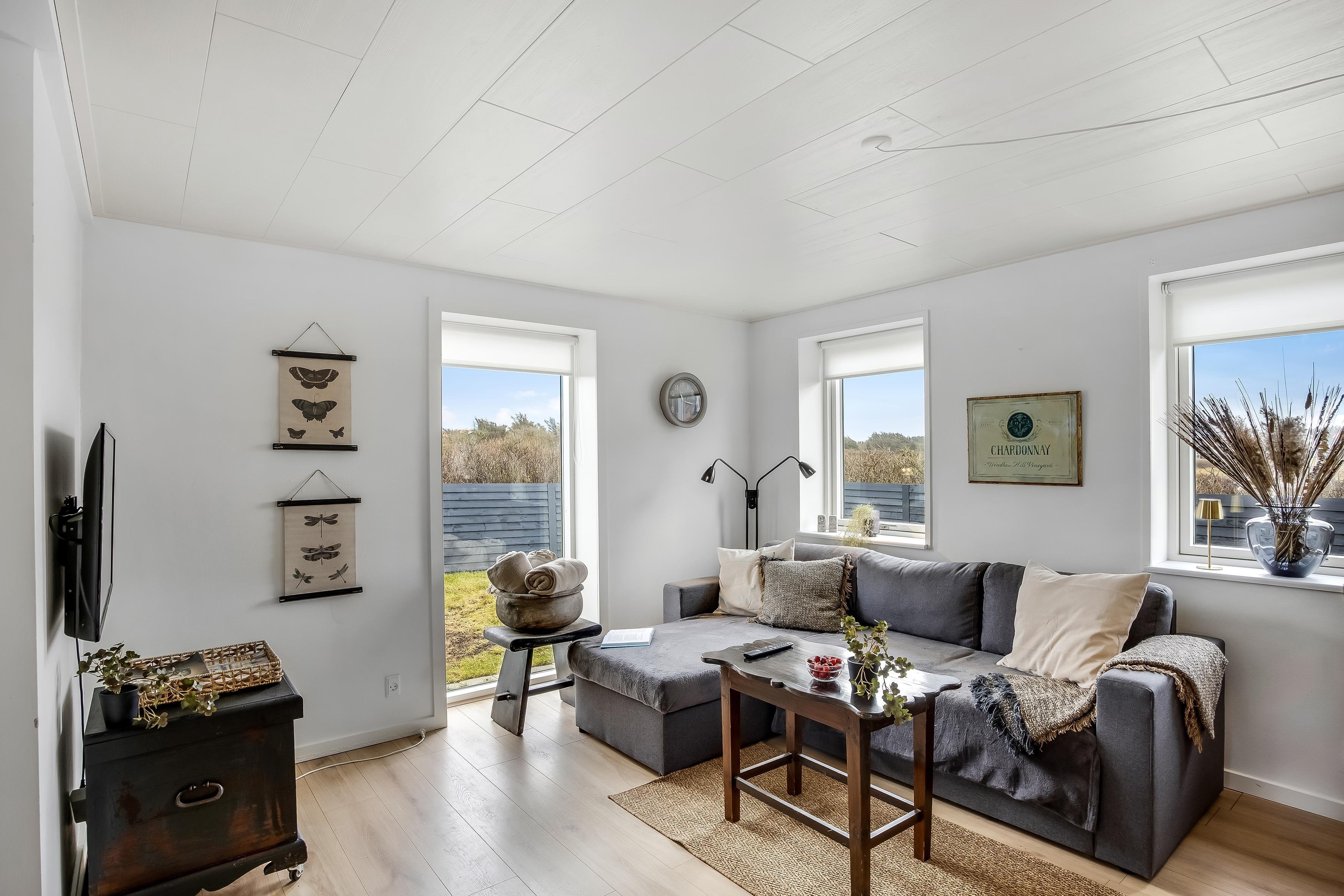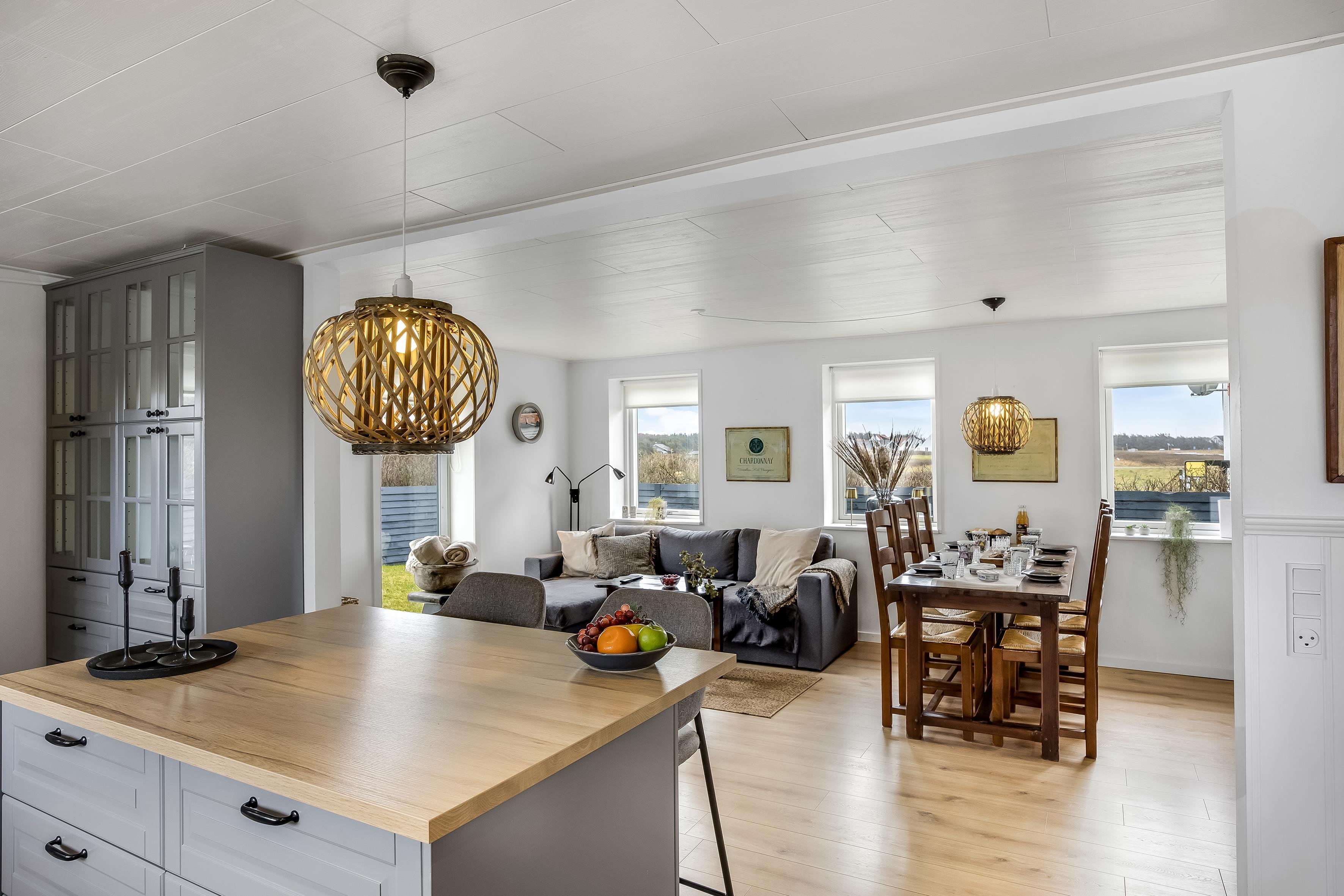 Ja, når vi siger “utroligt kystnært”, så mener vi det! Ud fra billederne af dette dejlige sommerhus kan du se, at kystnært betyder næsten lige på kanten af klitterne ud til det smukke Vesterhav. Her midt i Nørre Lyngby finder du Lyngby Møllevej 4, der ligger langs den kystsikrede del af stranden, men samtidig midt i byen og med den imponerende, rå natur lige om hjørnet. Her er masser af muligheder for storslåede naturoplevelser, mens der blot er ti minutters kørsel til de populære feriebyer Løkken og Lønstrup. Er vejret ikke til at opholde sig ude, er sommerhuset lige så dejligt indendørs.