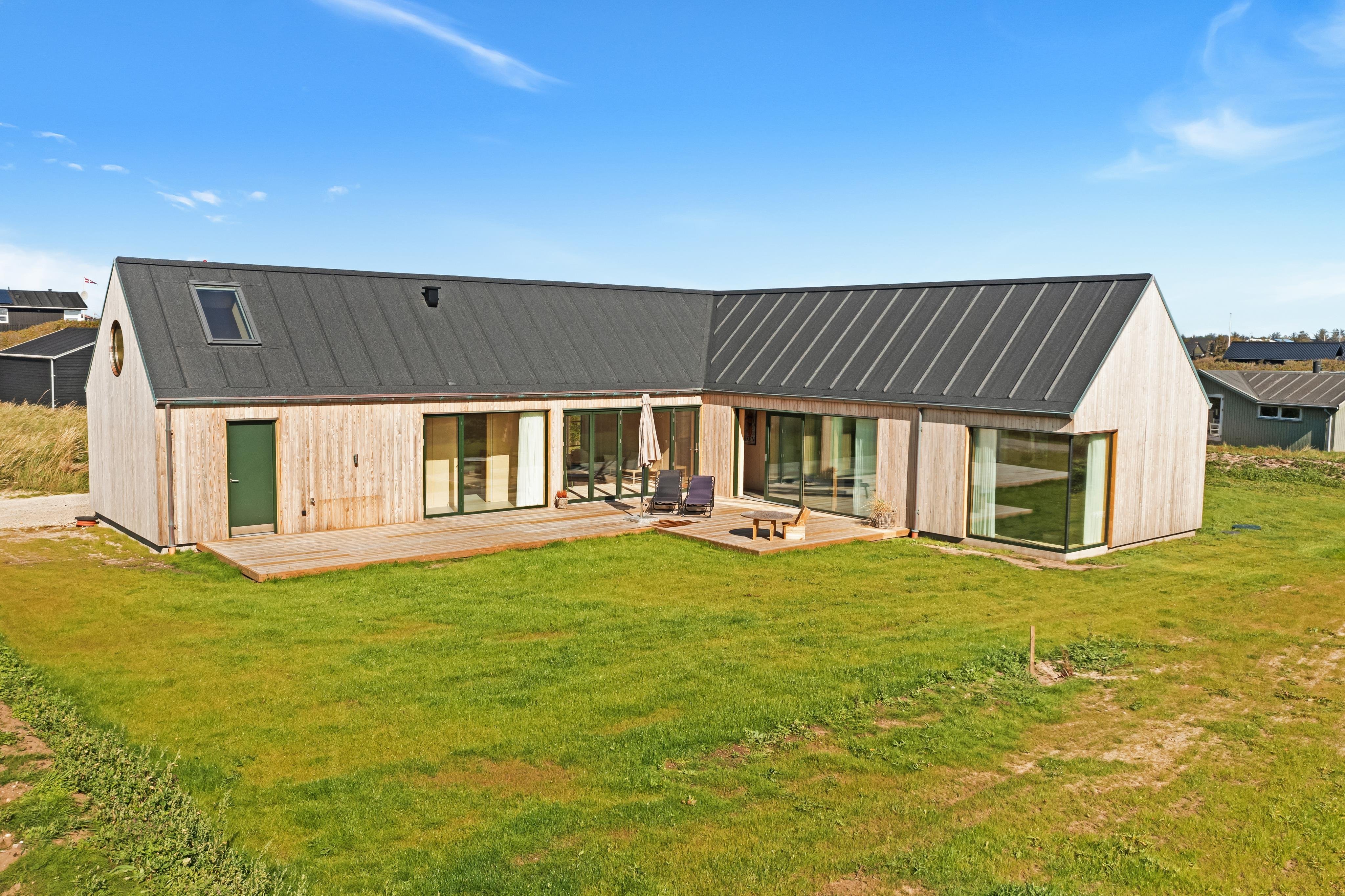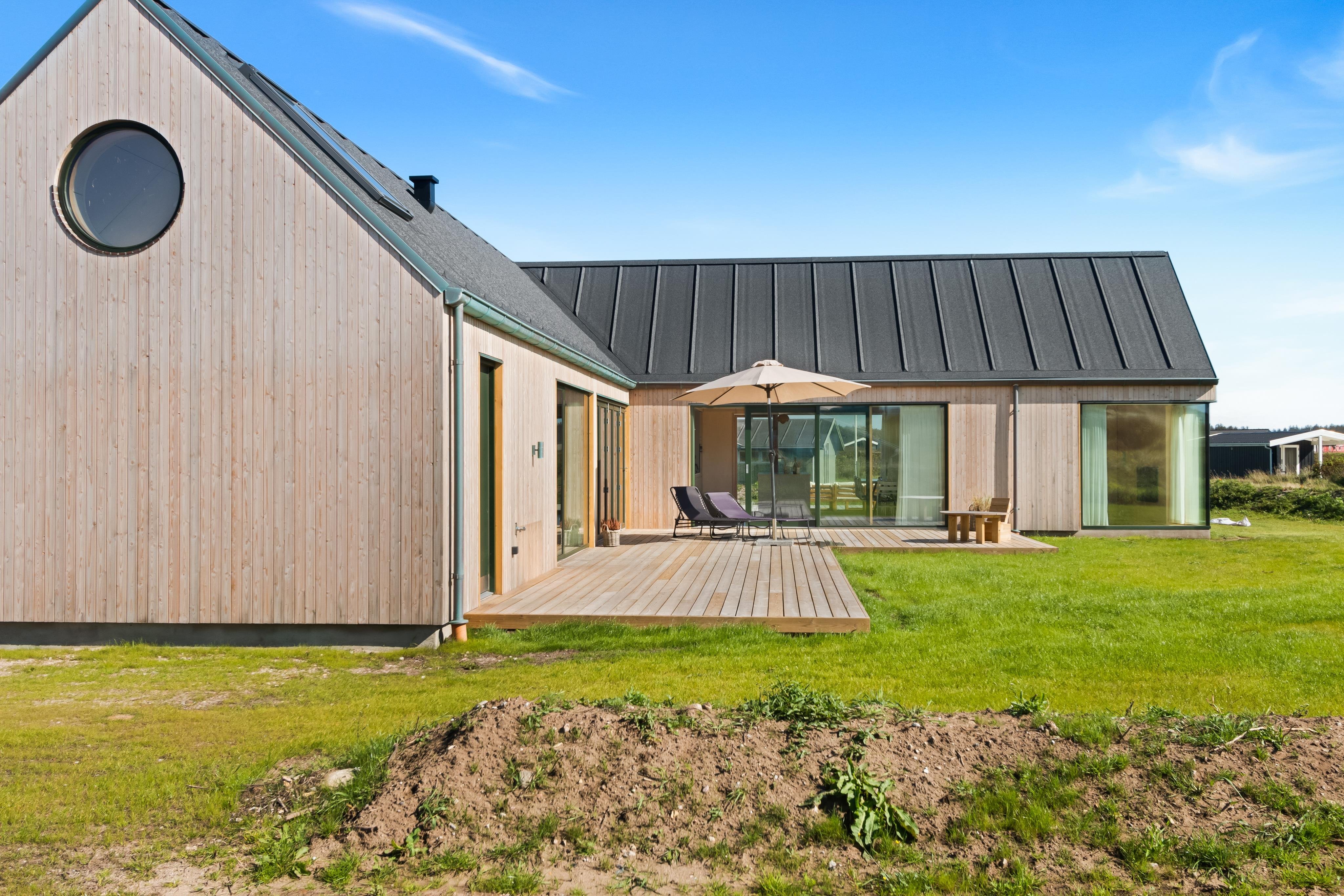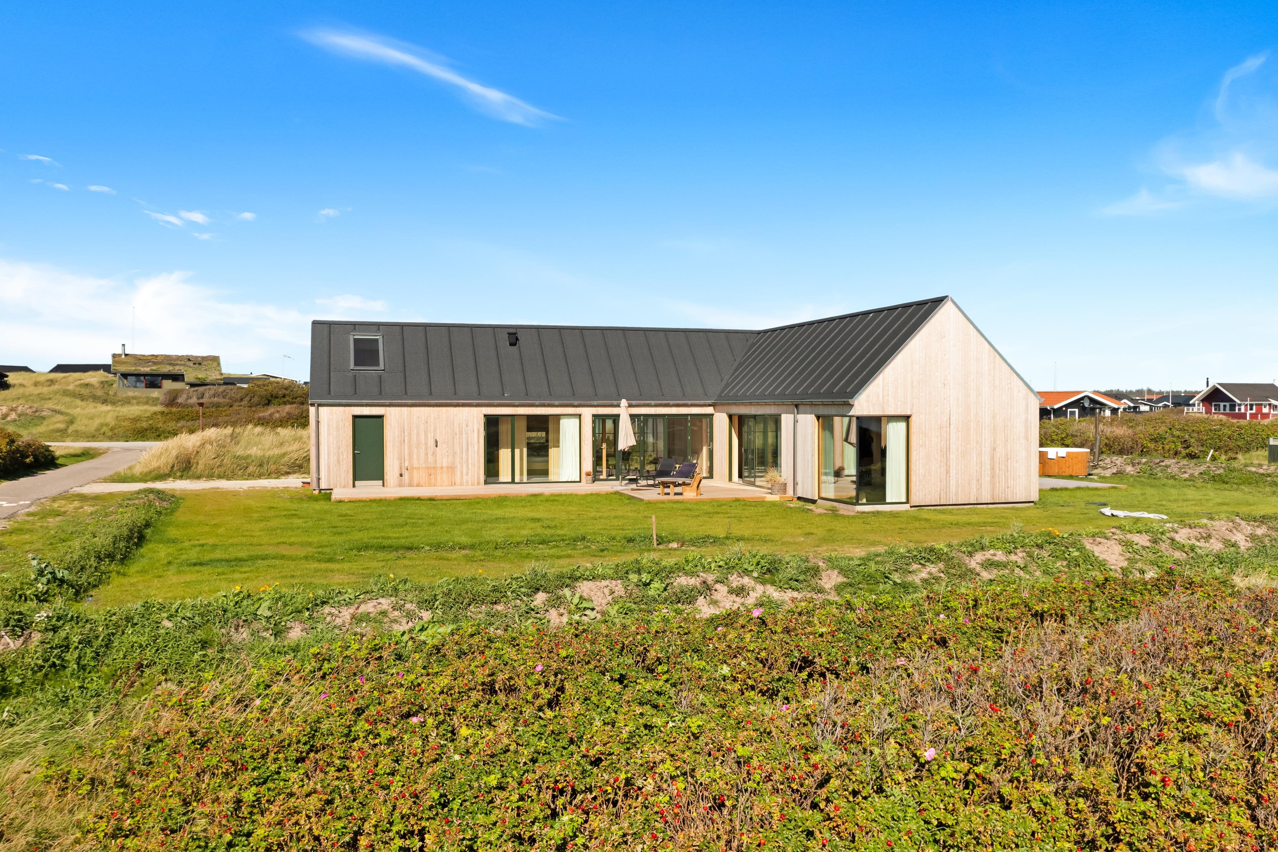 Magnus Christensens Vej spreder sig ud over et stort og lækkert sommerhusområde. Og denne skønne feriebolig på nummer 97 er ganske ekstraordinær! Ejerne af huset har valgt at bygge i en speciel og anderledes stil, som man sjældent oplever i sommerhuse. Der er brugt eksklusive materialer og stil gennem hele huset, og stuen har man valgt at lave i forskudt plan, så man kan sidde og se ud over området med hovedet i samme højde som naturen udenfor vinduerne. Huset er stort, nyt og meget kystnært, og byder på såvel indendørs som udendørs opholdsrum, så du altid kan finde et spot til sommerhus-hyggen.