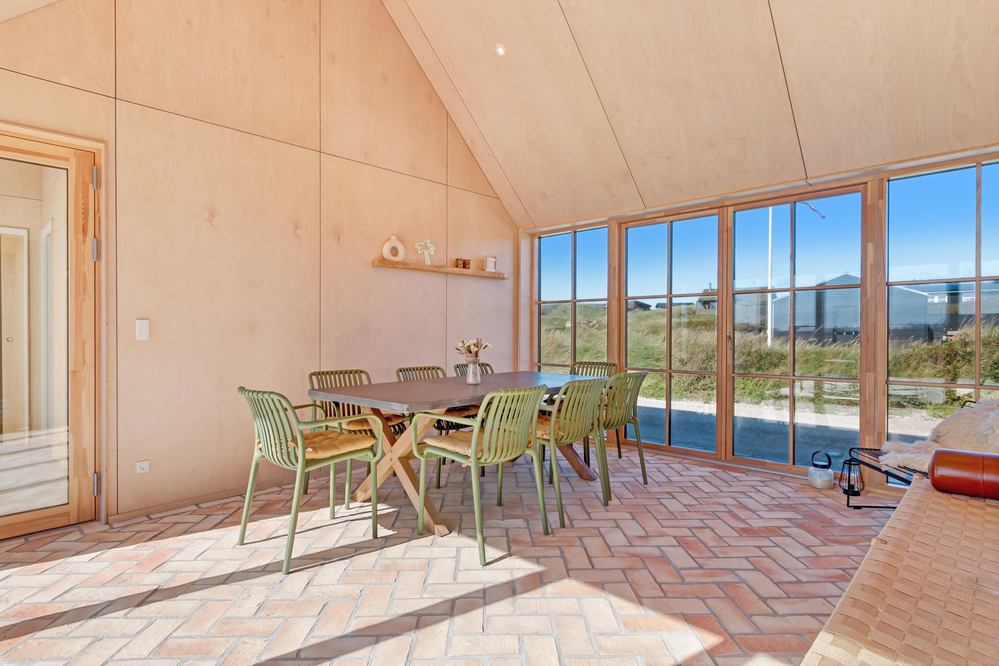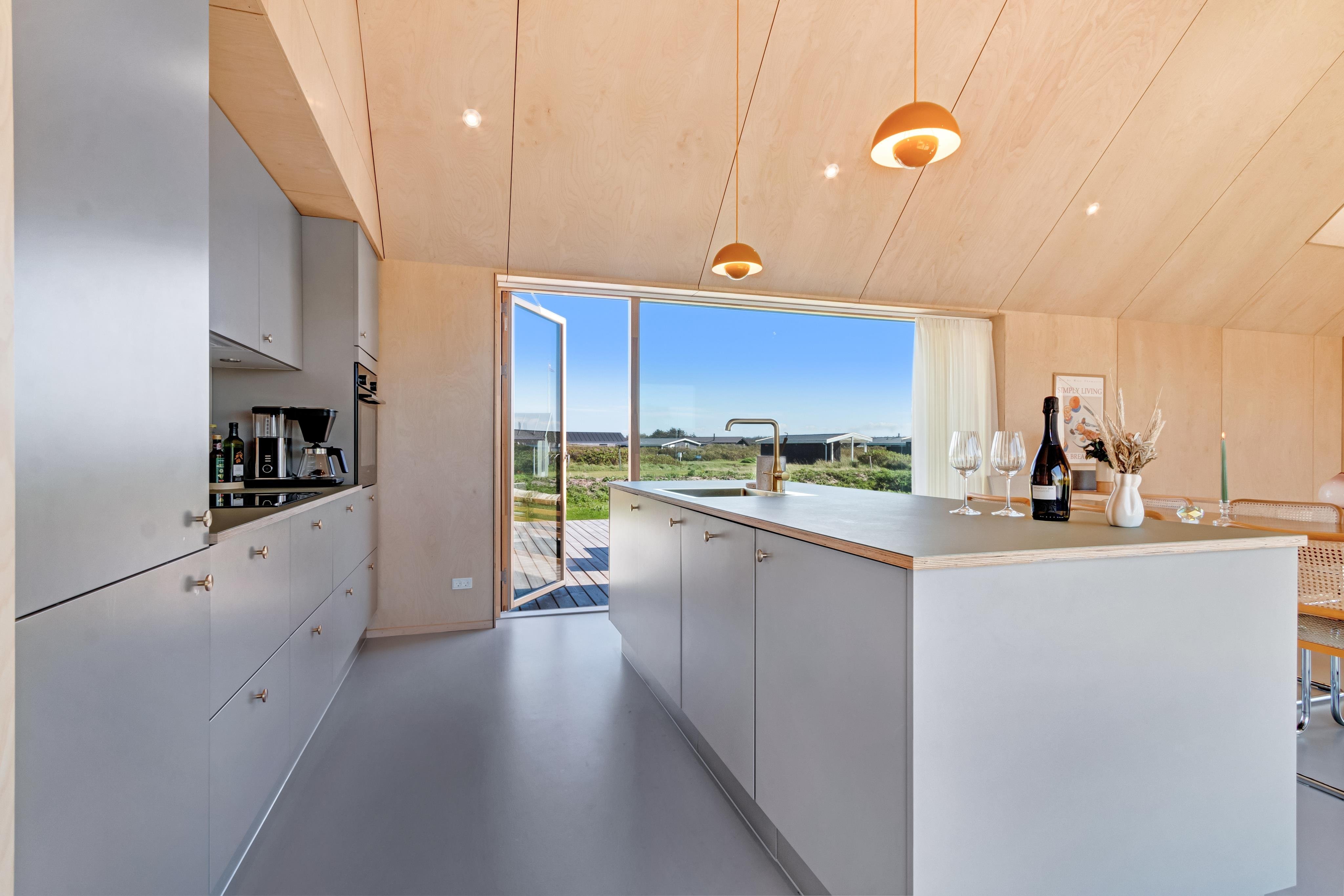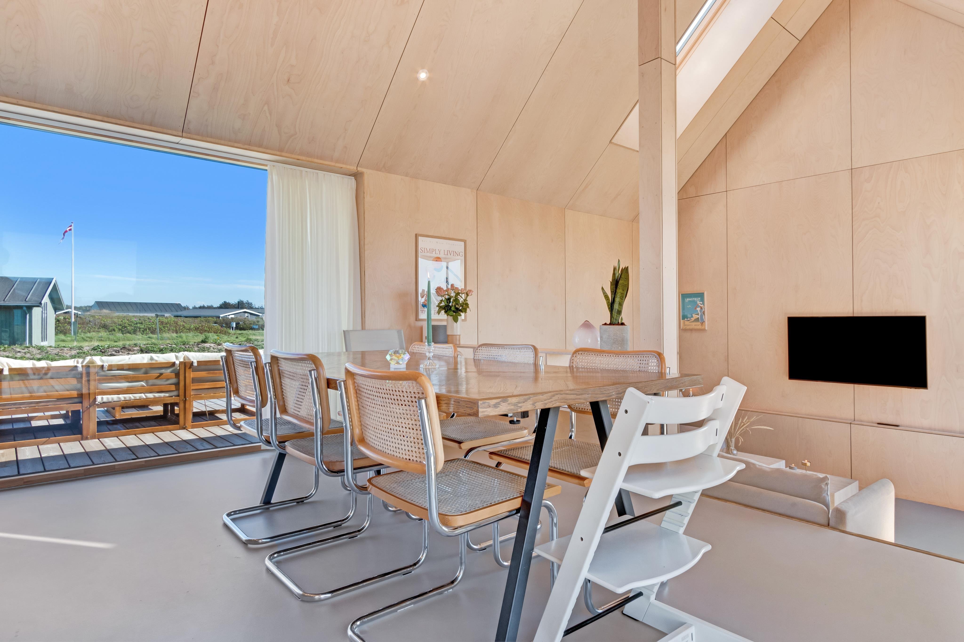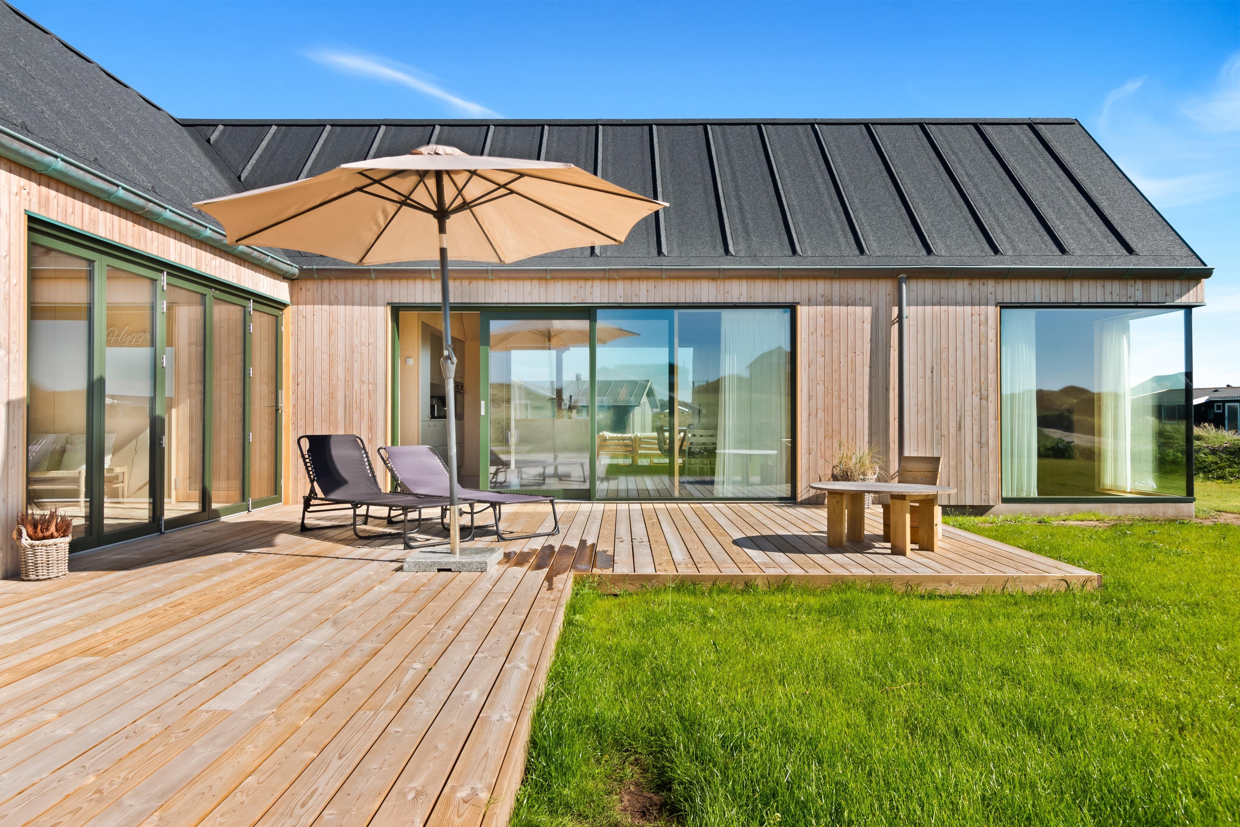 Magnus Christensens Vej spreder sig ud over et stort og lækkert sommerhusområde. Og denne skønne feriebolig på nummer 97 er ganske ekstraordinær! Ejerne af huset har valgt at bygge i en speciel og anderledes stil, som man sjældent oplever i sommerhuse. Der er brugt eksklusive materialer og stil gennem hele huset, og stuen har man valgt at lave i forskudt plan, så man kan sidde og se ud over området med hovedet i samme højde som naturen udenfor vinduerne. Huset er stort, nyt og meget kystnært, og byder på såvel indendørs som udendørs opholdsrum, så du altid kan finde et spot til sommerhus-hyggen.