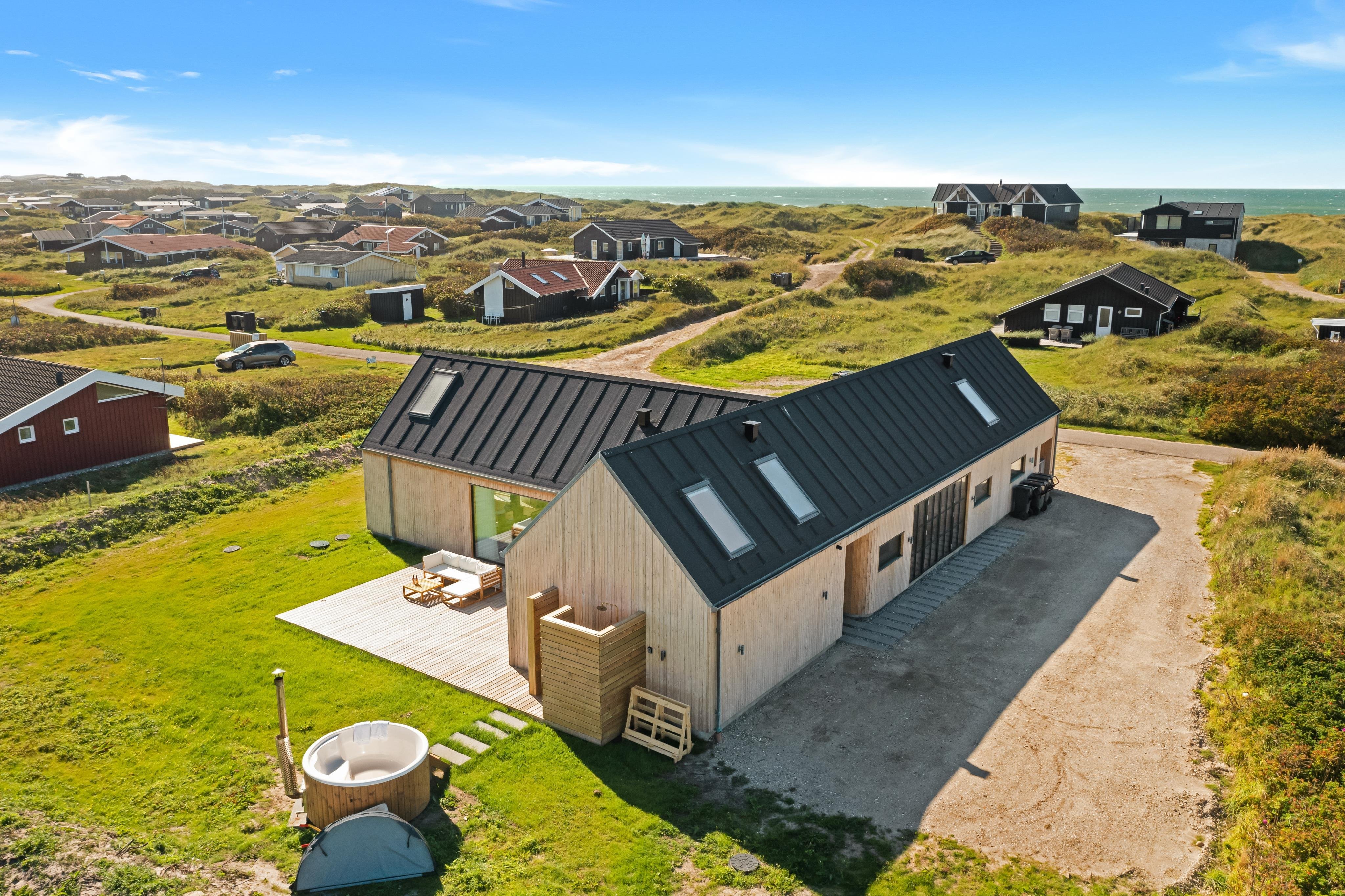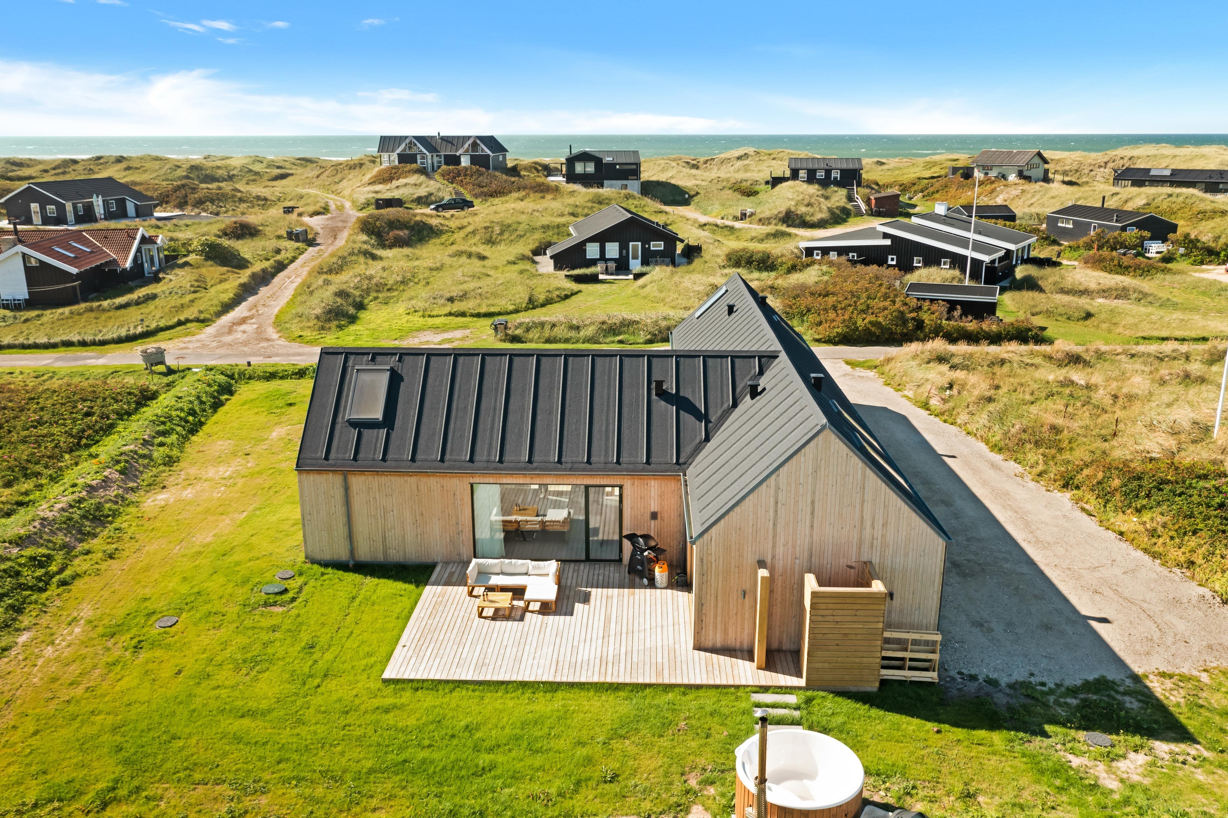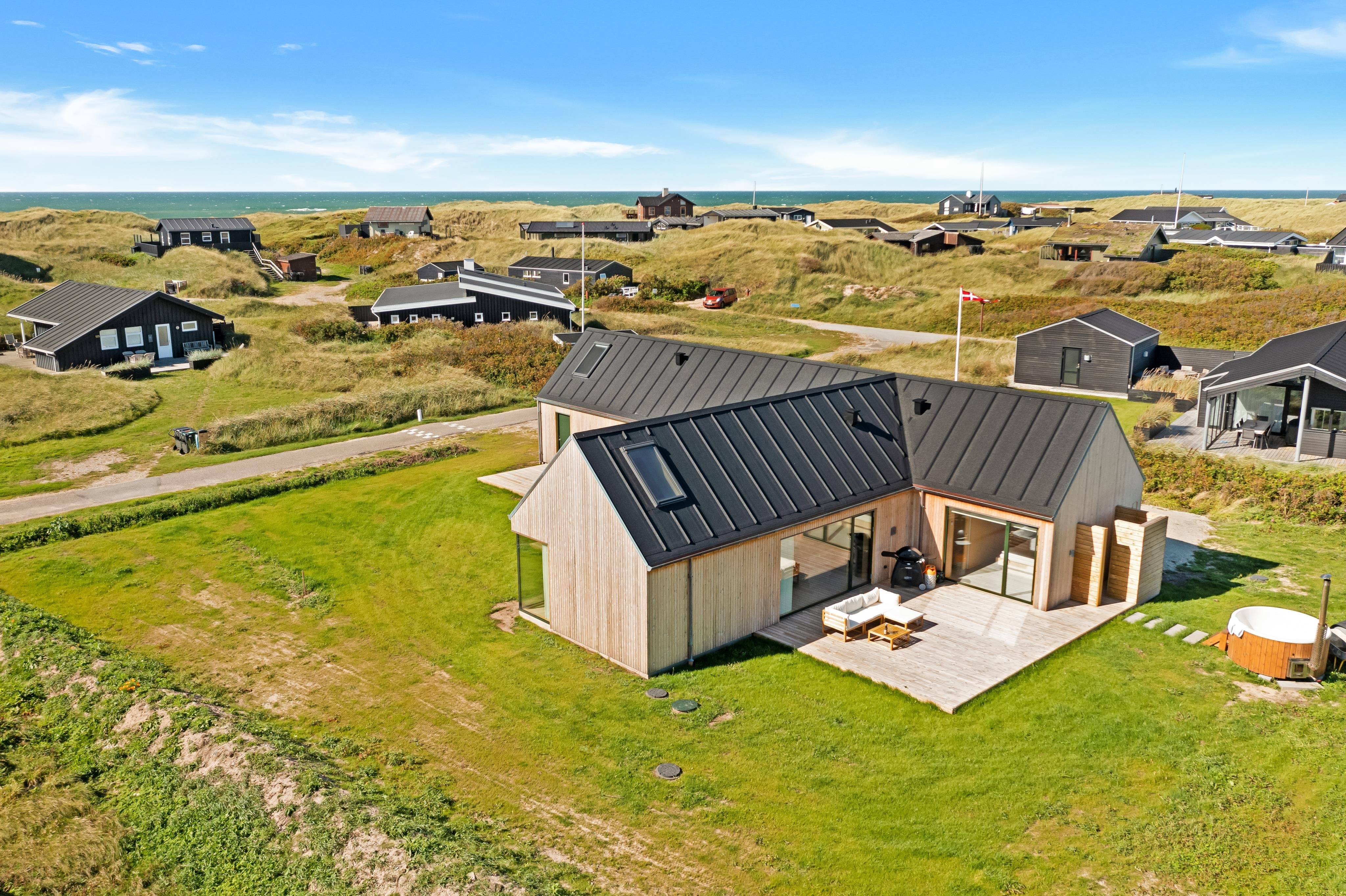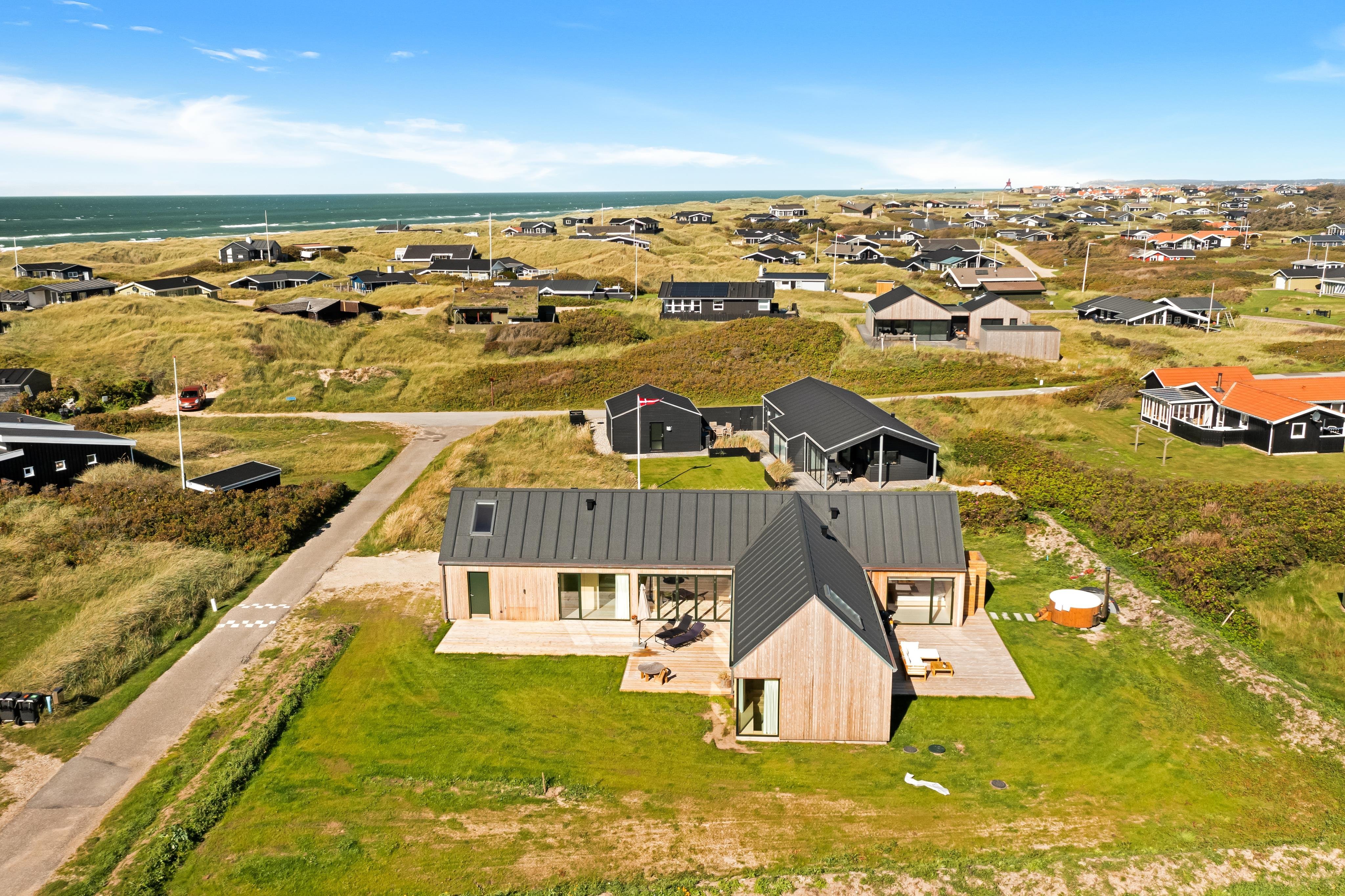 Sommerhuset er placeret på en godt 1200 kvadratmeter stor naturgrund med kun 250 meter til stranden. Området er ligeledes tæt på Løkken centrum, indkøb, transport, shopping og restauranter samt masser af aktivitetsmuligheder såvel inde som ude. Der er et skønt udendørsspa, udebruser, store terrasser, lækker grill og dejlige havemøbler. Der er stisystemer, som fører ned til stranden, der kun er 250 meter væk.