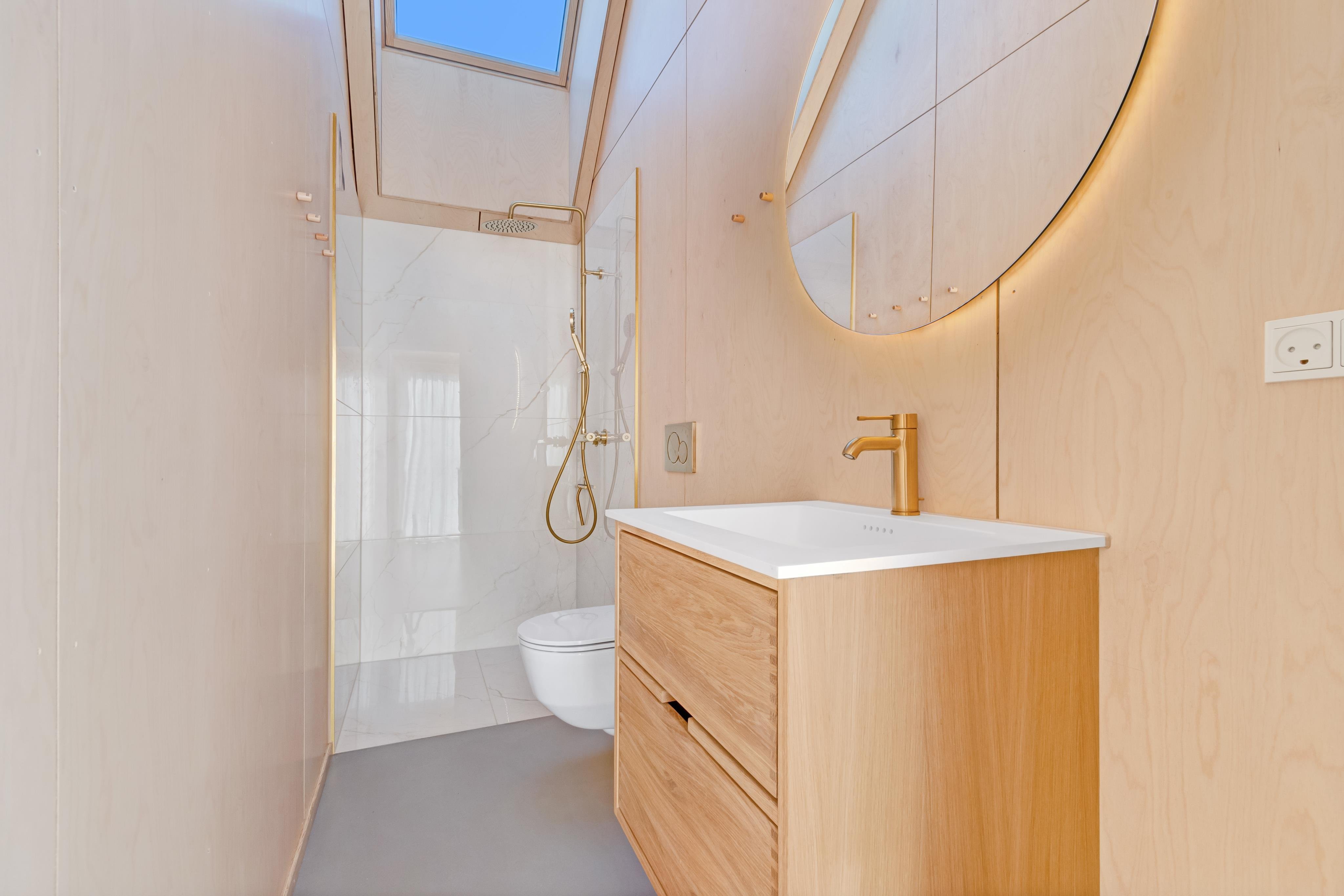 Huset på Magnus Christensens Vej nummer 97 er såvel lækkert, som minimalistisk og hyggeligt. Huset emmer af kvalitet og masser af rum til hygge og afslapning. Her er plads til 8 personer fordelt på 4 soverum. Der er to utroligt lækre badeværelser, to skønne terrasser, udespa, hems og alt, hvad hjertet begærer indenfor moderne faciliteter. Byggeåret er 2023, og alt fremstår derfor funklende nyt. Soverummene ligger for hver deres ende af husets 133 kvadratmeter, og de er afskærmede fra køkken/alrum/stue, så nogle kan gå til ro, mens andre bliver oppe.
