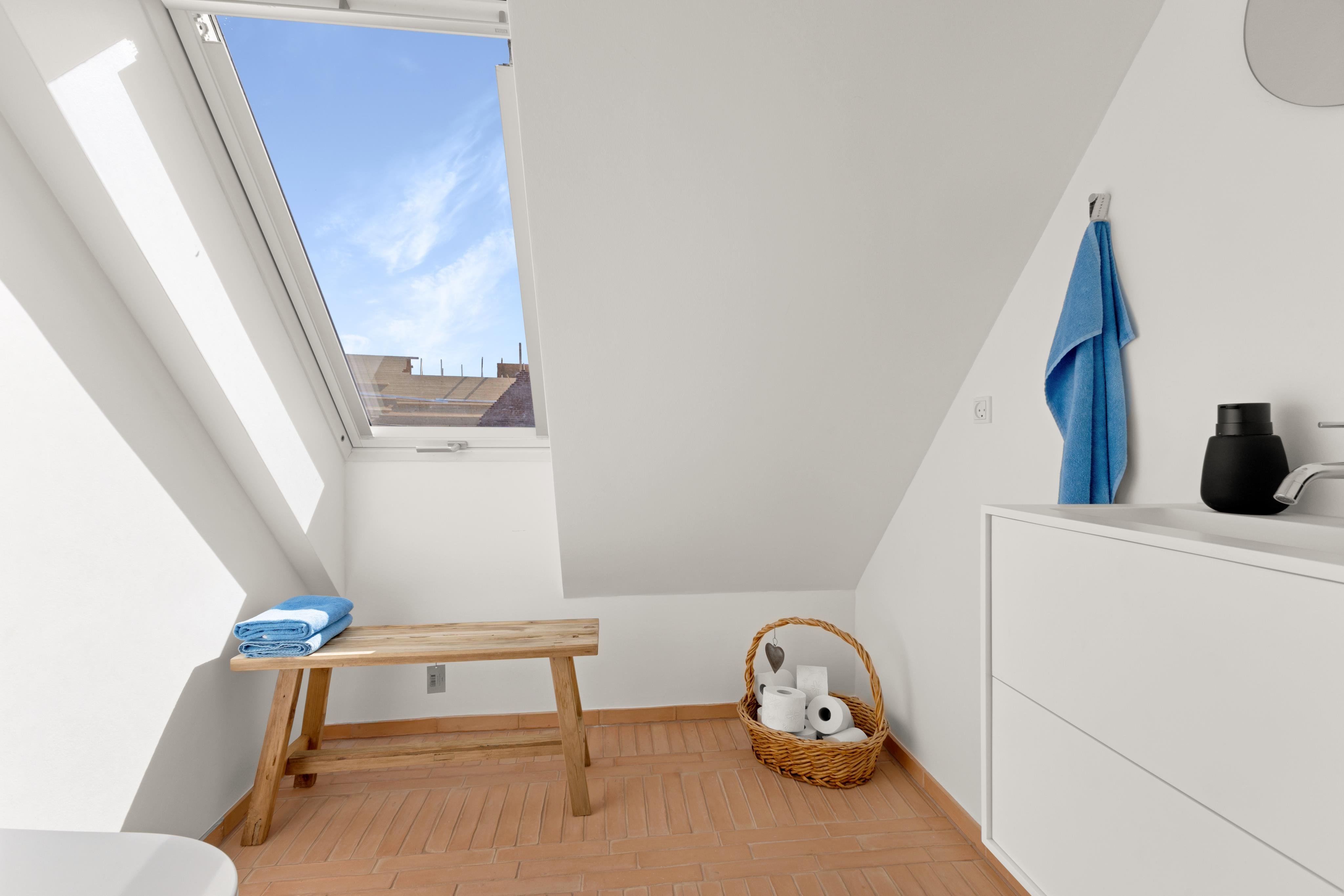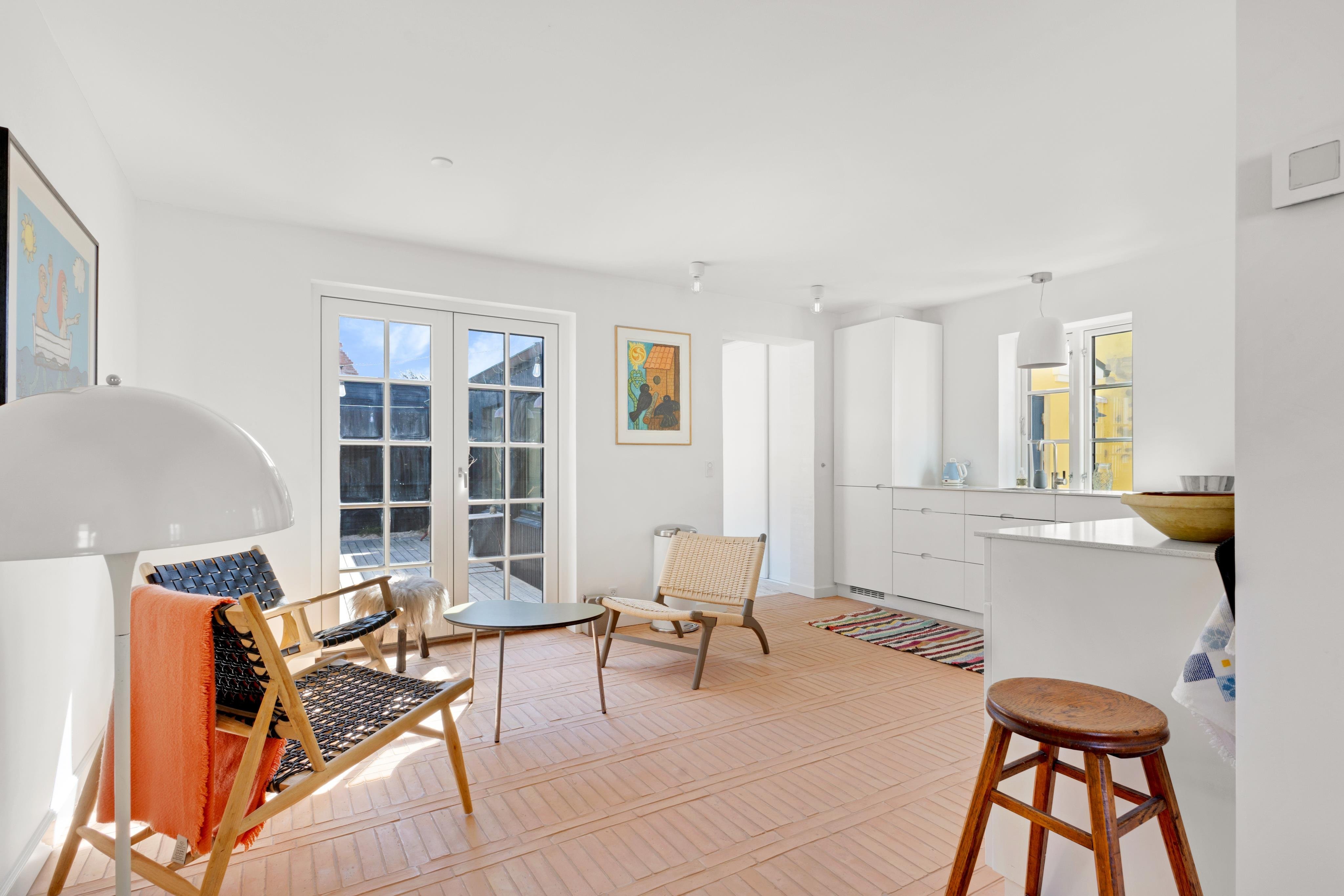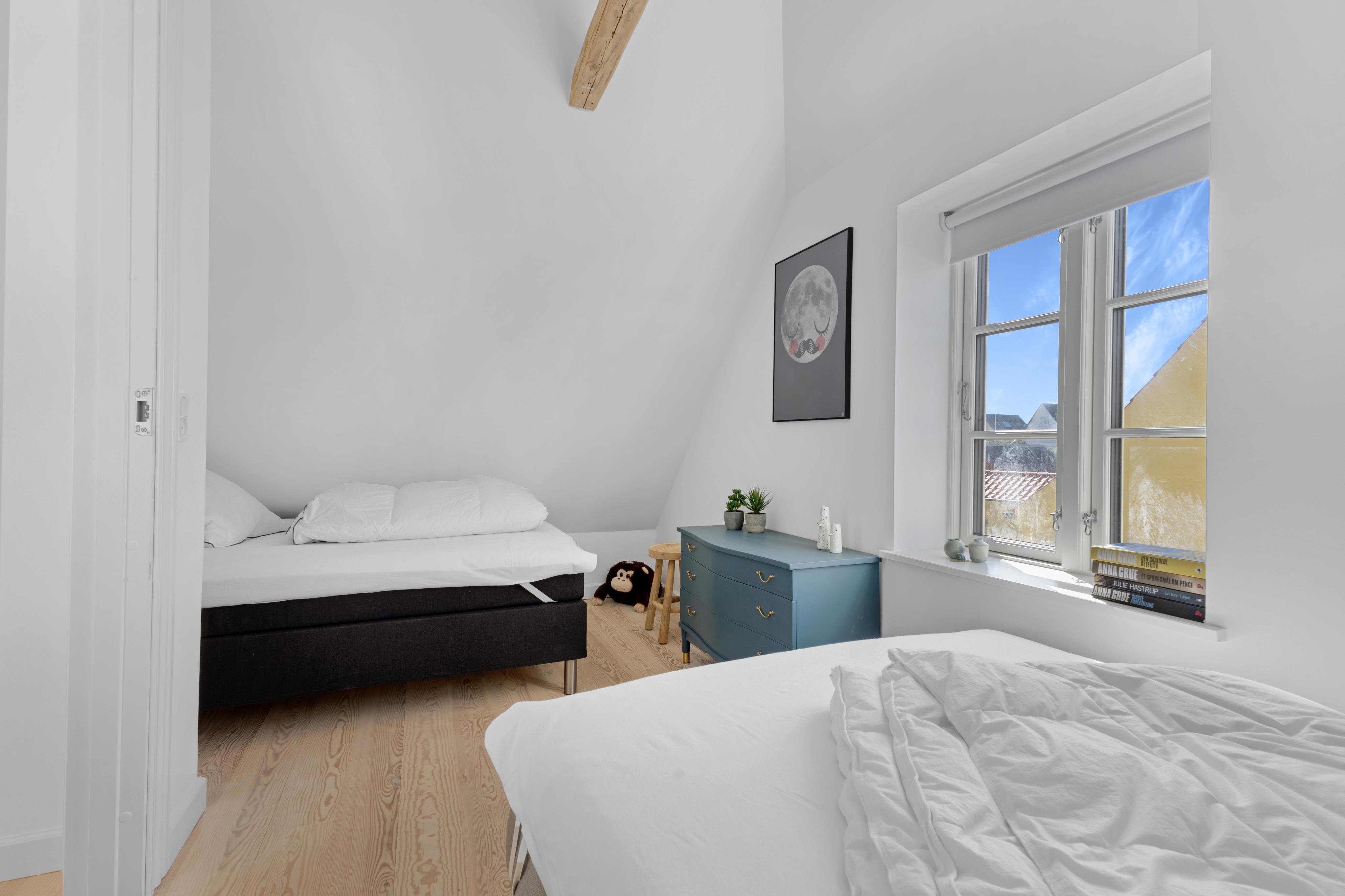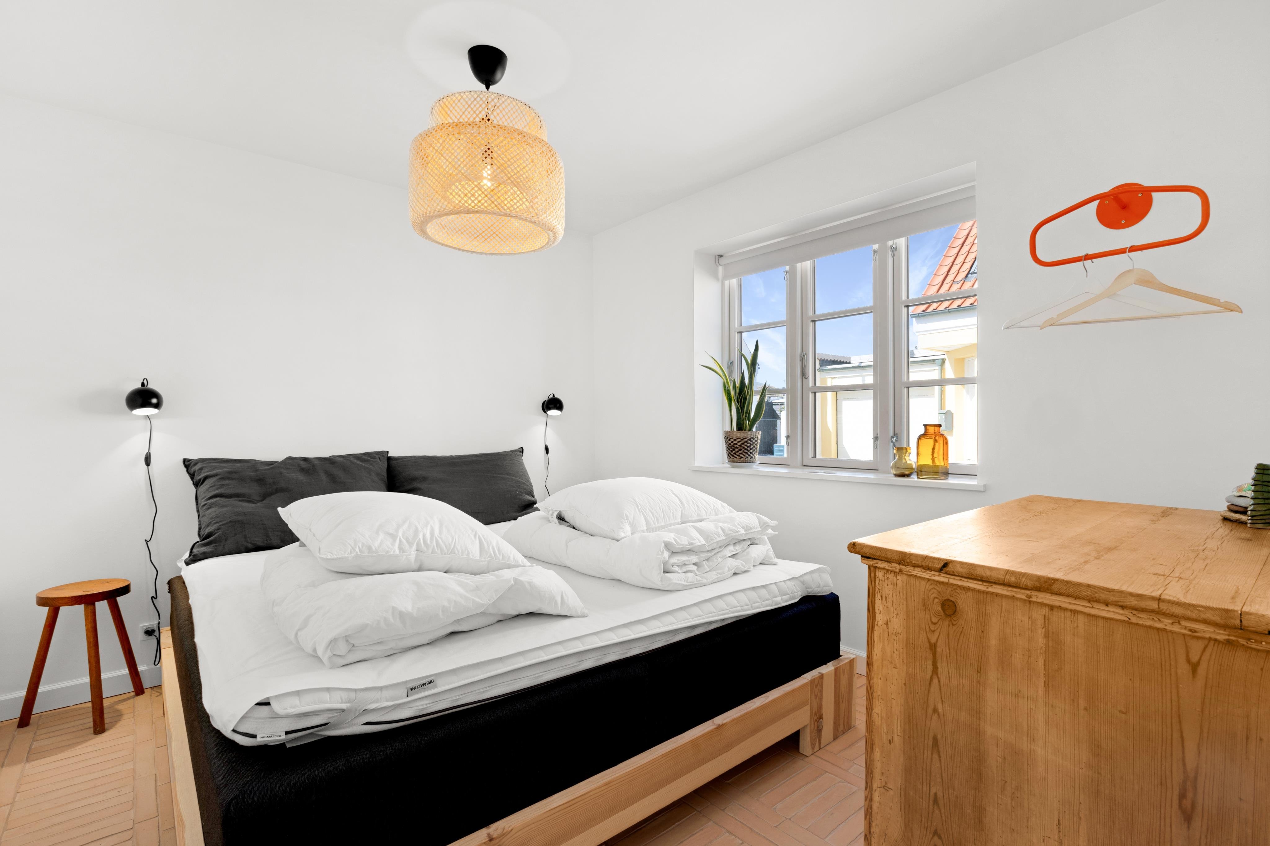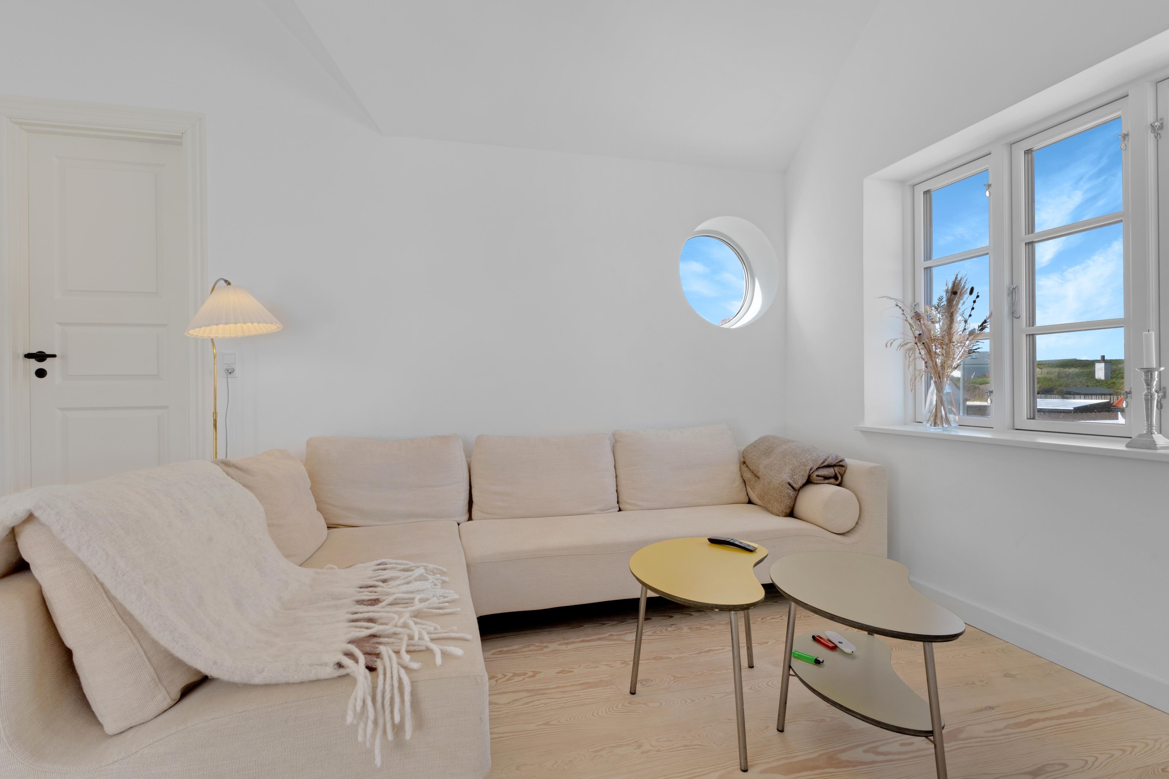 Foruden at ligge 100 meter fra stranden og midt i centrum, finder du indendørs først den super charmerende trappeopgang og entre. Dernæst et rigtig lækkert og hyggeligt opholdsrum med lyst og åbent køkken, alrum og stue. Selve indretningen af hele huset indbyder til både fælles og individuelle aktiviteter - fra hygge- og fjernsynshjørner til det indbydende loungeområde på 1. sal. Der er ligeledes et dejligt udendørs loungeområde i form af den solbeskinnede terrasse, som vender bort fra selve Nordre Strandvej og som er dejlig privat. I sommerhuset er der plads til 6+1 personer.
