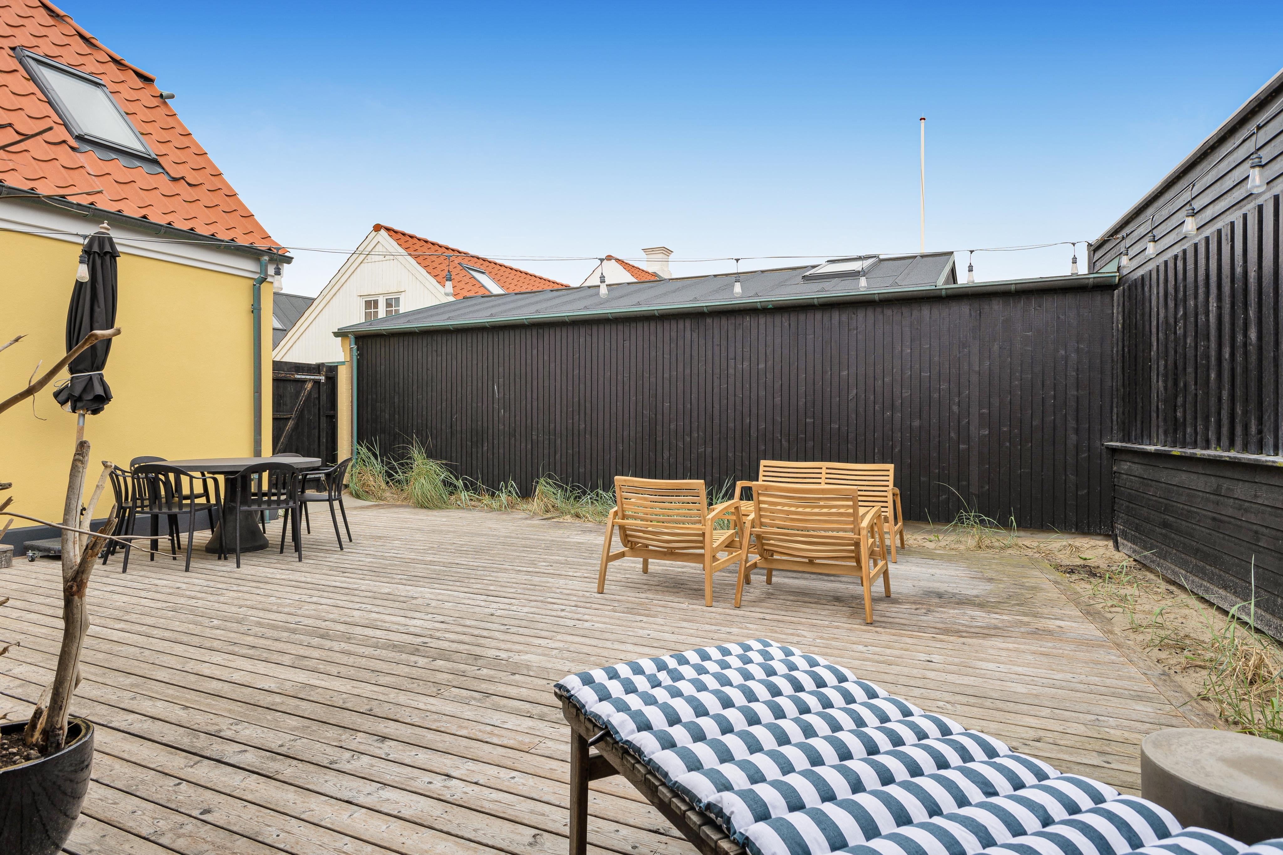 Med 100 meter til hhv. strand og 25 meter til nærmeste restaurant, er det slet ikke sikkert, at du kommer til at opholde dig meget i sommerhuset eller på terrassen, men når det byder sig, er terrassen dejligt afskærmet fra byliv mm. Med siddepladser til 6 personer i spiseområdet kan du nyde udendørslivet til fulde! På terrassen er der foruden grill også flere møbler at slænge sig i.
