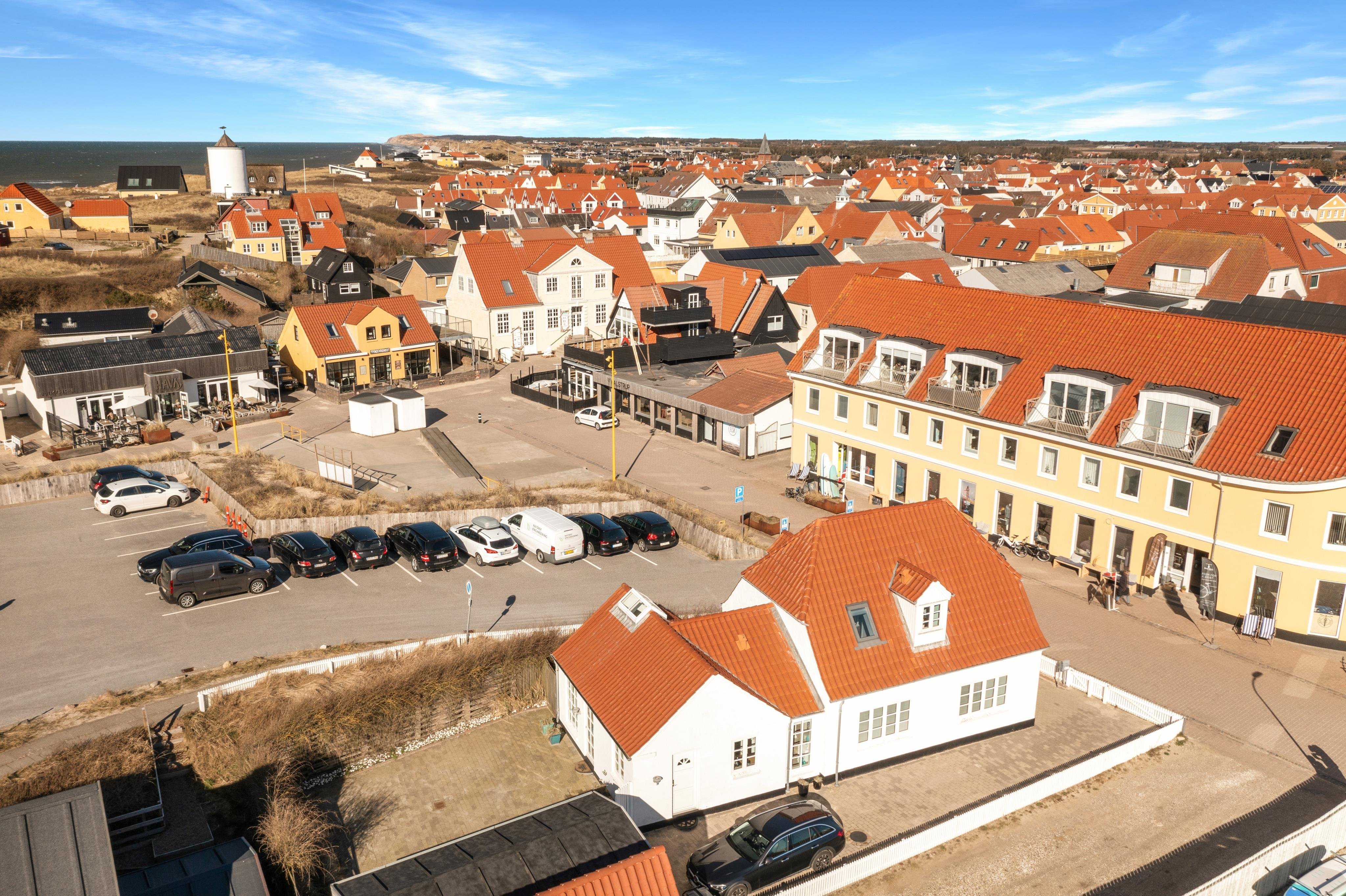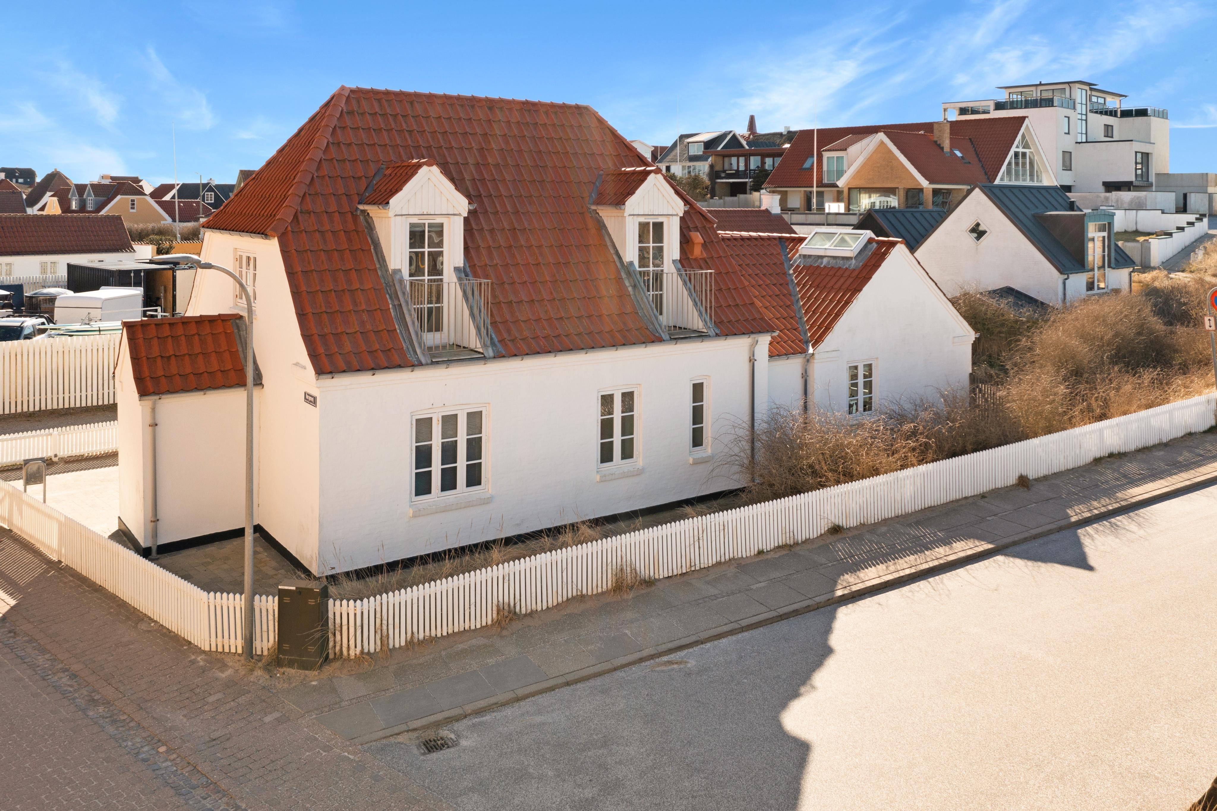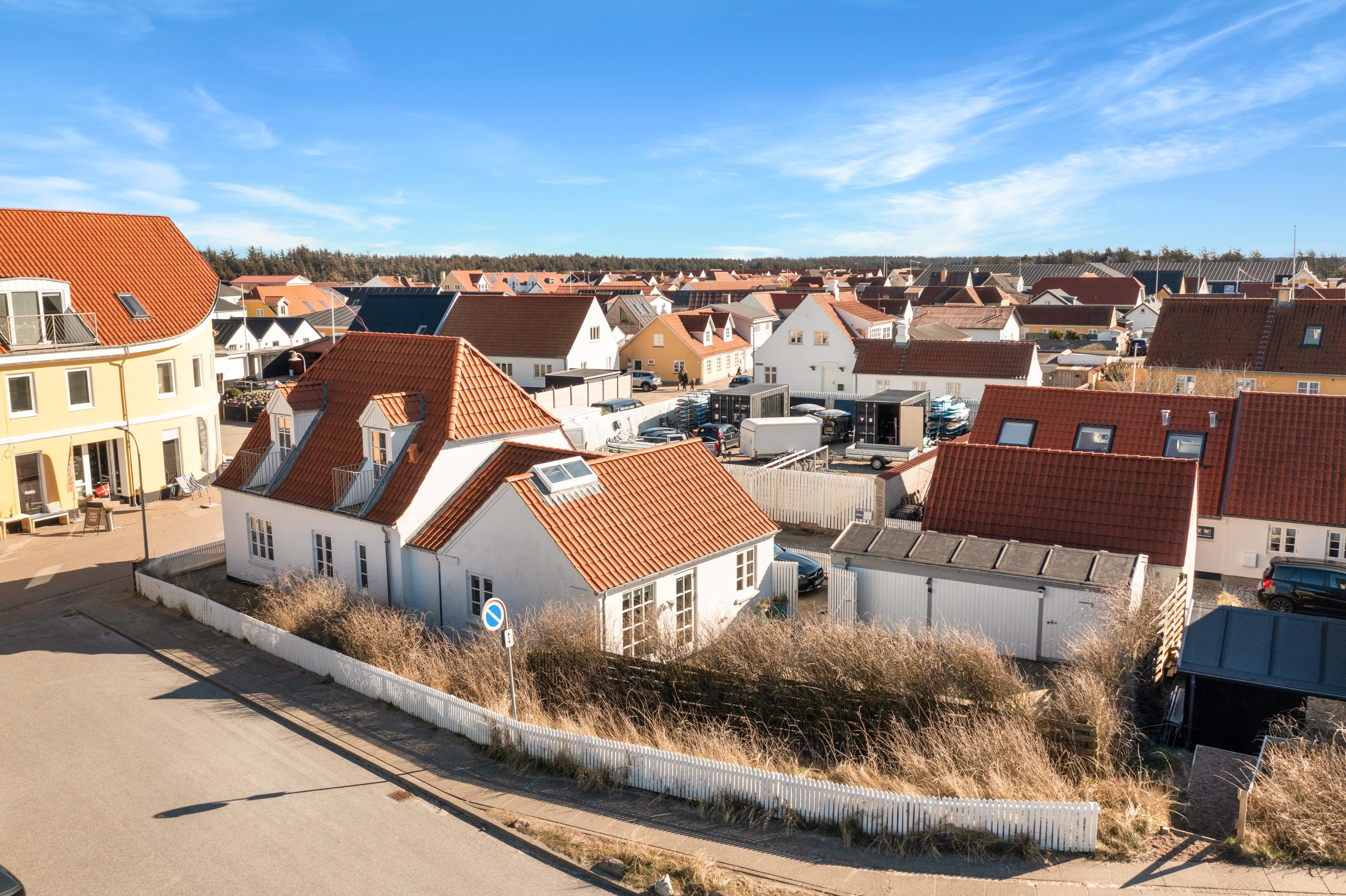 Hos Løkken By Sommerhuse er vi stolte af at præsentere denne dejlige feriebolig, beliggende Norgesvej 8 midt i Løkken centrum. Med godt 200 meter til stranden og 100 meter til byens gågade, kan du leje en feriebolig midt i smørhullet af Løkken. Og her endda havkig fra husets altaner, hvorfra man kan nyde solnedgangen.