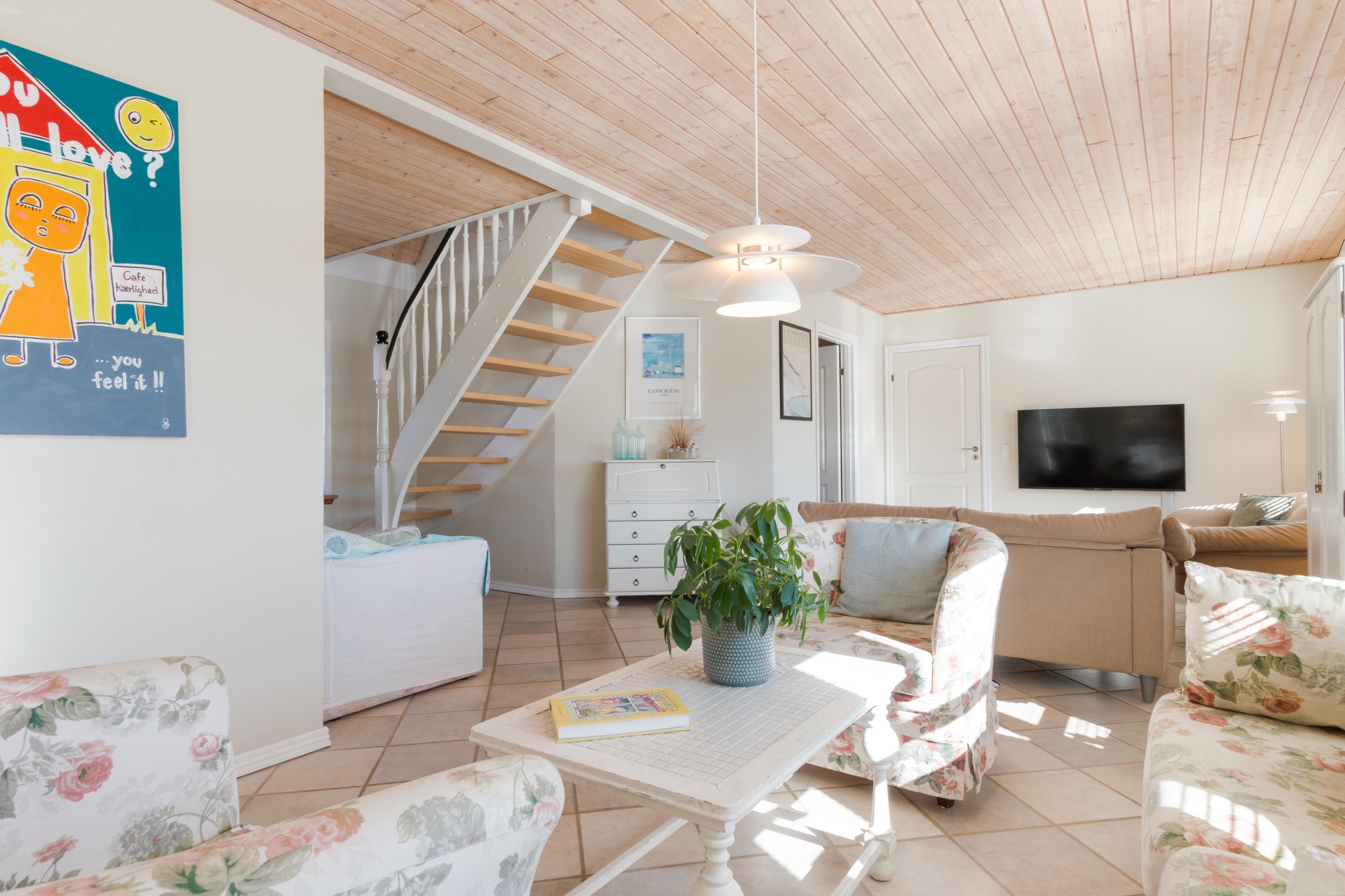 “Strandly” er navnet på denne skønne feriebolig på Norgesvej 8. Her møder du frem til en lys og imødekommende bolig, der er praktisk indrettet med åbent køkken/alrum og en super charmerende stue i sikker sommerhusstil. Der findes et dejligt soveværelse i stueplan og to ligeså på husets første sal, hvor der også er charmerende skråvægge. På første sal er der et gæstetoilet og i stueplan er der toilet i forbindelse med husets badeværelse. Du kan entrere praktisk i husets bryggers - hvad end det er sand eller sne, du ikke vil bringe med dig indenfor, eller du kan benytte det super charmerende indgangsparti ved fordøren. Her er plads til 6 personer, og to husdyr er tilladt.