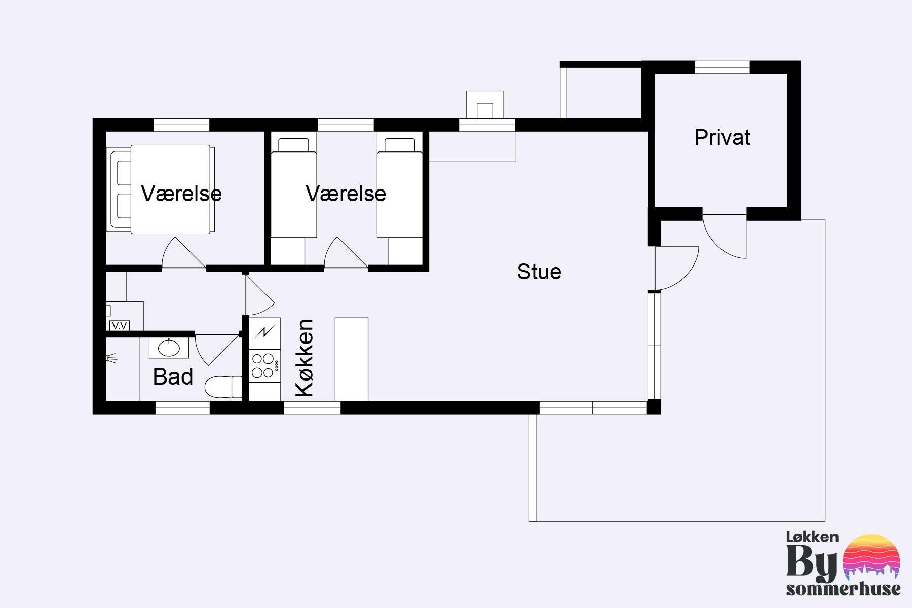 Afstand strand: 550 m Antal soverum: 2 Antal tilladte husdyr: 2 Husareal: 53 m2 Max antal personer: 4