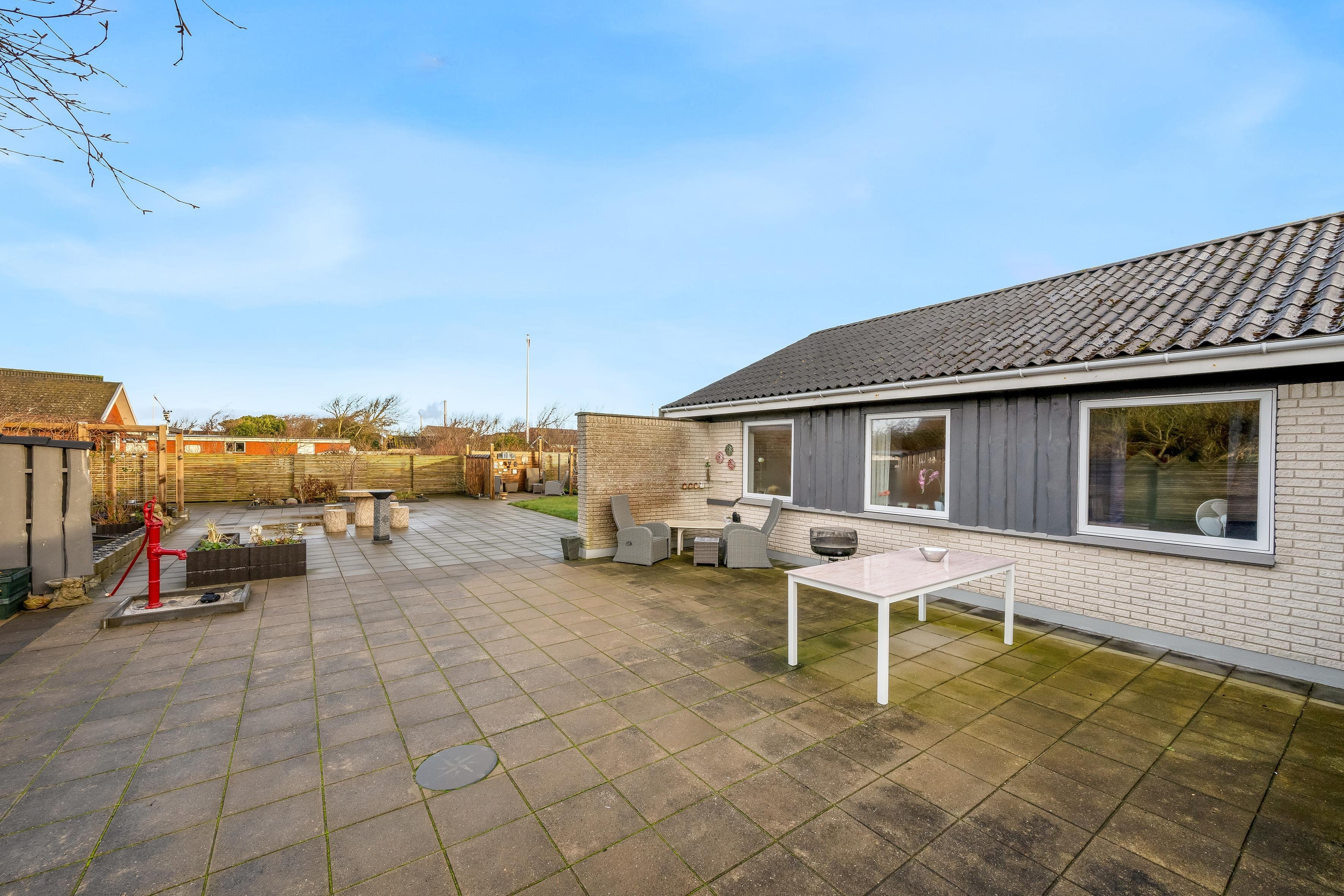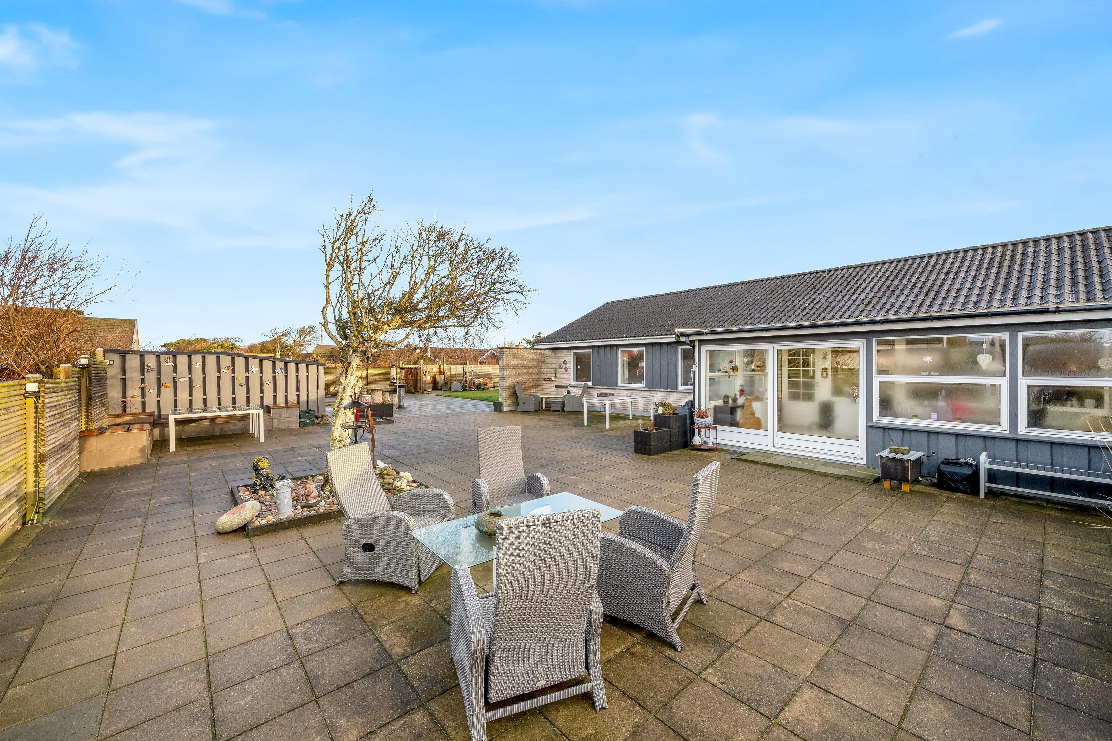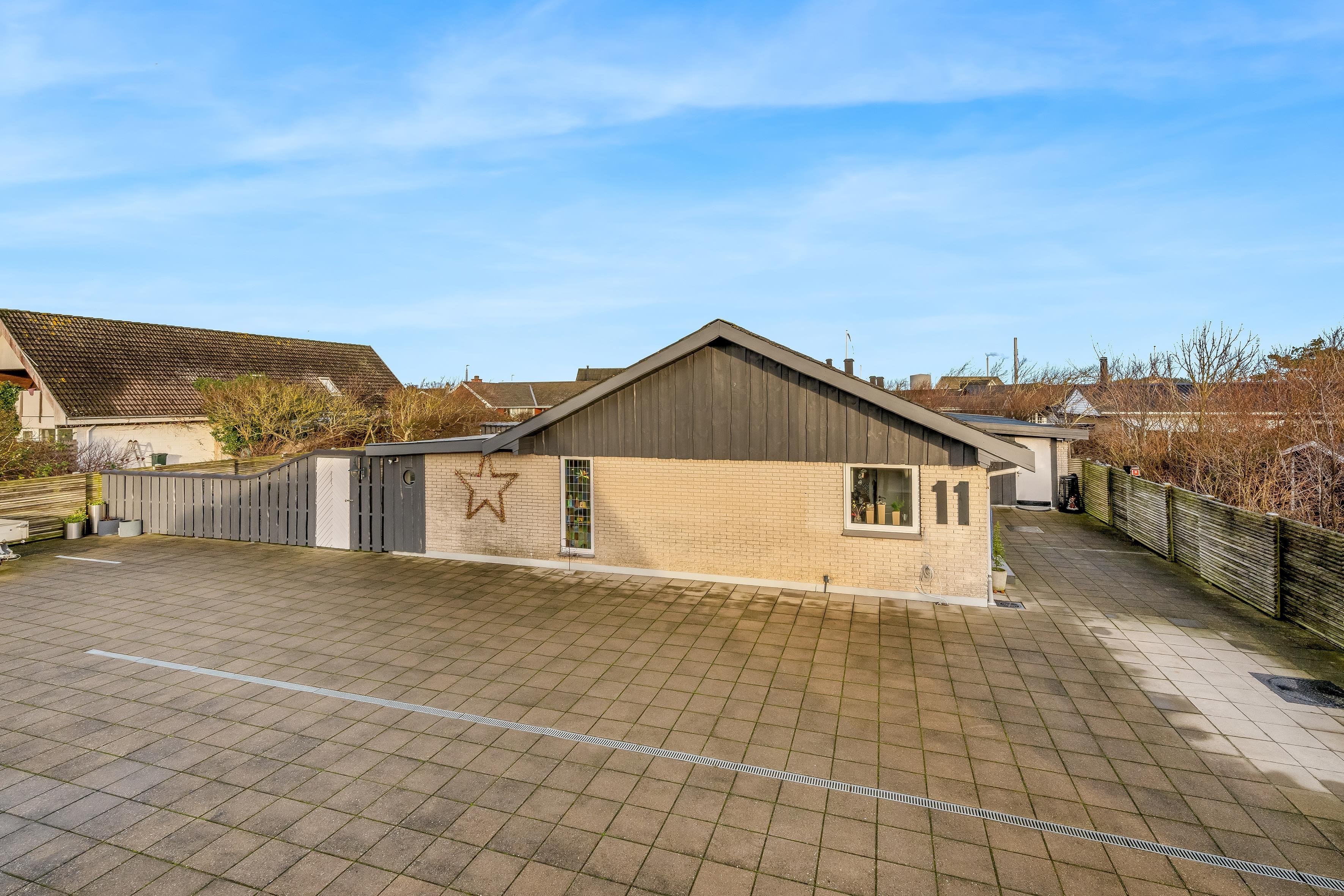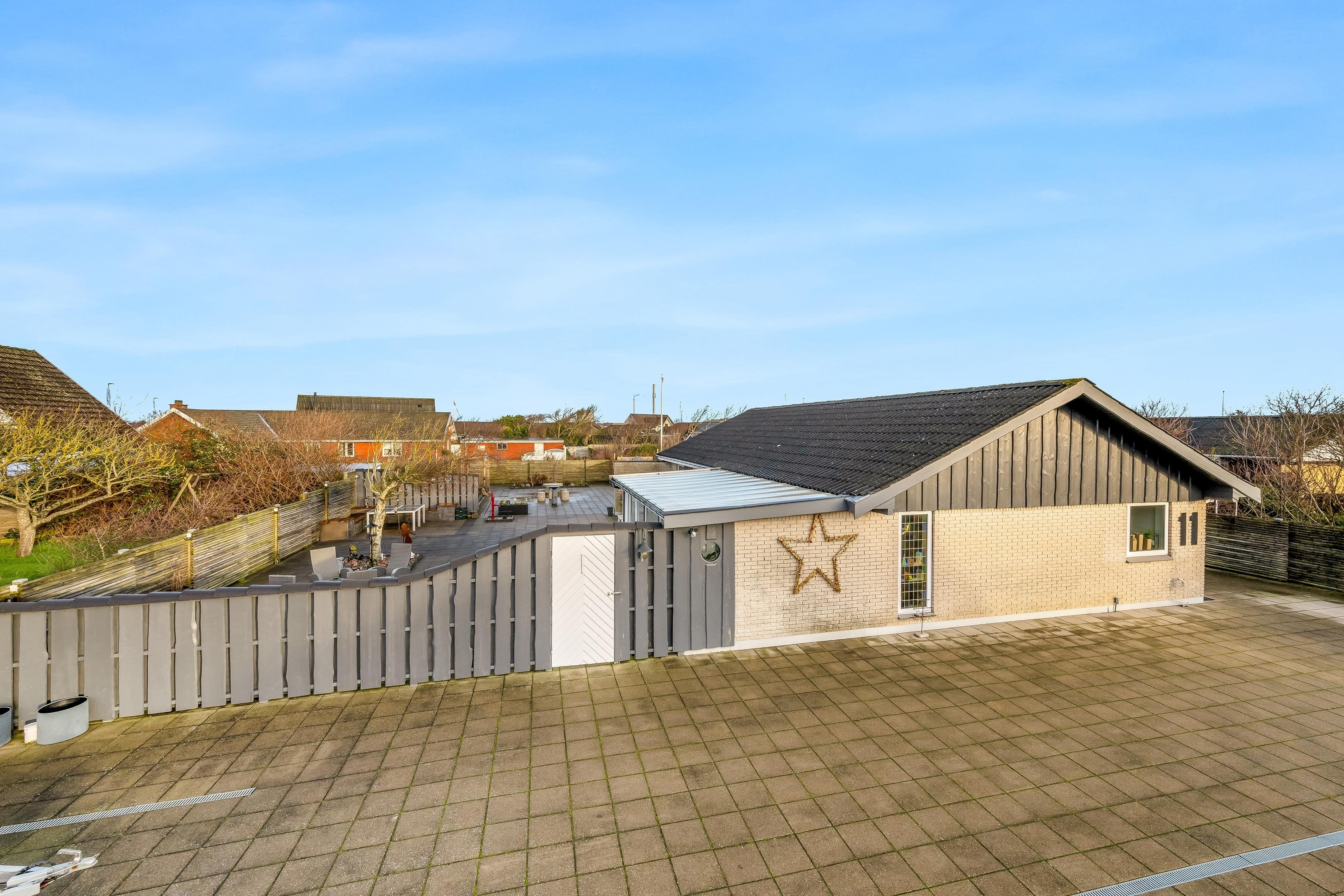Som nævnt er der indrettet hele 7 oaser på gårdspladsen, hvoraf den ene oase hedder “stressfri zone”. Dette vidner om indstillingen til, at det skal være hyggeligt at opholde sig på Parallelvej 11. Gårdspladsen er afskærmet mod vejen, så man er privat i gemakkerne. Der er masser af personlighed i huset, da husejer selv anvender boligen flere gange om året, og gerne inviterer indenfor, når huset alligevel er ledigt. Stranden, indkøbsmuligheder og byens centrum findes indenfor en radius af ca 1 kilometer. Parkeringsmuligheder er selvsagt intet problem og findes umiddelbart foran huset.