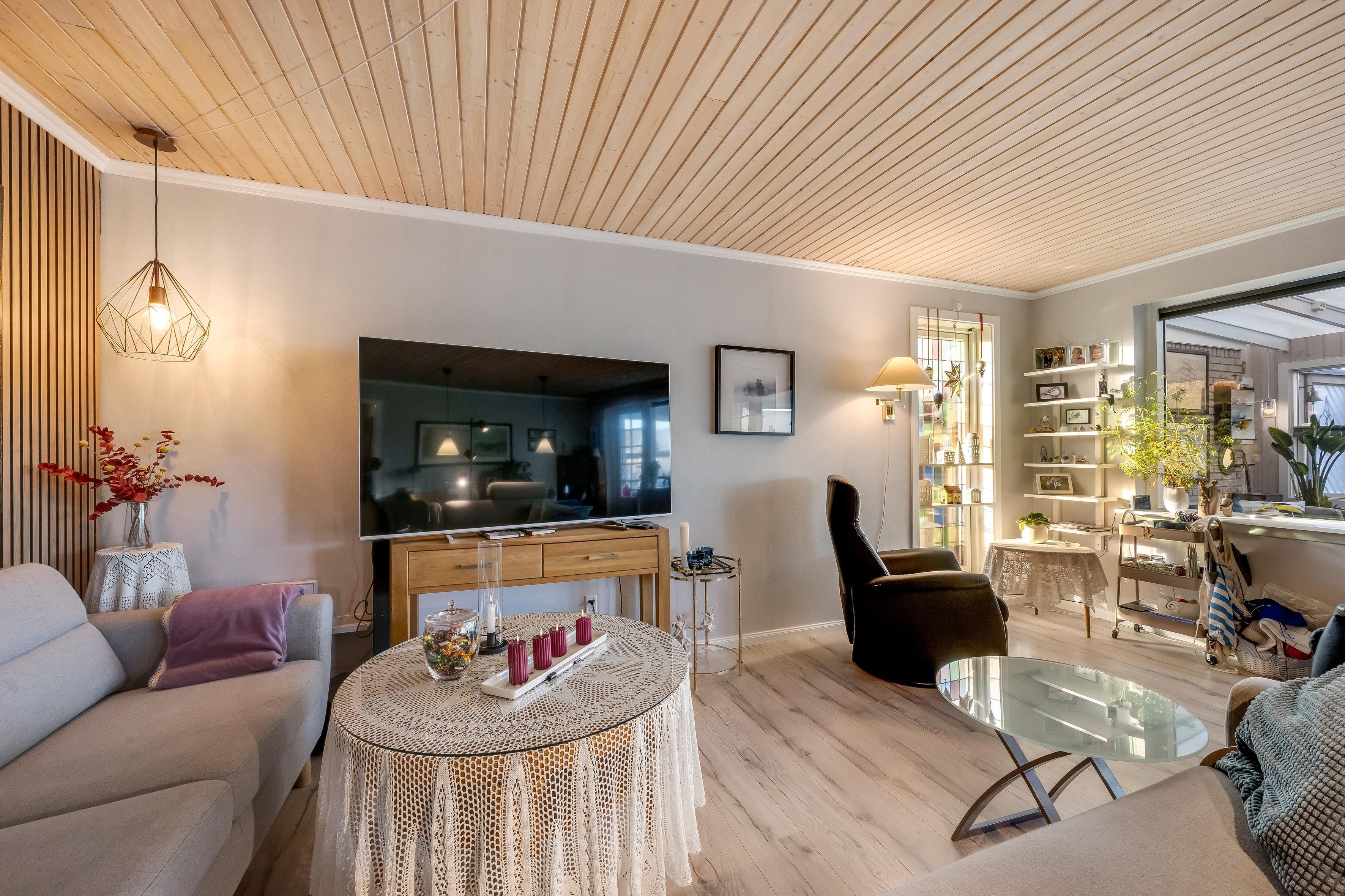 Her på Parallelvej 11 er husejer rigtig god til at skabe rum til hyggelige stunder for sine gæster! Husets køkken/alrum er rigtig charmerende med åbent køkken i forbindelse med den store spise- og TVstue, hvor der er rigelig mulighed for at slænge sig i den store sofa, mens der spilles kort ved bordet og kokkereres i køkkenet. I forlængelse af dette rum findes den store udestue, hvorfra du kan tilgå husets store gårdsplads, der har ikke mindre end 7 hyggekroge, så der er rig mulighed for at finde en plads i solen! Huset har en fordelingsgang med toilet, badeværelse og tre dobbeltværelser - det ene endda med stå-sauna.