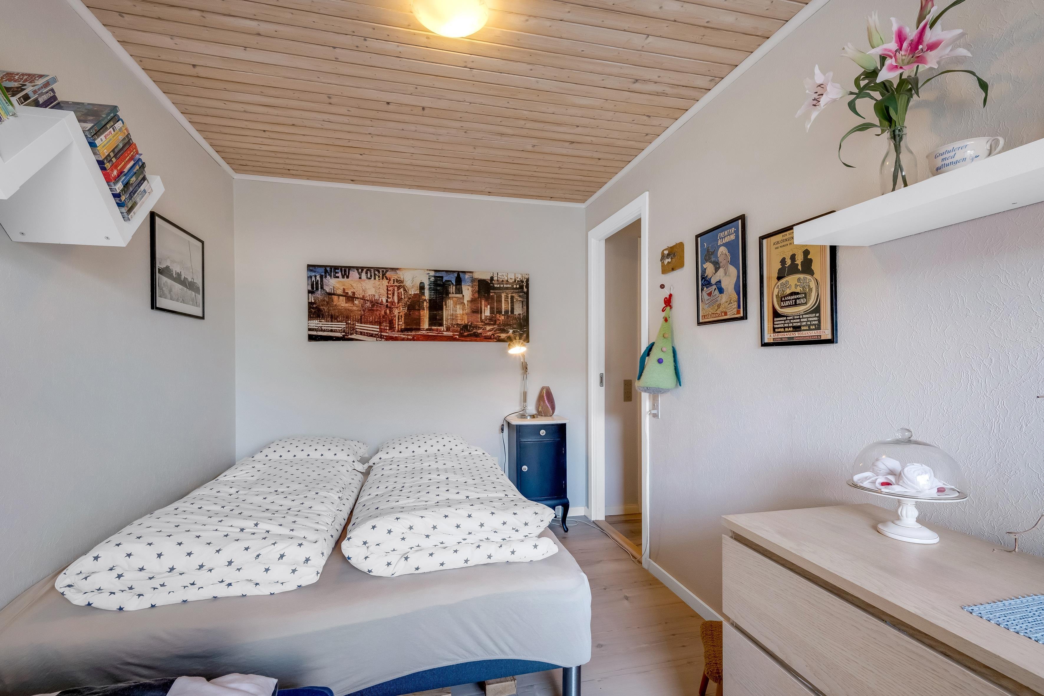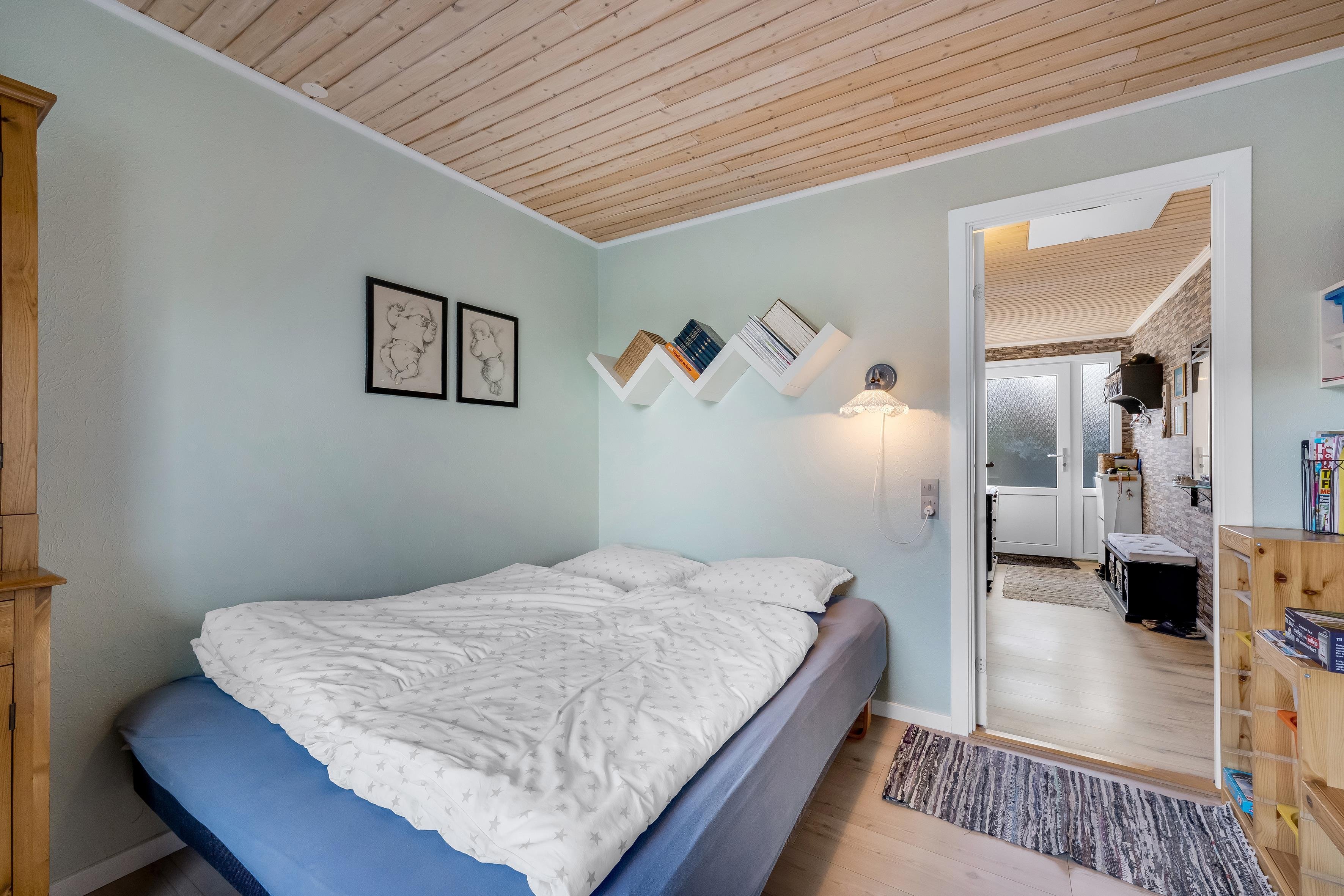 Afstand strand: 1000 m Antal Soverum: 3 Antal tilladte husdyr: 1 Husareal: 124 m2 Max antal personer: 6