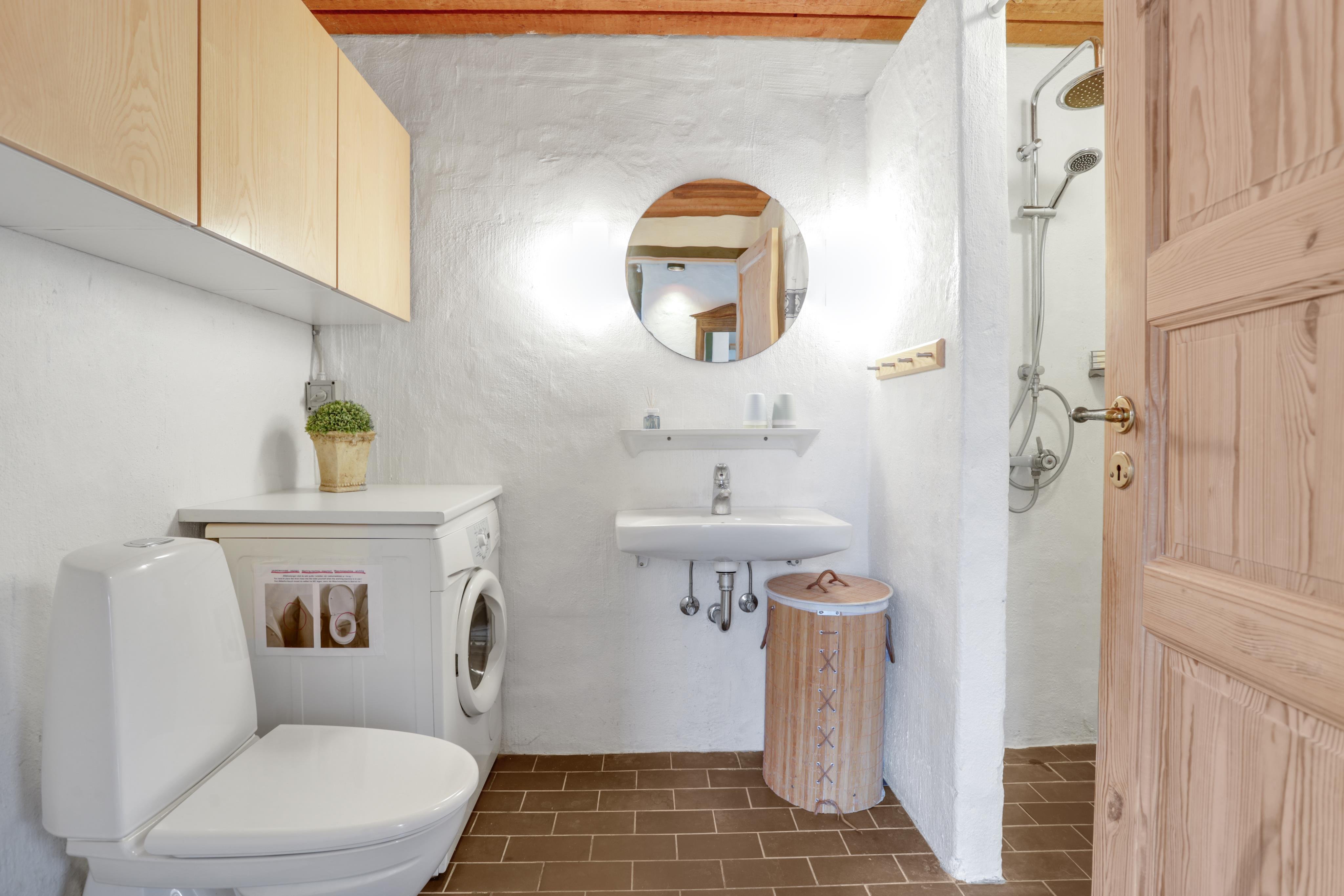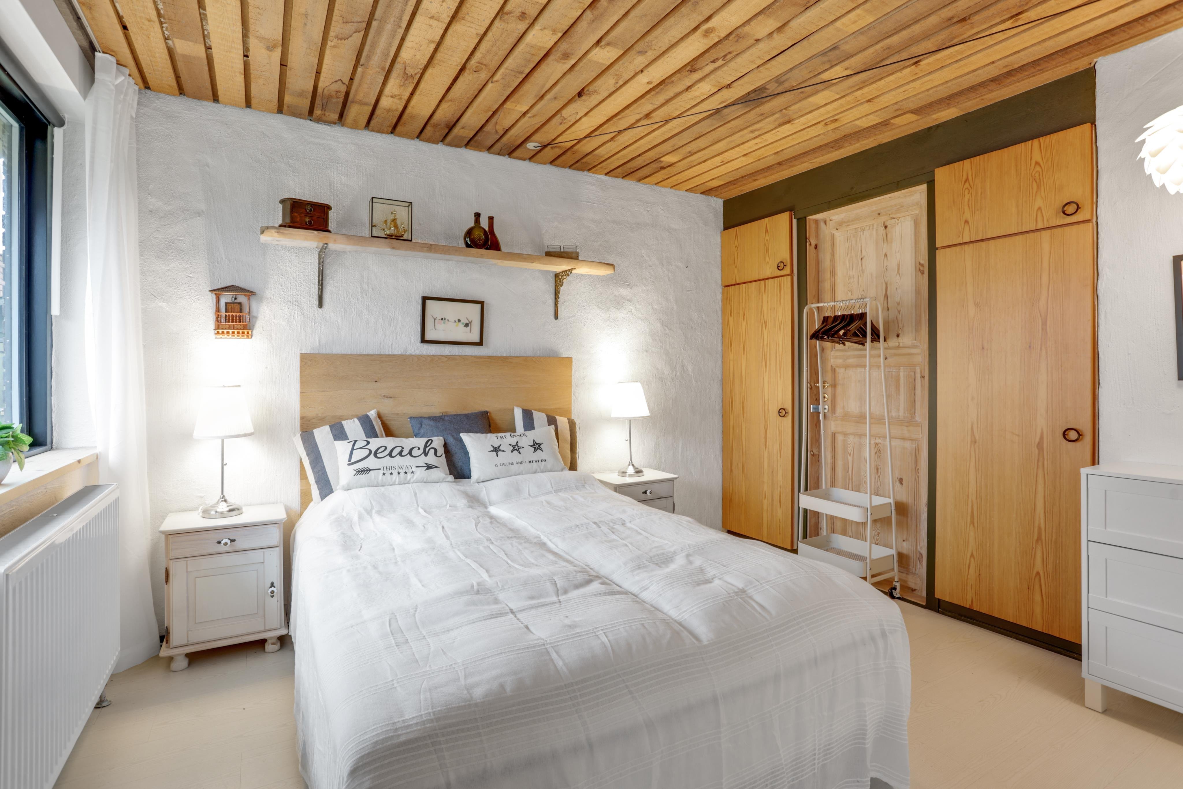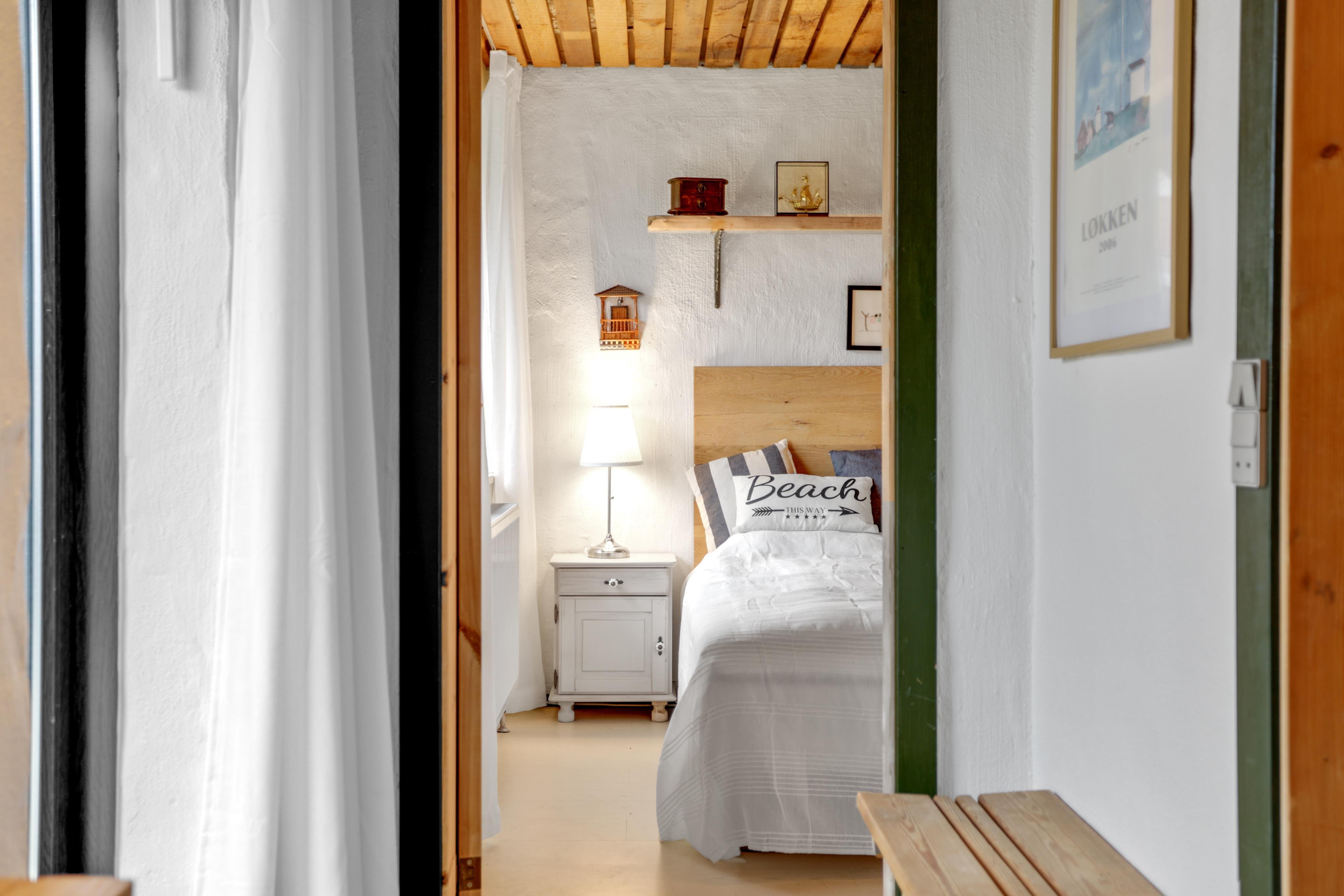 Når man træder ind af hoveddøren, mærker man straks den dejlige stemning, der er i dette sommerhus. Du træder ind i husets hyggelige entre, hvor der et soverum til både venstre og højre, samt husets badeværelse. Lige frem er trappen op til første sal, hvor du straks kan se husets brændeovn. Når der er knitrende ild i brændeovnen, fornemmer man straks hyggen fra første trin.