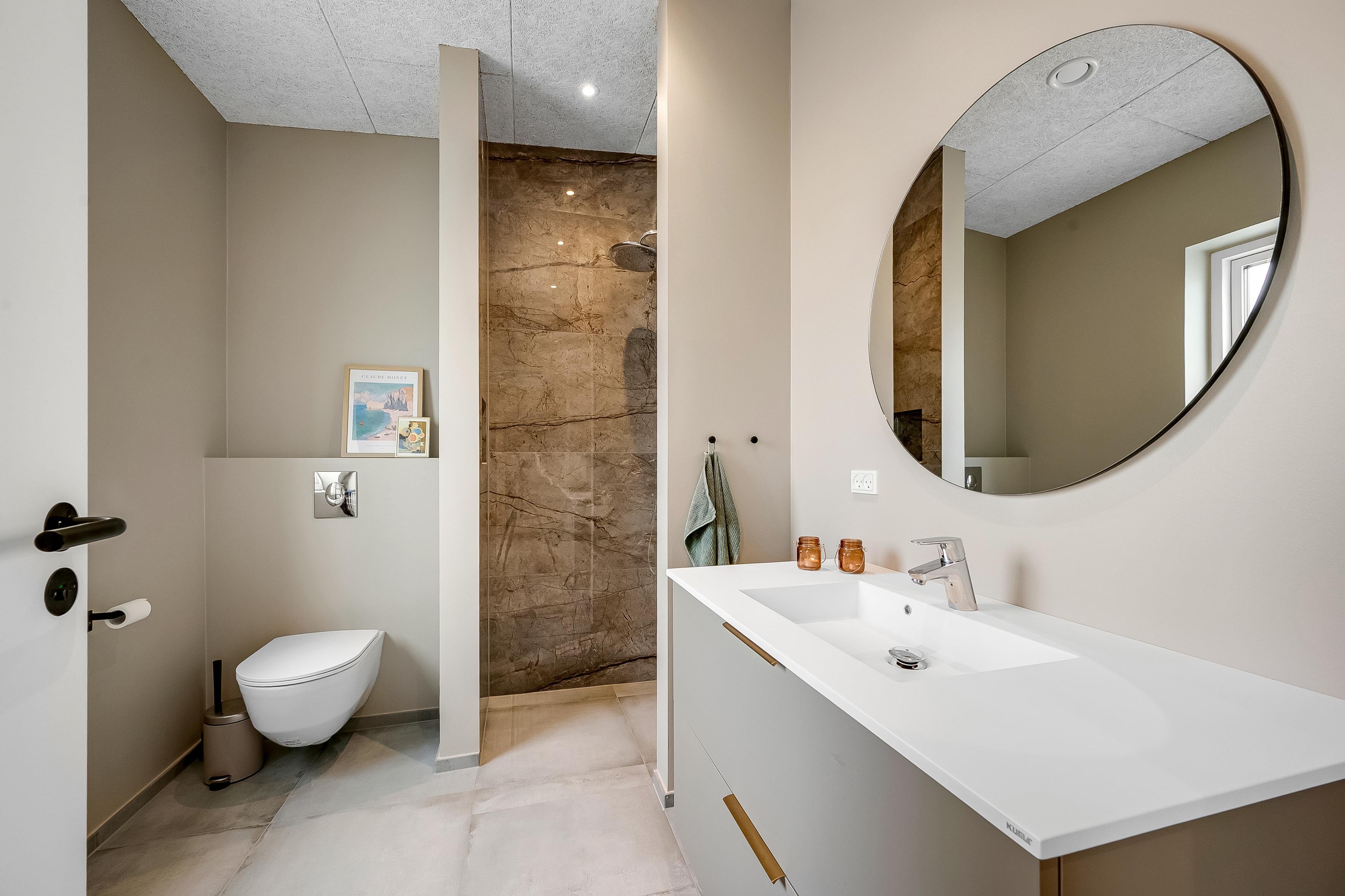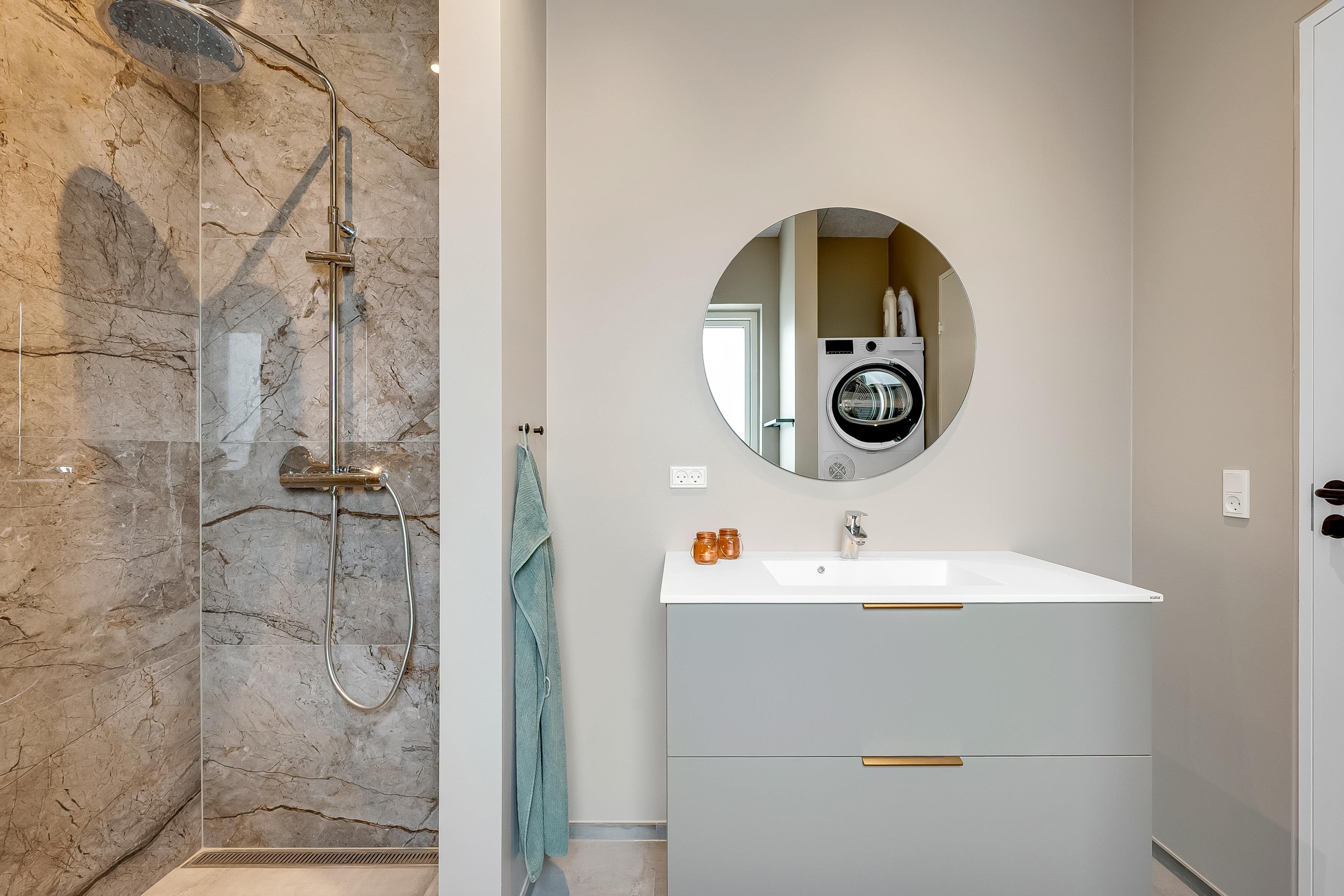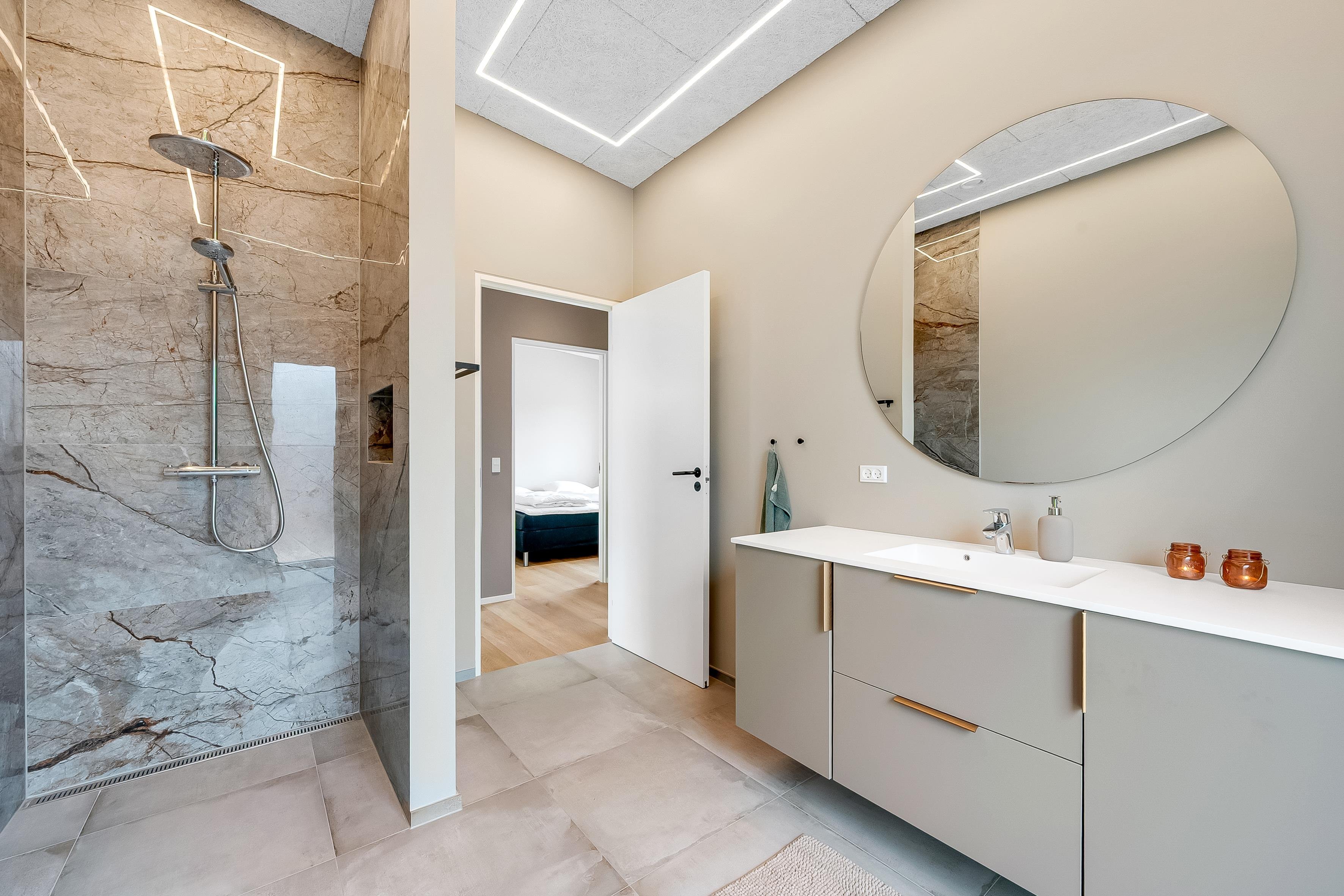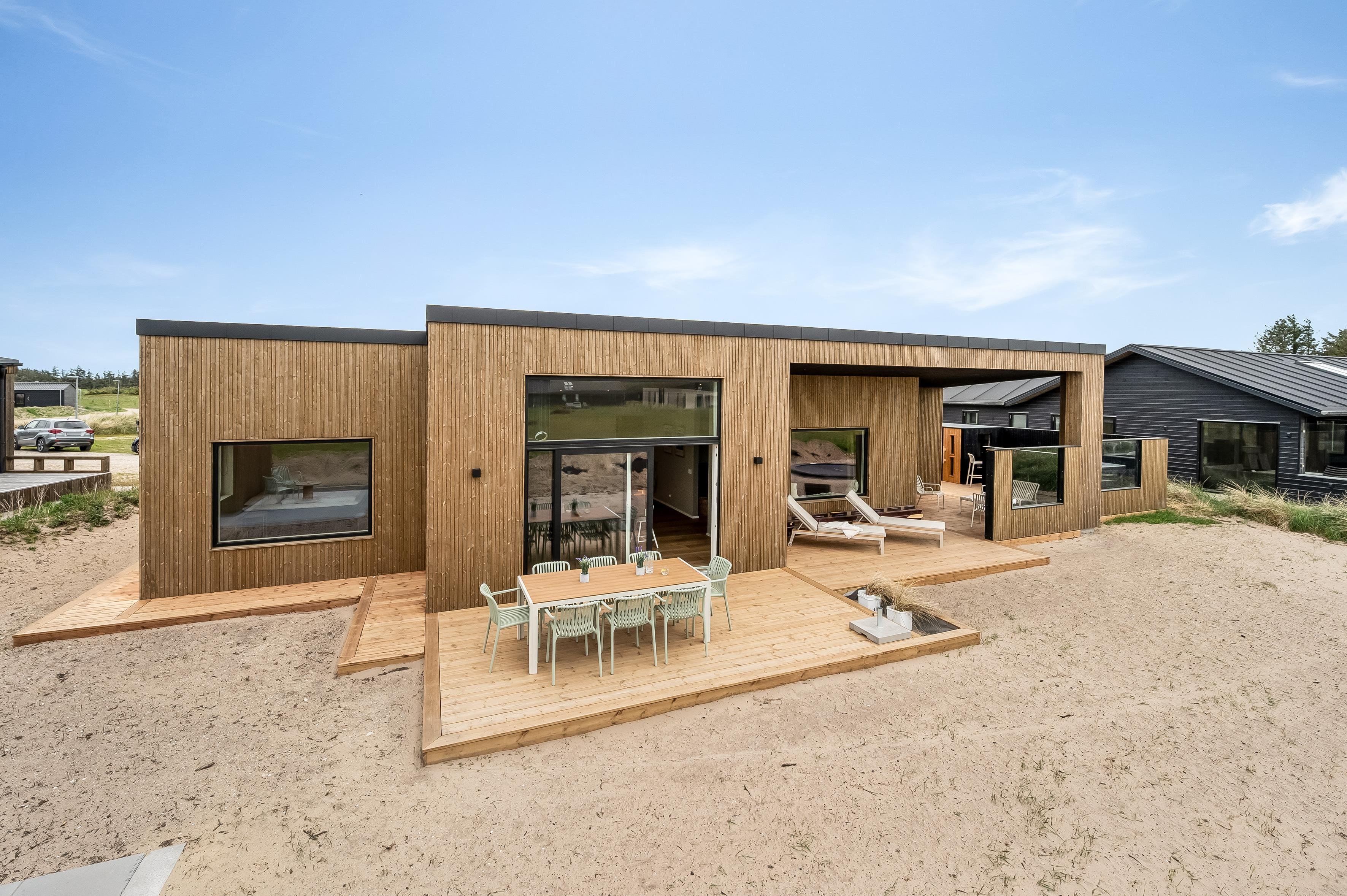 Dette nybyggede sommerhus giver plads til 8 gæster samt et barn. De åbne og lyse rum skaber en indbydende stemning, og den stilrene indretning vidner om fokus på kvalitet og detaljer. Hjemmets hjerte er det store opholdsrum, hvor køkken-alrummet og den hyggelige sofaafdeling smelter sammen. Badeværelserne er rummelige og elegant indrettede, hvilket understreger husets høje standard.