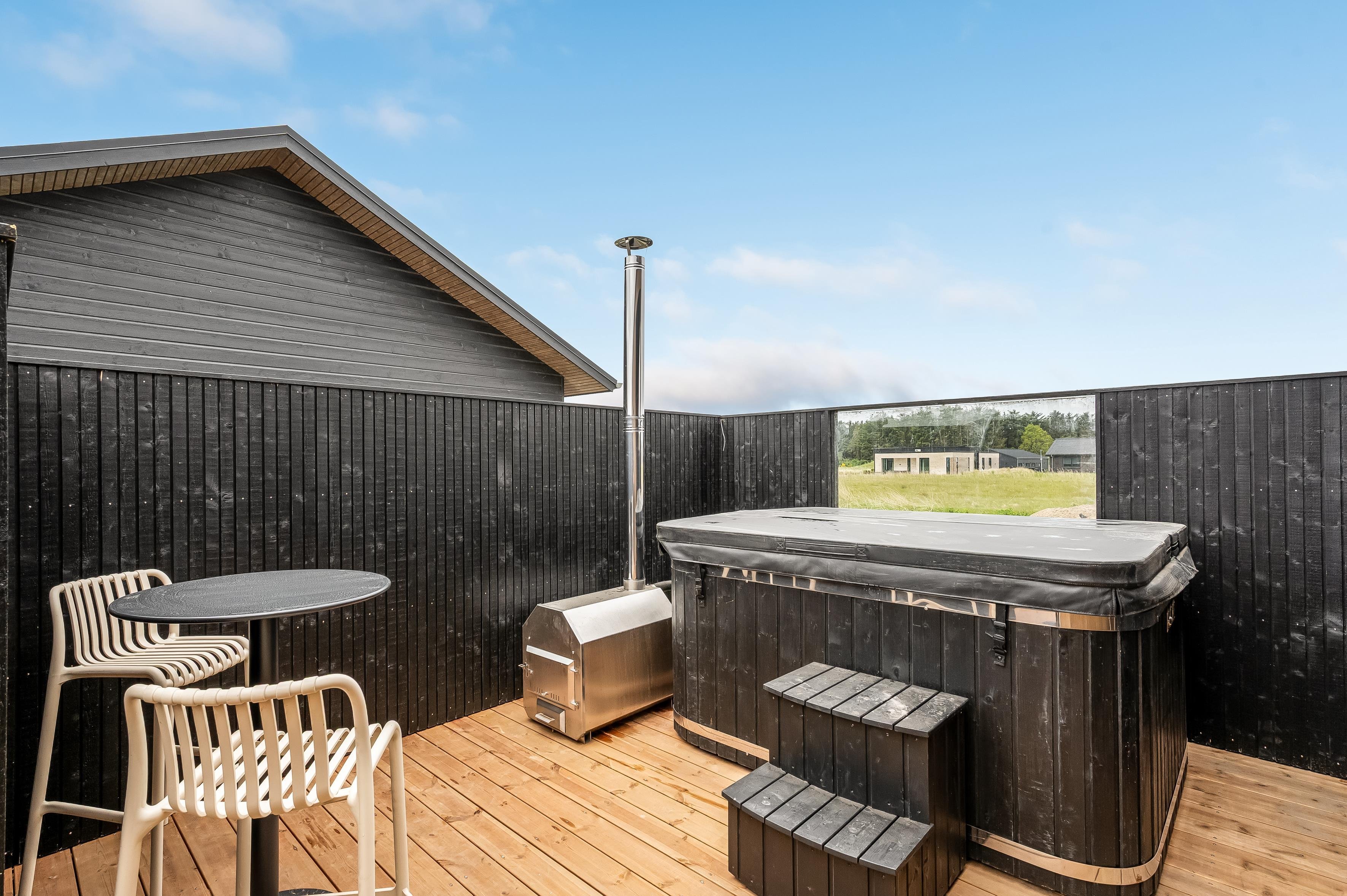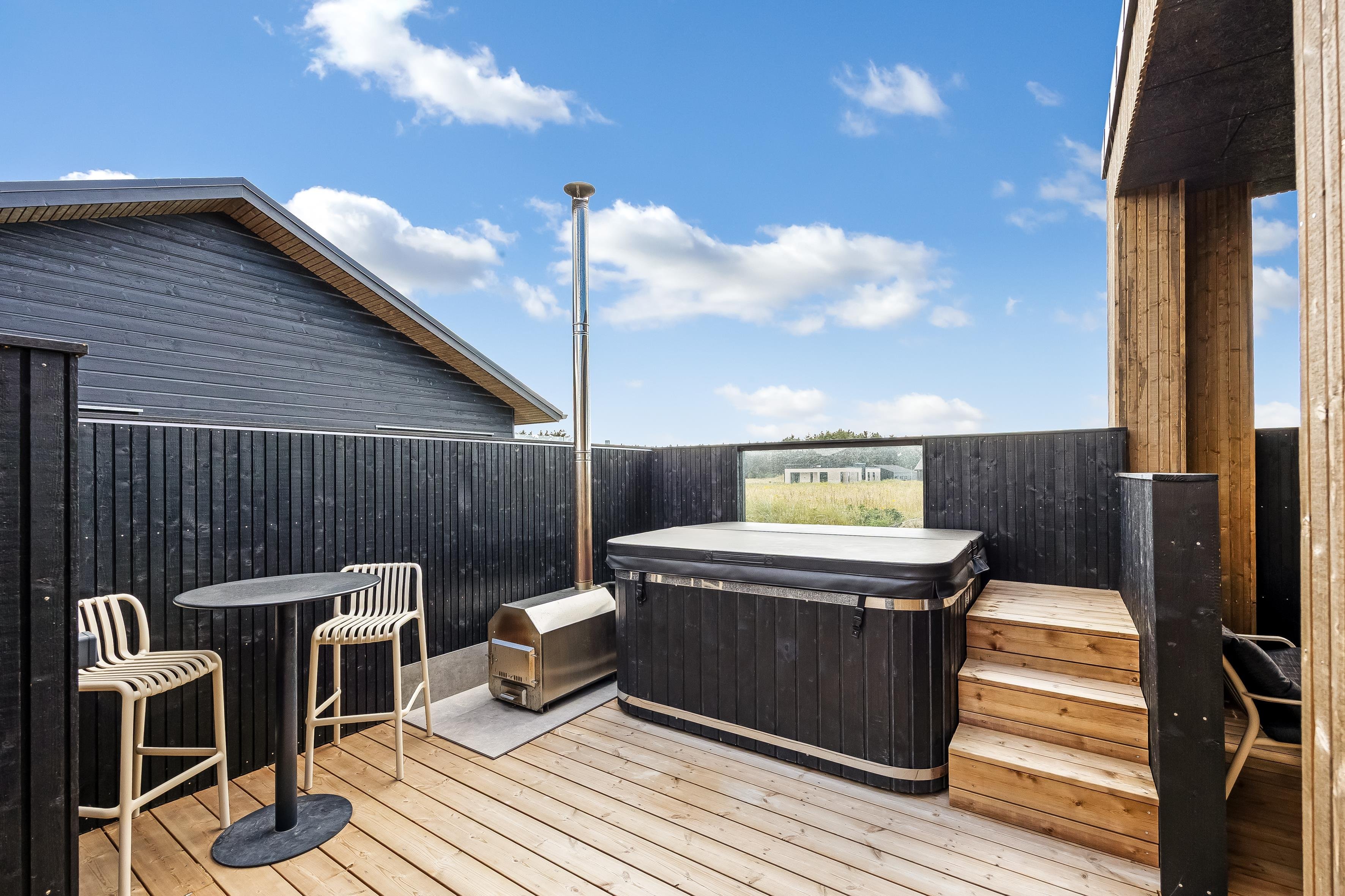 Når vejret er godt, er der rig mulighed for at nyde udendørslivet. Sommerhuset har flere terrasser placeret, så du altid kan finde sol eller læ. Den afskærmede udendørs spa giver mulighed for afslapning i private omgivelser. Stranden ligger mindre end en kilometer væk og har livreddere i højsæsonen. Derudover finder du både indkøb, transportmuligheder og spisesteder inden for kort afstand. Byens centrum er kun en kort gåtur væk.