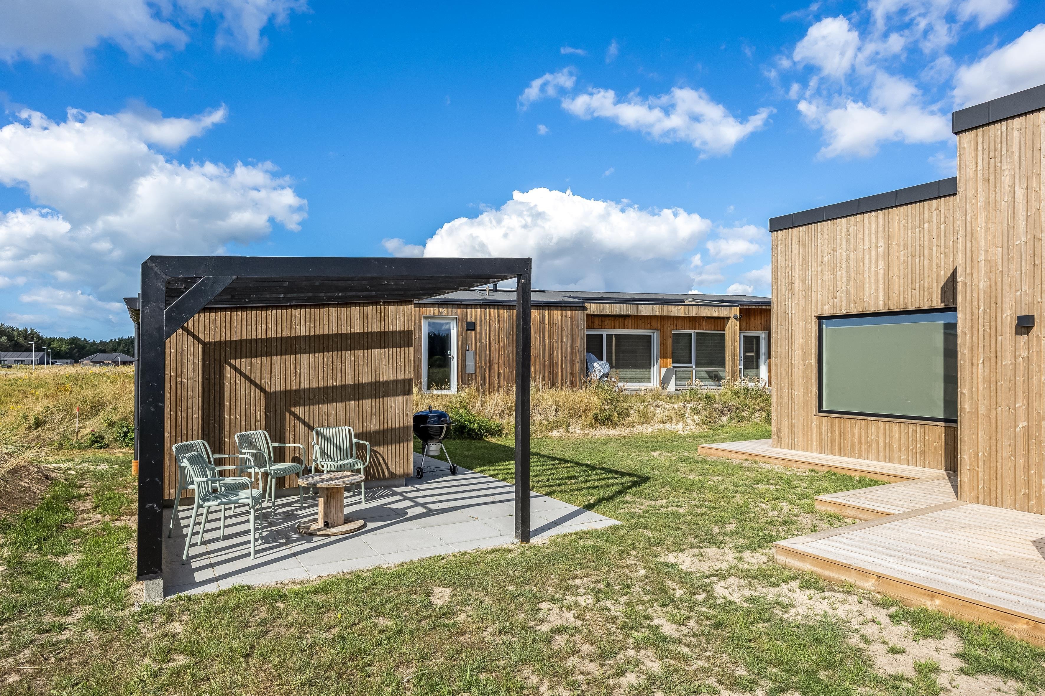 Nu har du chancen for at bo i dette skønne sommerhus, der rummer alt, hvad du og dine nærmeste kunne ønske jer. Huset har plads til 8 voksne og et barn og er opført i 2025 med en stilren og moderne indretning. De rummelige, lyse værelser og den gennemtænkte planløsning skaber en behagelig atmosfære. Sommerhuset ligger i et nyt, roligt område, men stadig tæt på byens liv – kun 500 meter fra centrum. Trækker stranden mere, er der under en kilometer til bølgerne og den brede sandstrand.