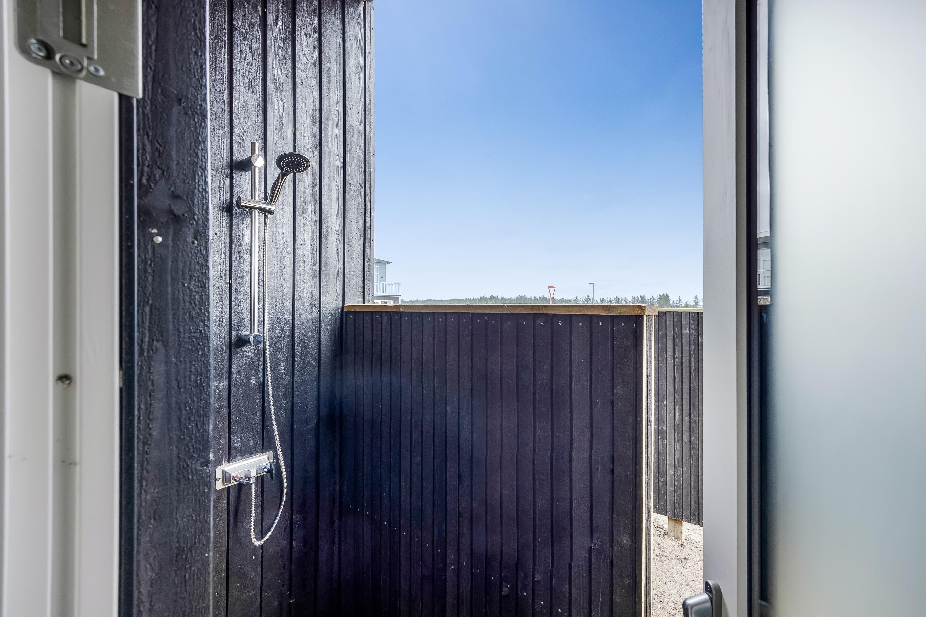 Haven og terrassen inviterer til både afslapning og aktivitet uanset tidspunktet på dagen. Med det store terrasseområde, herunder en overdækket del, er det let at finde læ og sol. Der er en skøn udespa samt udebruser, og der er en strategisk placeret vold ved huset, så man kan solbade i fred. Her er god plads til leg og hygge, og fra huset er der kort afstand til både strand, by og indkøb – alt ligger inden for cirka en kilometers radius.