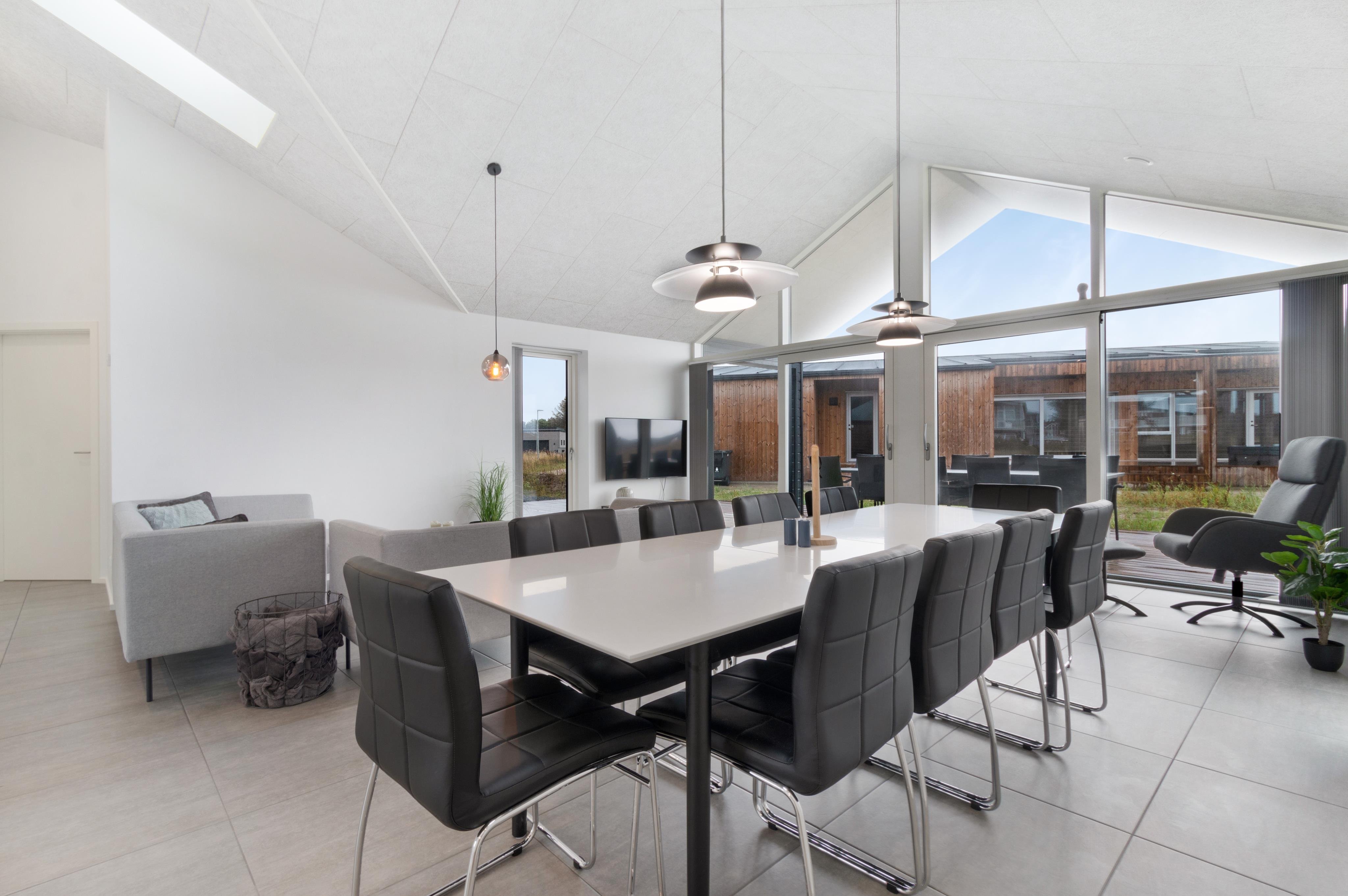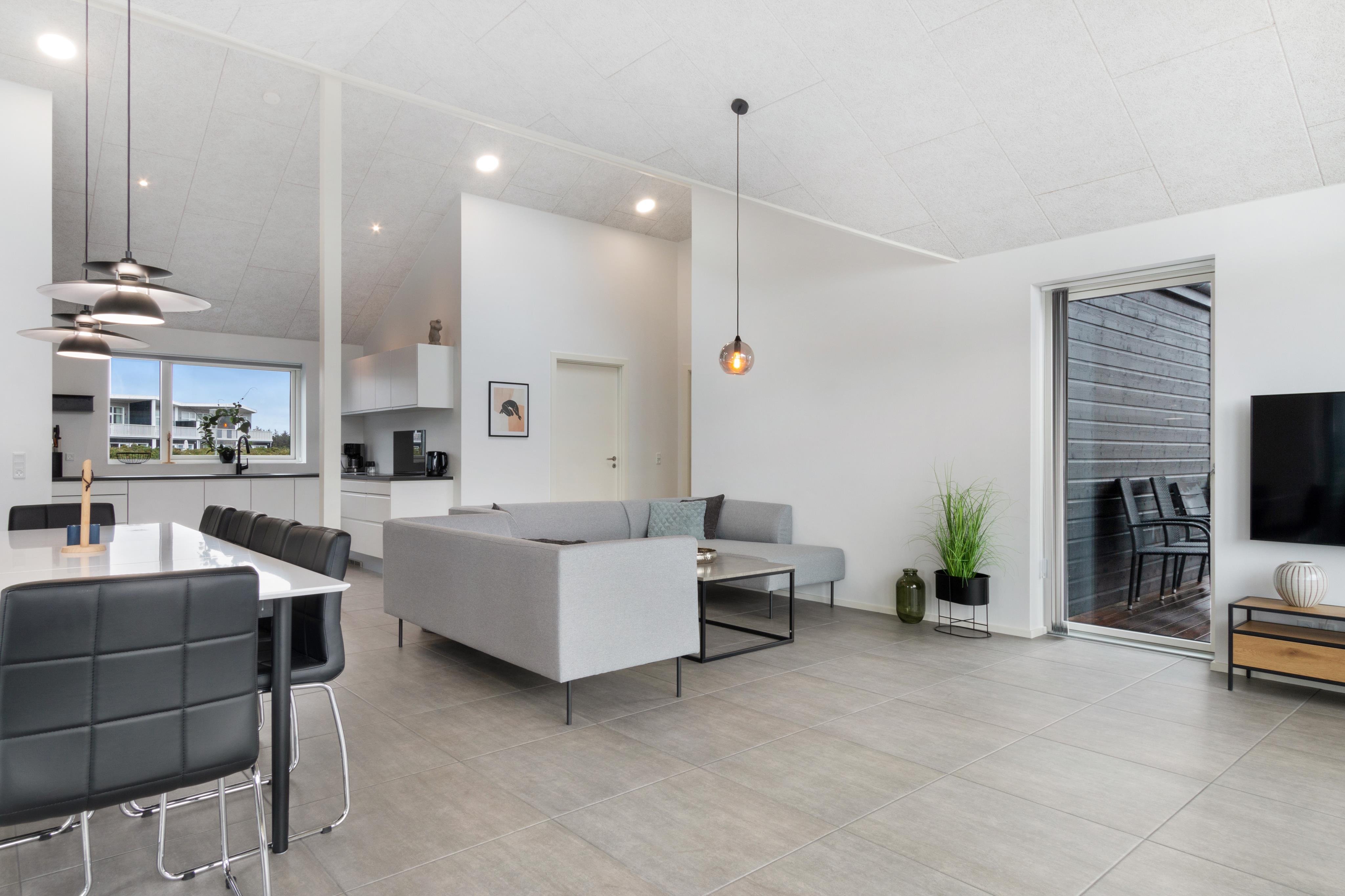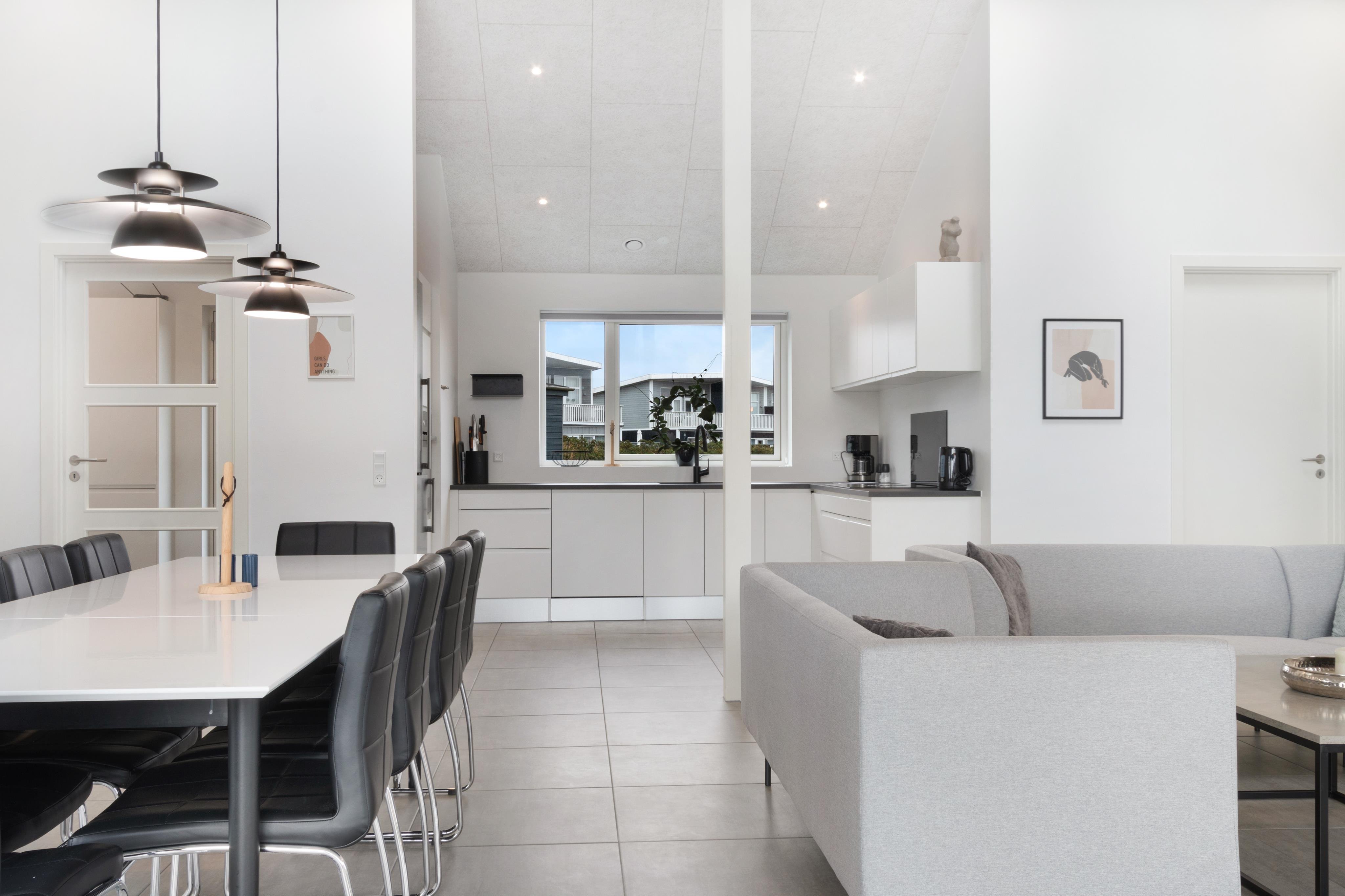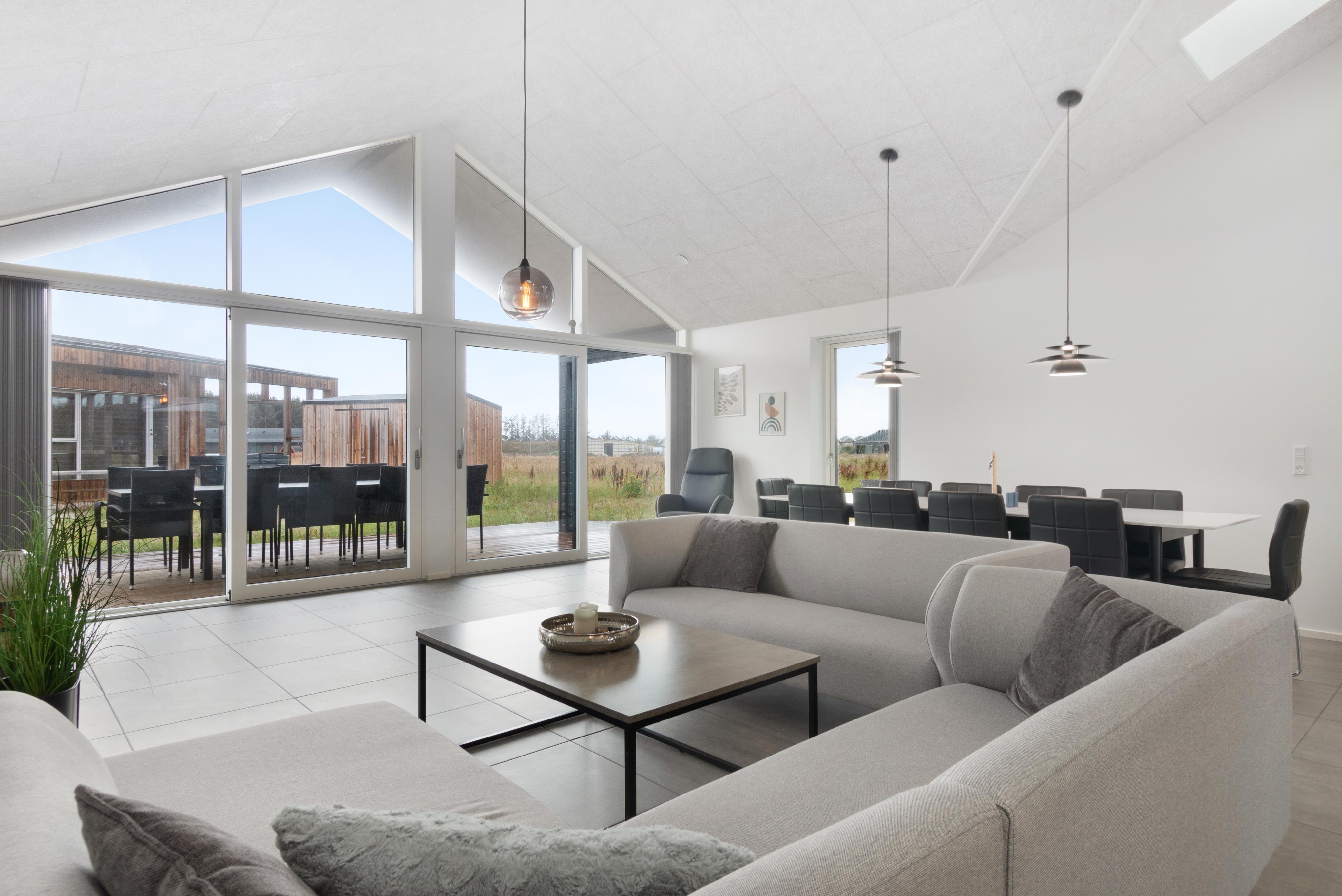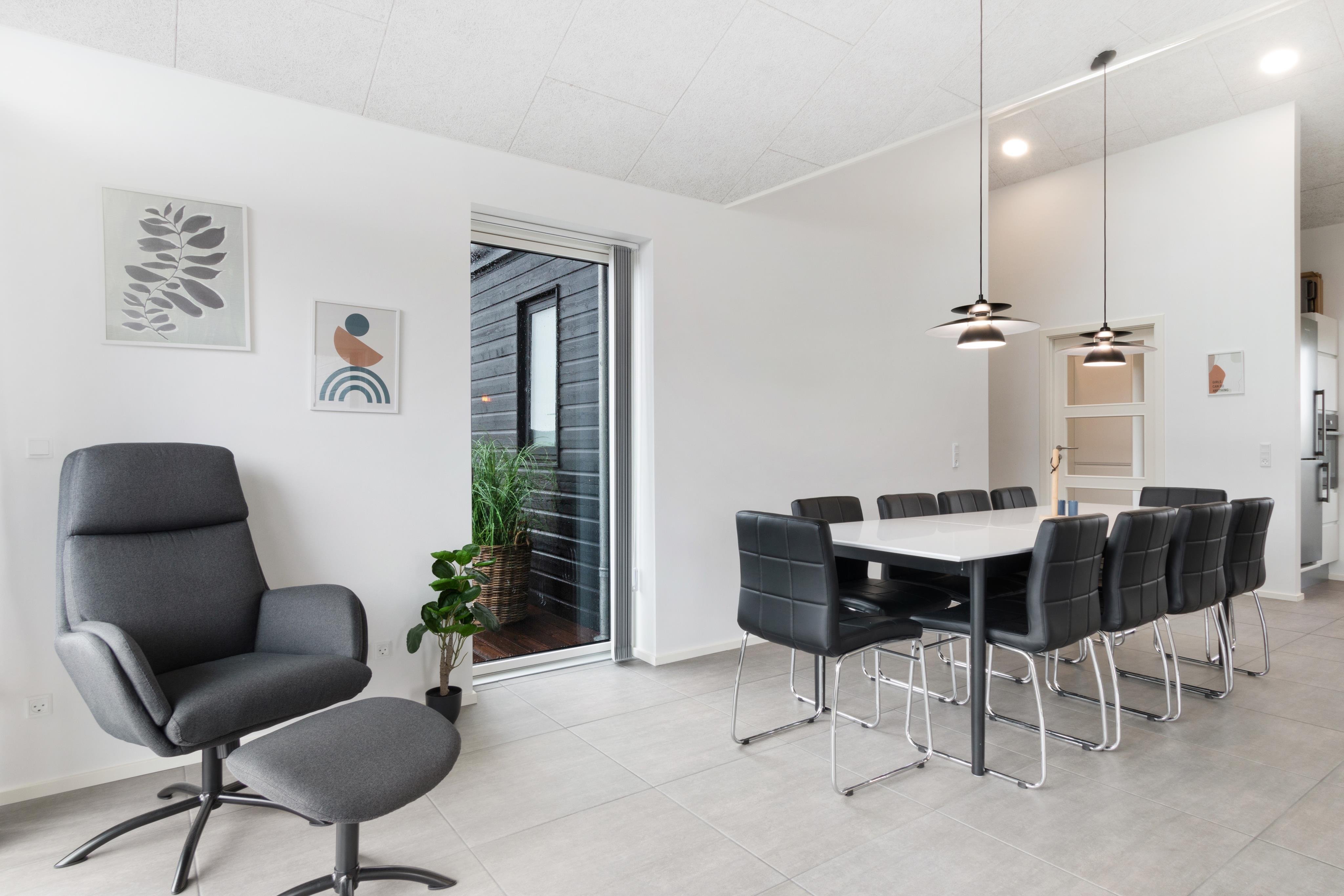 Det er ikke tilfældigt, at vi slår på, at Ulken 6 er lyst og rummeligt - der er højt til loftet og åbent køkken alrum og stue i et dejligt stort lokale med direkte udgang til sommerhusets store terrasse. Der er god plads til mange mennesker, og du kan slænge dig ved såvel det store 10 personers spisebord som i den skønne vinkelsofa, der indbyder til mange timers hygge. Ud mod terrassen består hele den ene ende af stuen af eet stort vinduesparti med udsigt og udgang til et ligeledes stort og rummeligt spisebord - også med plads til 10 personer.