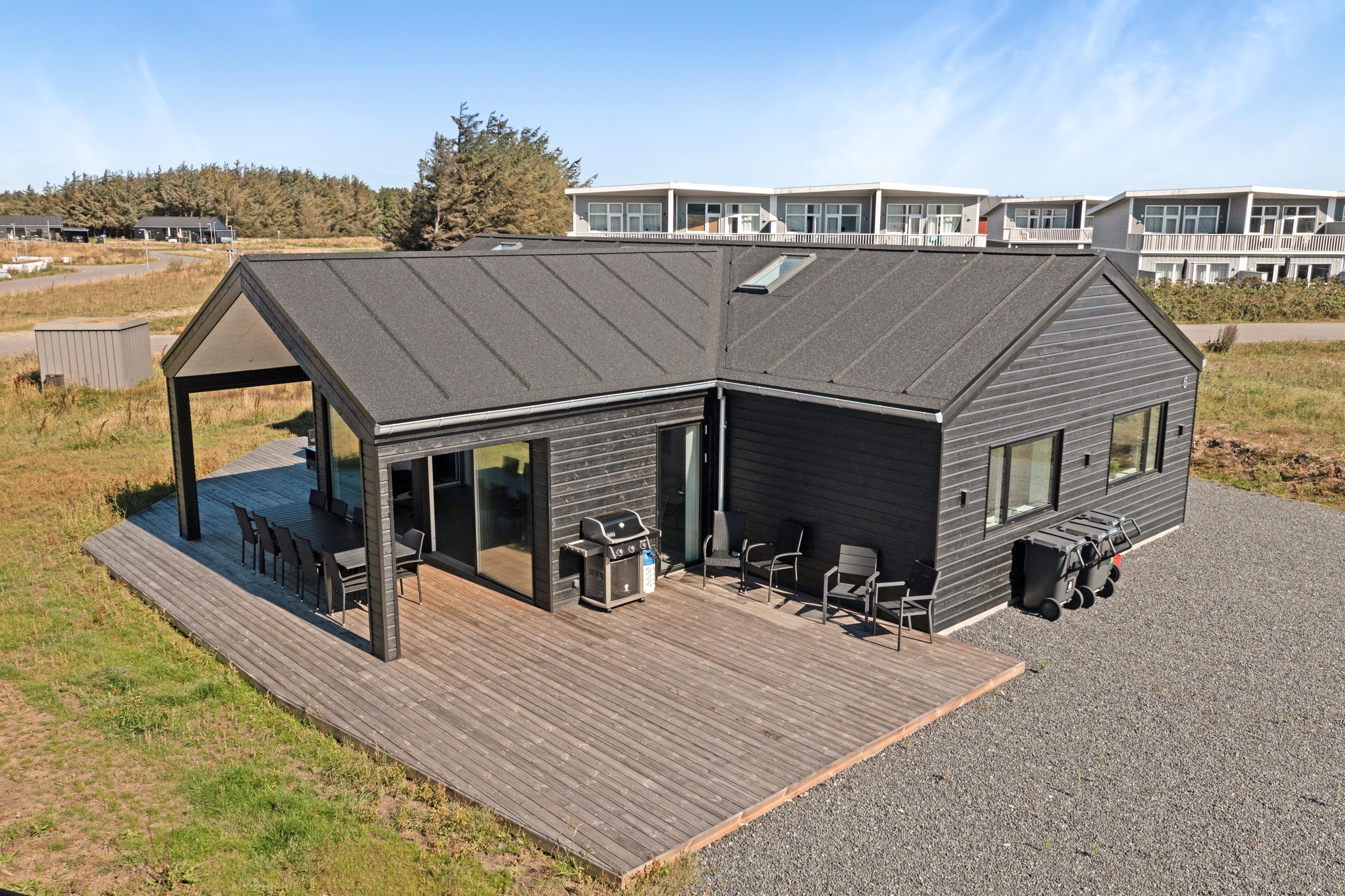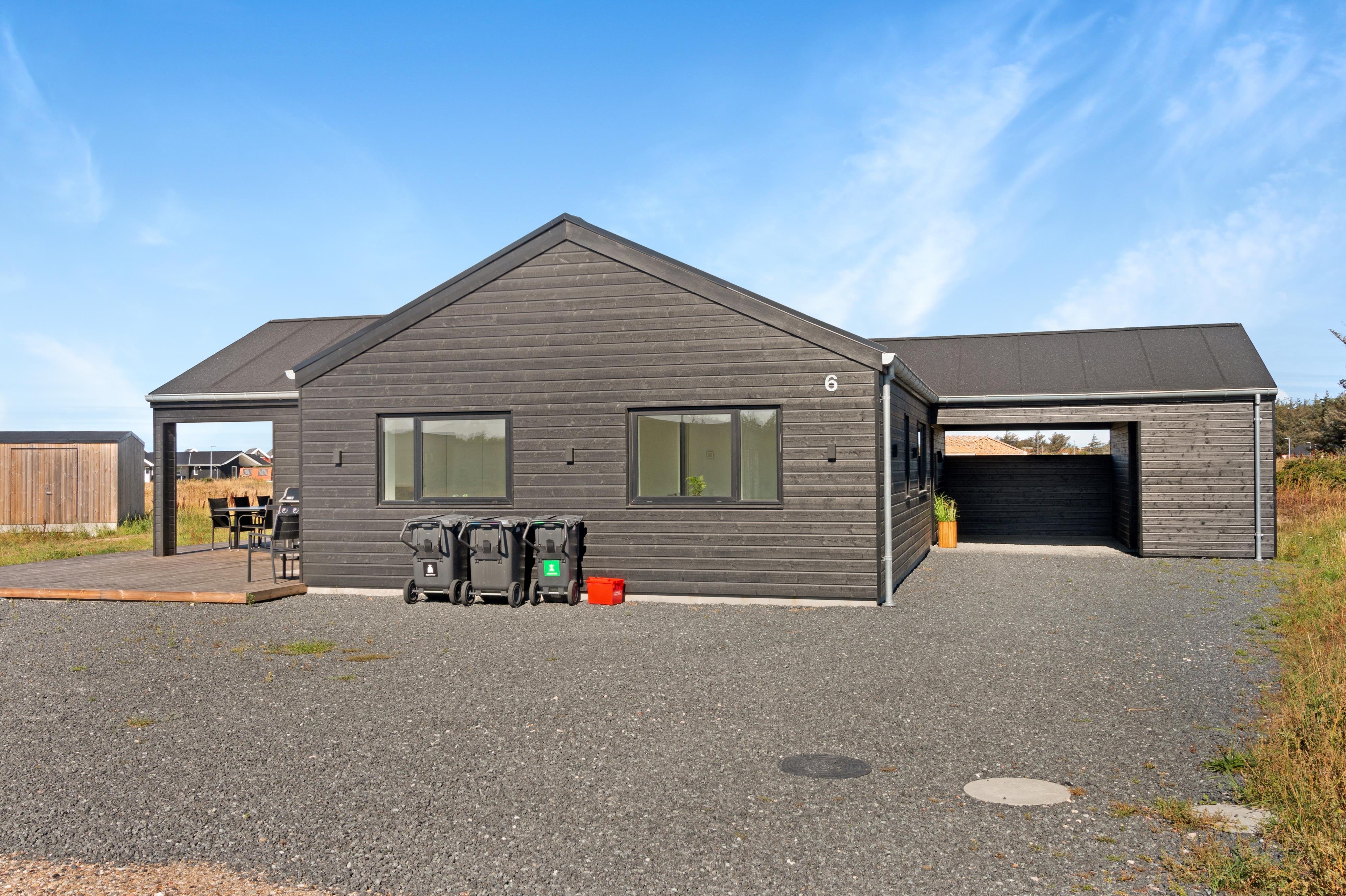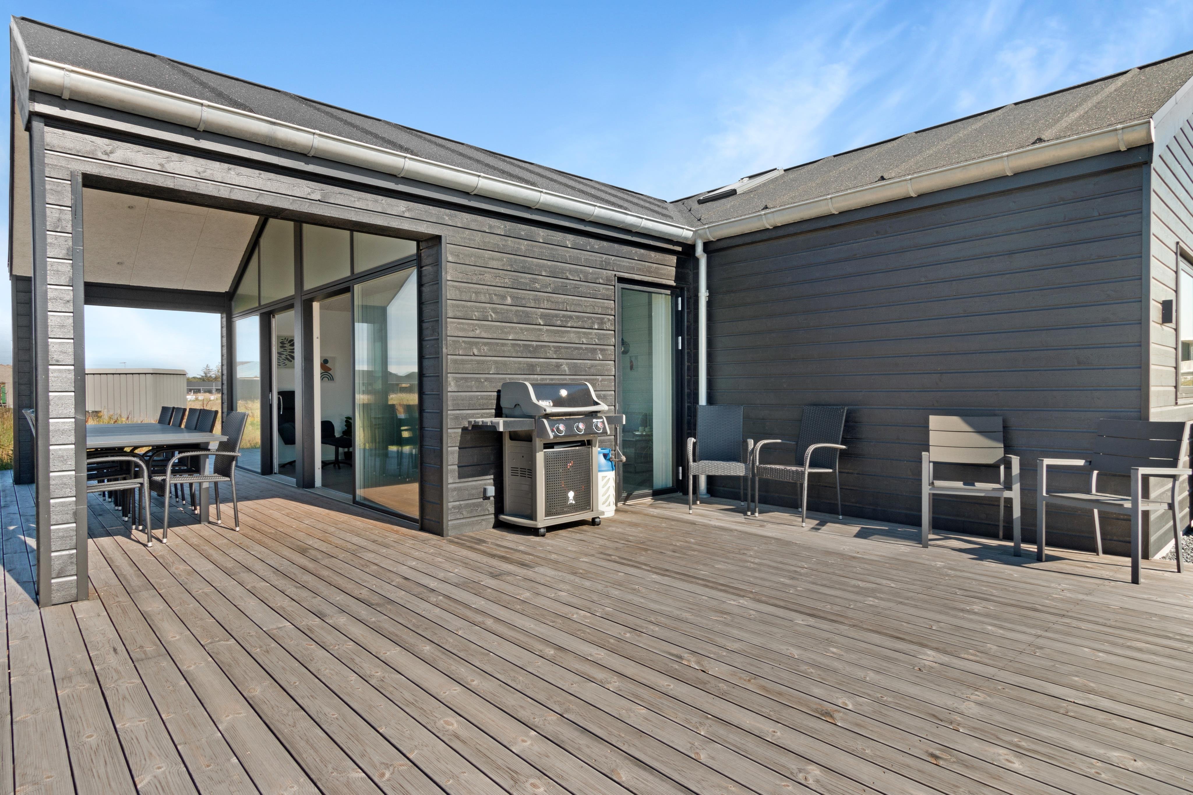 Som nævnt kan du tilgå den store terrasse direkte fra sommerhusets stue, og der er flere vinkler at finde sol og læ, såvel overdækket som i åben himmel. Her indbyder til skøn afslapning i sommersolen, eller i en god vindjakke i selskab med en bog, når vejret viser sig fra en lidt køligere side. Omkring dig er udsigt til flotte sommerhuse og masser af feriestemning. Der er mulighed for at parkere i carport og på den store indkørsel foran huset.