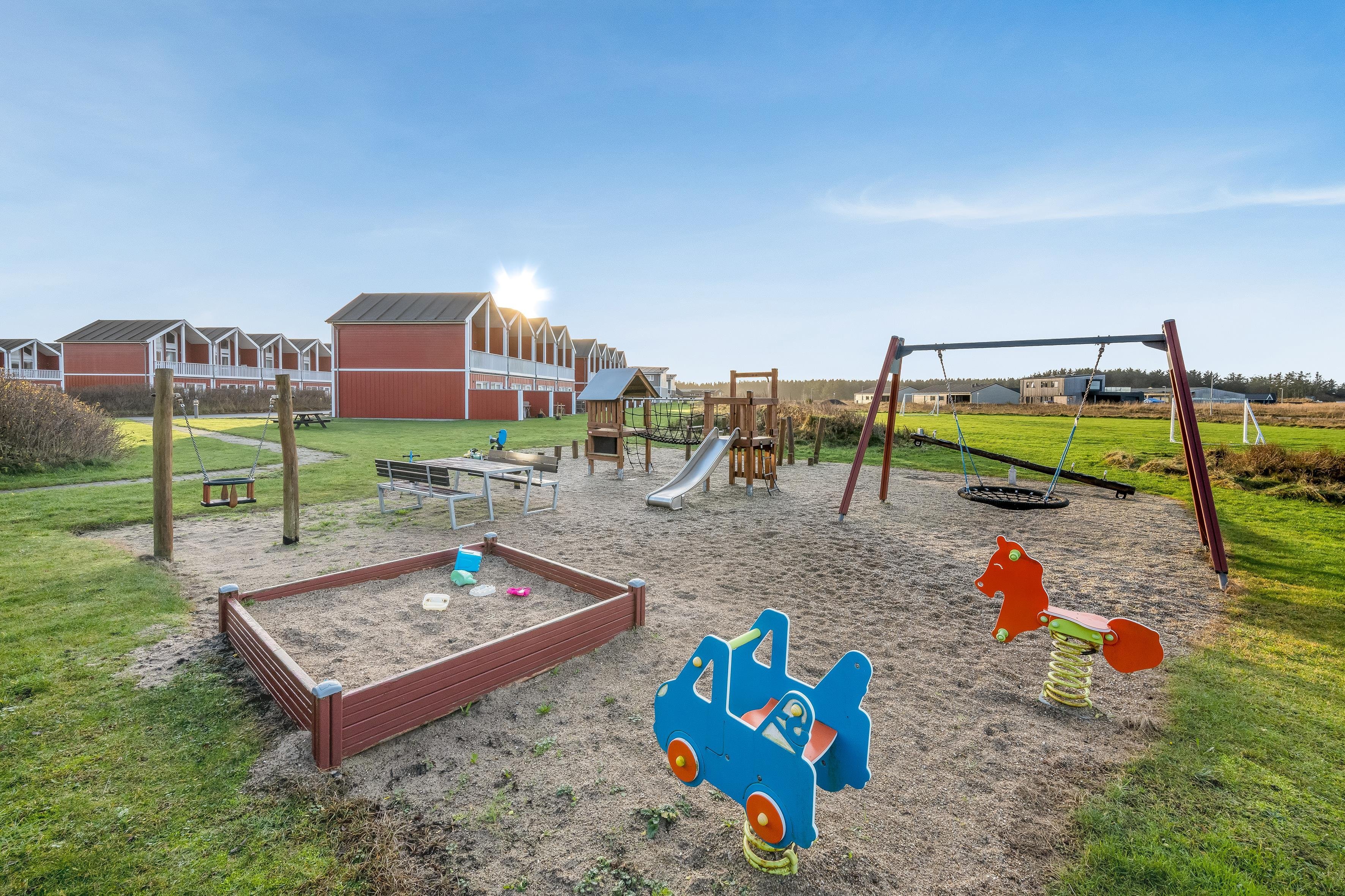 Haven og terrassen inviterer til både afslapning og aktivitet – uanset tidspunktet på dagen. Med flere terrasser, herunder en overdækket del, er det let at finde læ og sol. Der er god plads til leg og hygge, og fra huset er der kort afstand til både strand, by og indkøb – alt ligger inden for cirka en kilometer.