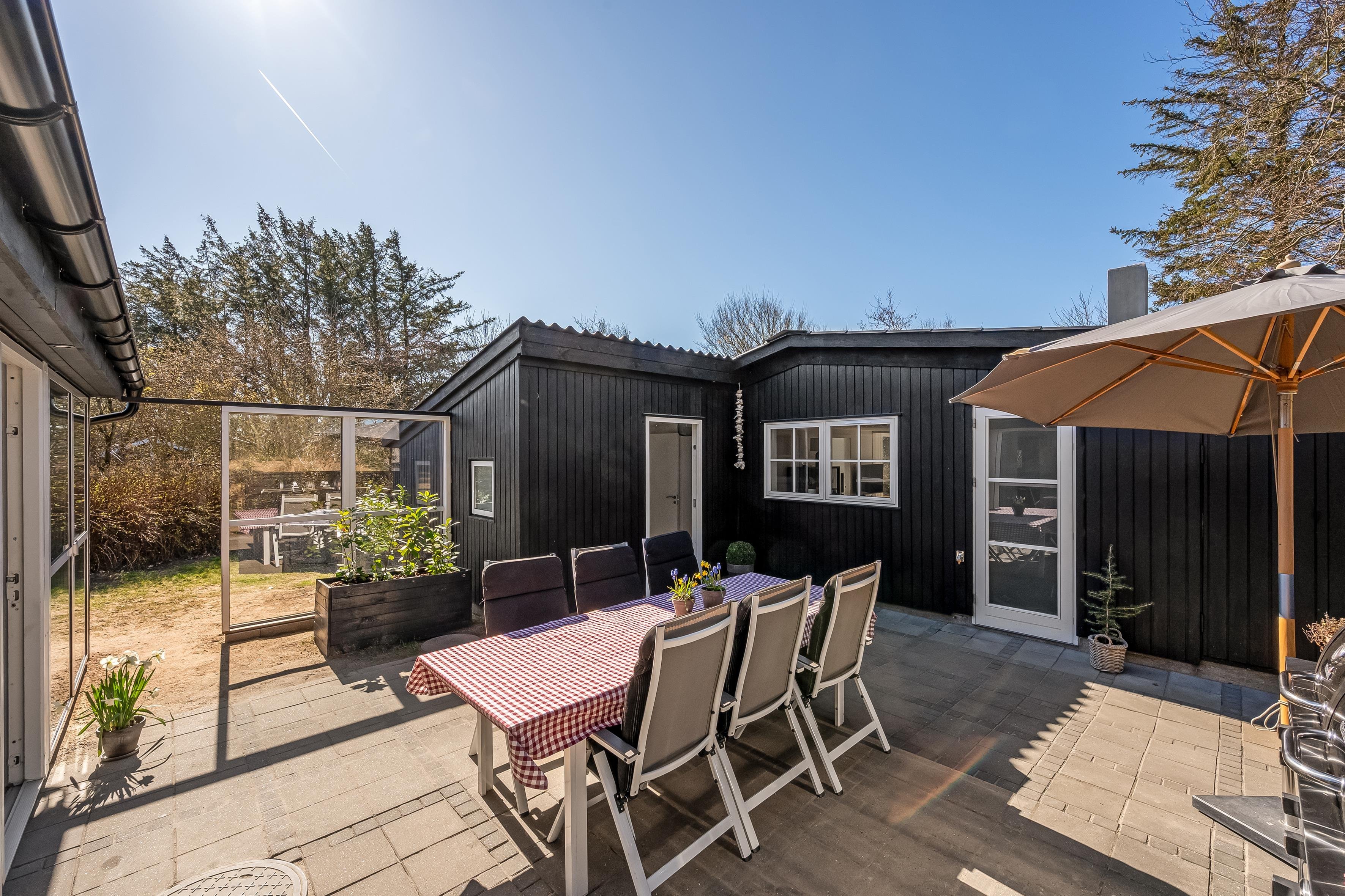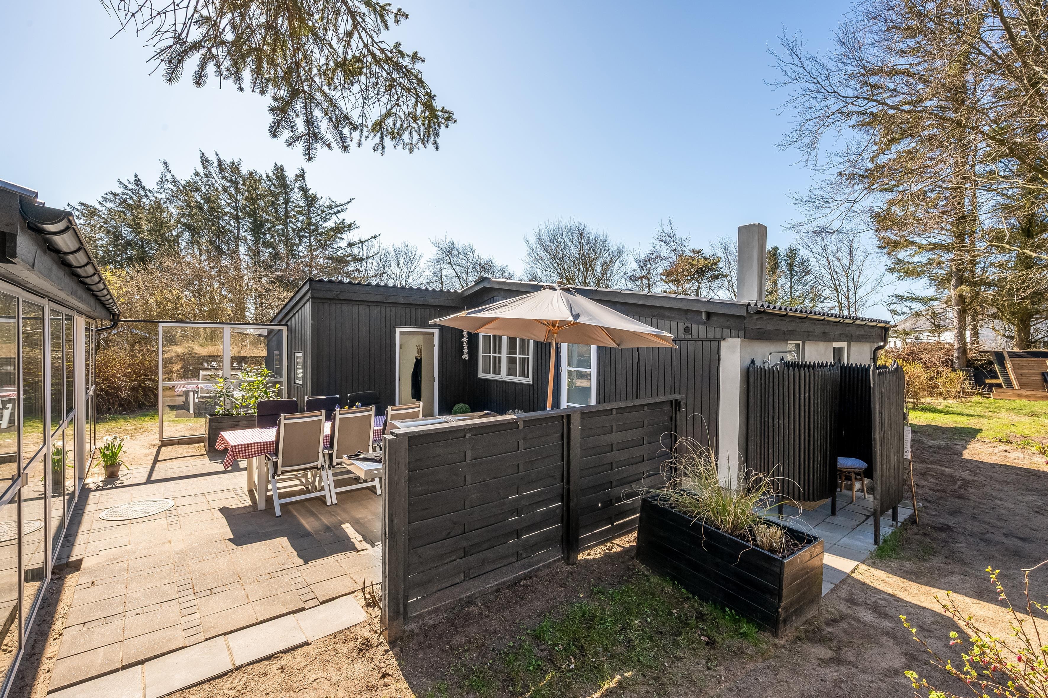 Når sommeren viser sig fra sin bedste side, er der masser af udendørsareal til solbadning, spil og leg. Sommerhuset ligger på en skøn grund, og der er terrasse i alle solbeskinnede vinkler, så det skulle være muligt at finde en skøn plads i sol eller læ. Du er under en kilometer fra stranden og Lønstrup by. Inden for en kort radius har du derfor indkøbs- og transportmuligheder samt restauranter, kunstbutikker mm. Er der ikke vejr til at være ude, kan du hoppe i den store jacuzzi i husets anneks, hvor I også kan sove to personer. I annekset er eget køkken og badeværelse.