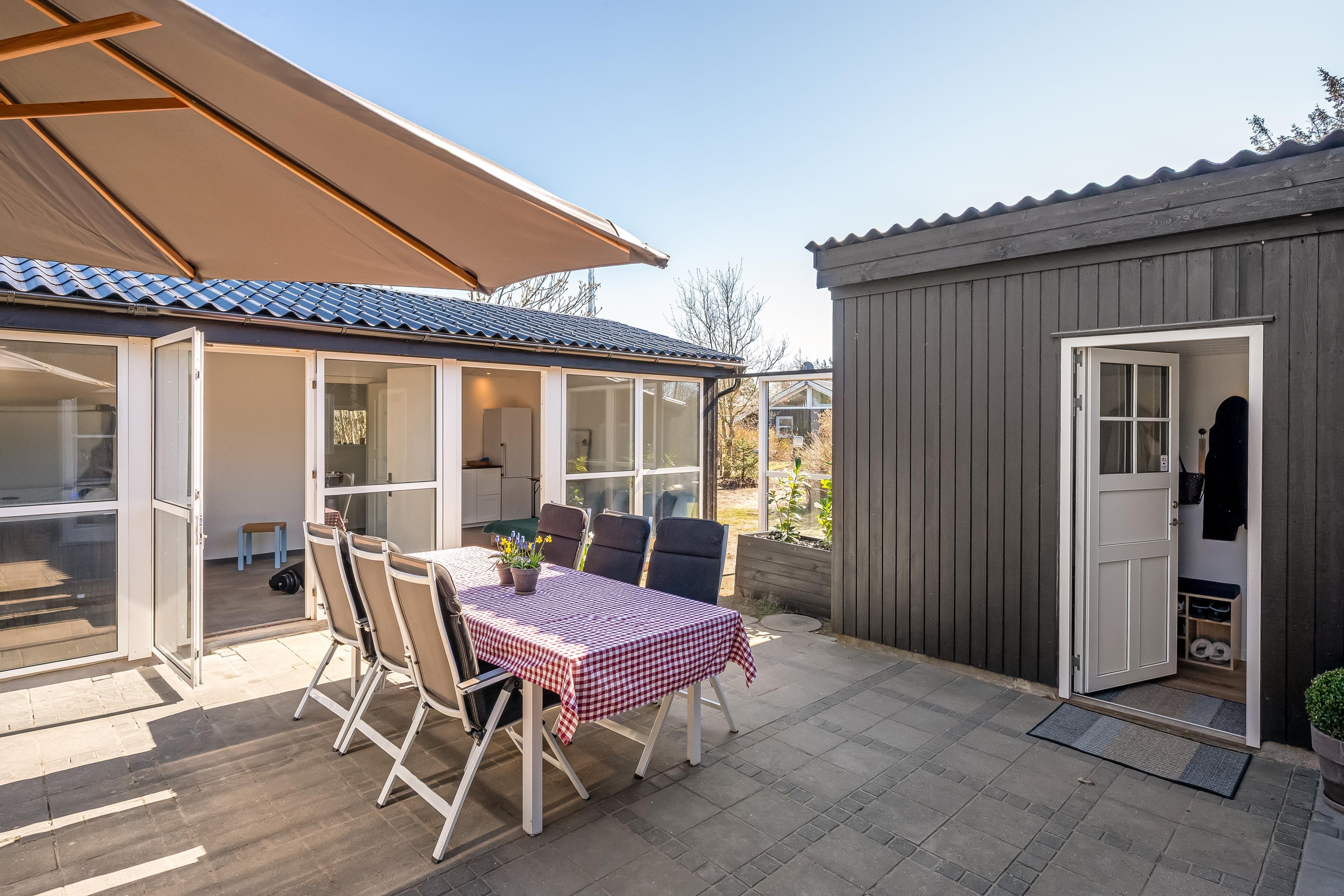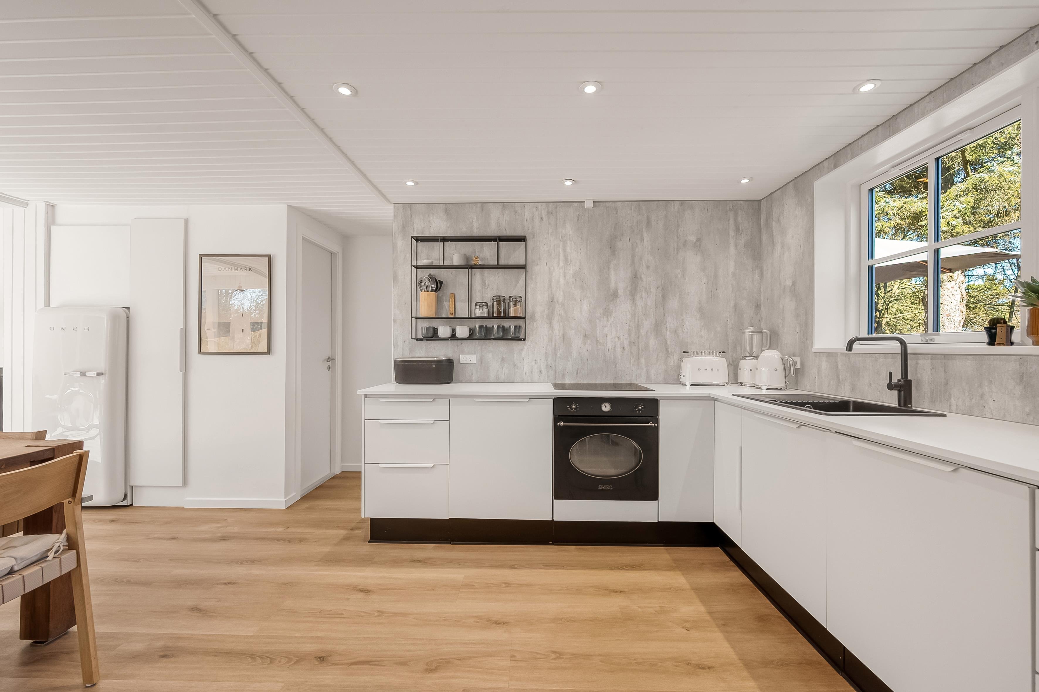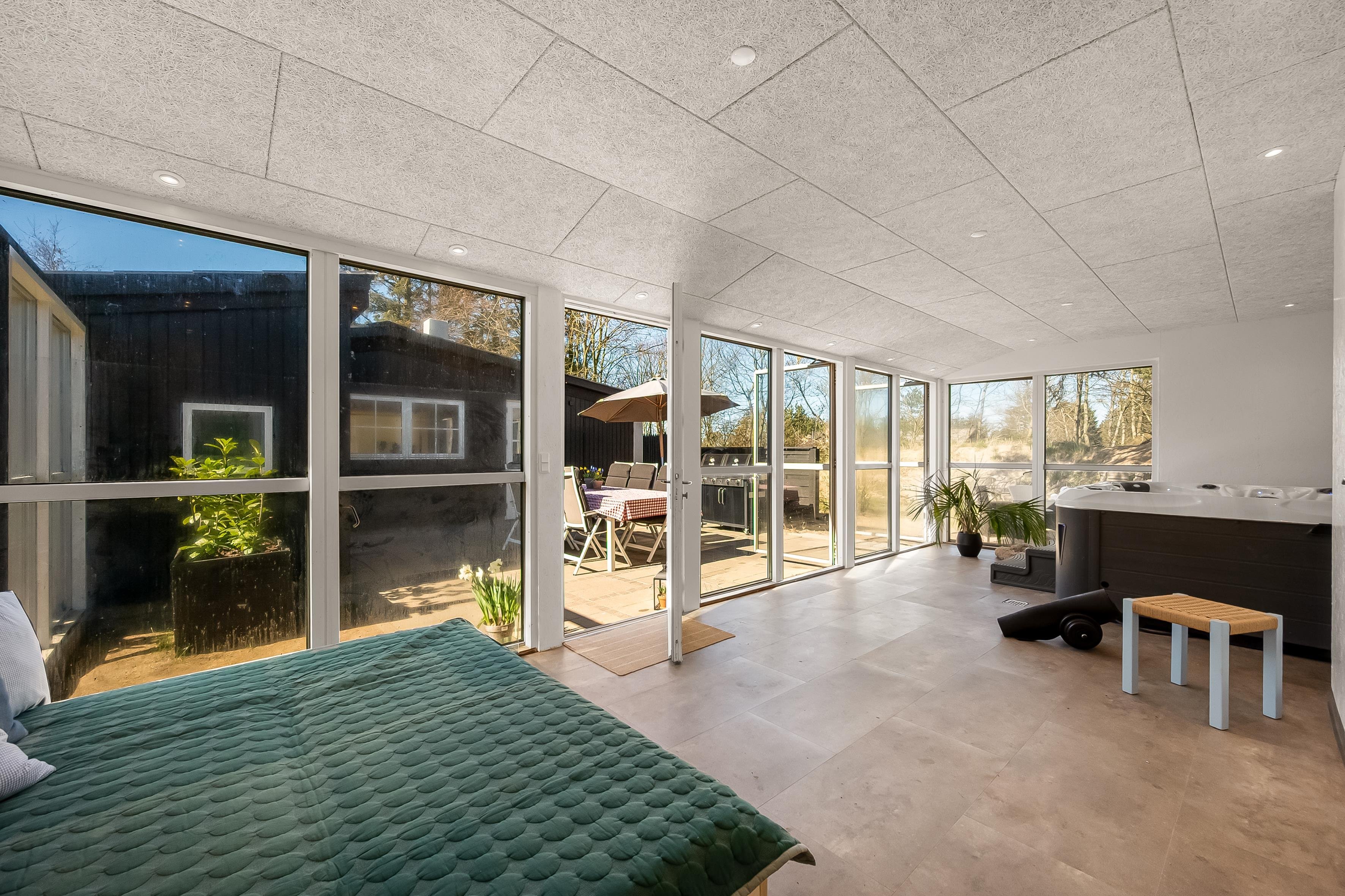 I denne perle af et nyt sommerhus kan I opholde jer 10 personer. Her er store, lyse rum og en stilfuld indretning med lyse træelementer, der giver en varm og indbydende atmosfære. Badeværelset inde i huset er med to brusere og badeværelset i annekset er med 1 bruser - begge rum er stilsikre og yderst lækre. Køkkenalrum og stue er super indbydende til mange timers hygge med et flot, åbent køkken og komfortable møbler. Der er store dørpartier ud mod en af husets dejlige terrasser. Fra annekset kan du også åbne de store dørpartier ud mod terrassen, og her kan du slænge dig i den store jacuzzi, før turen går ud på terrassen til grill og bålhygge.