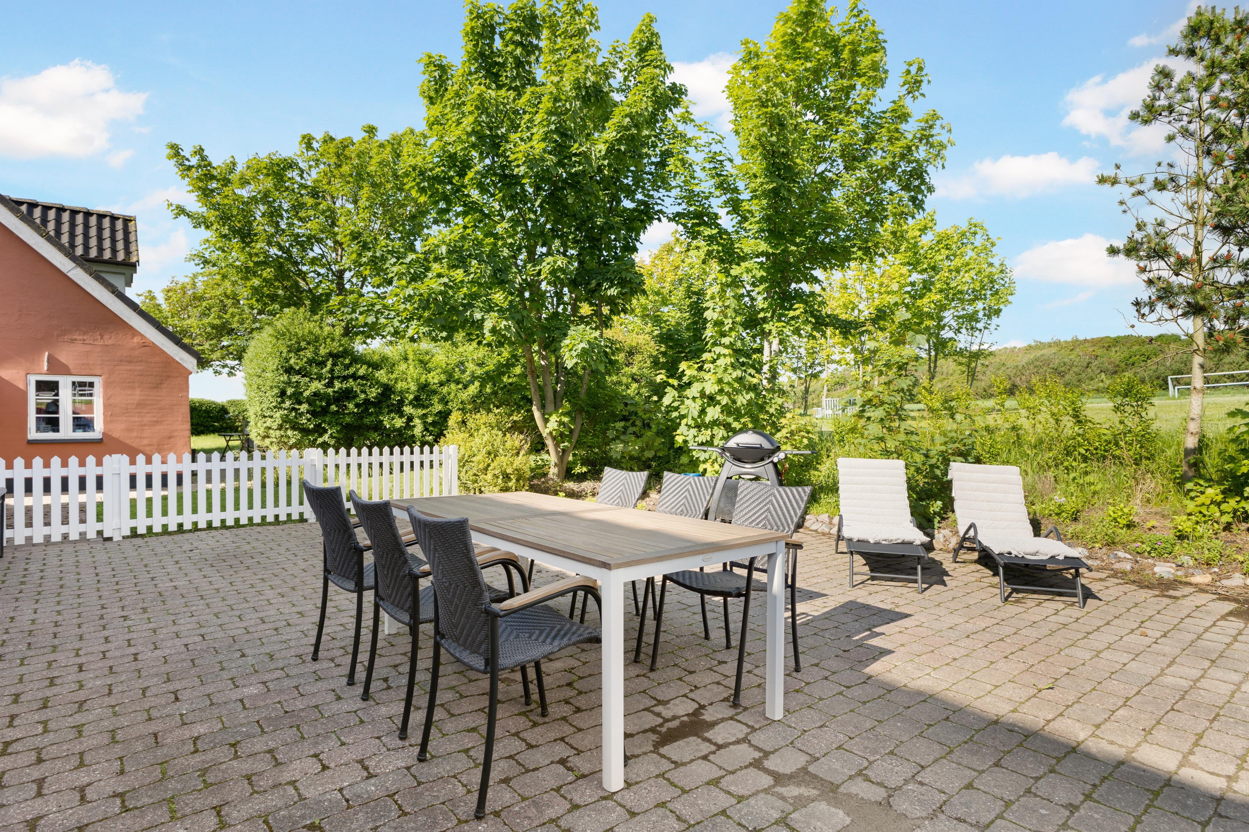 Balkonen udgør områdets mest solbeskinnede opholdssted. Herfra kan I nyde betagende solopgange og en udsigt over marker og Vennebjerg Kirke. Denne ferielejlighed er helt oplagt at leje, hvis I søger såvel fred og ro samt masser af aktiviteter tæt på strand og ferieby.