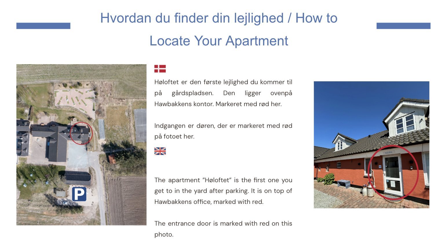 Ferieboligerne er alle røgfri og ungdomsgrupper/nattefester er ikke tilladt. Husdyr må ikke være i møblerne eller være alene hjemme, ingen vandskåle på trægulve. Ingen hunde på Høloftet.